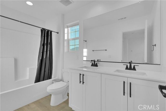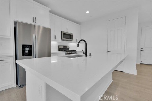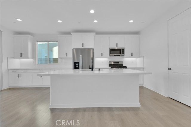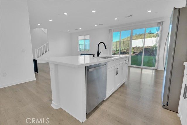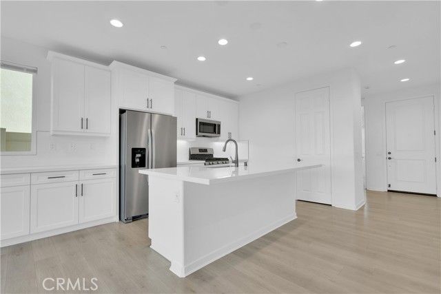 Welcome to this beautifully designed home in Corona, ideally situated at the end of a quiet cul-de-sac on a spacious lot, offering both privacy and modern comfort. This thoughtfully crafted two-story residence features 4 bedrooms and 3 bathrooms, including a convenient main-floor bedroom and full bath, perfect for guests or multi-generational living.The open-concept layout showcases a spacious great room that flows seamlessly into a beautifully appointed kitchen. The kitchen features white thermofoil cabinetry, quartz countertops in Miami Vena, a large center island, breakfast bar seating, and a charming dining nook with center-meet doors, creating the perfect space for entertaining and everyday living. Stainless appliances include a gas range, microwave, dishwasher, and garbage disposal, complemented by a tankless water heater for energy efficiency. Upstairs, you’ll find a generous primary suite with an attached spa-like bathroom and expansive walk-in closet, along with a versatile loft and a convenient upstairs laundry room with pre-plumbing for a sink. Additional upgrades include wood laminate flooring, double-pane windows, and extra windows for natural light. With its modern finishes, functional layout, and desirable cul-de-sac location, this home offers the perfect blend of style, comfort, and convenience.