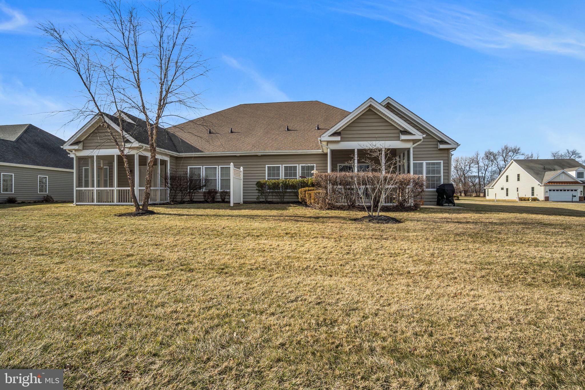 Well-maintained duplex home located in the desirable Traditions of America at Silver Spring active adult community, featuring extra open space surrounding the home for added privacy. This 2-bedroom, 2-bath residence also includes a versatile office/den and offers true first-floor living with many ADA modifications already in place. The open floor plan features tile and luxury vinyl plank flooring throughout the main living areas, with carpeted bedrooms for added comfort. The living room is highlighted by a gas fireplace and flows into the dining area and kitchen. The kitchen offers granite countertops, stainless steel appliances, and ample cabinetry. The primary suite includes a private bath and two walk-in closets. A convenient first-floor laundry room adds to the ease of everyday living. Enjoy outdoor living in the screened-in porch, ideal for relaxing and entertaining.. Additional features include a 2-car garage with large storage space and a thoughtfully designed, low-maintenance layout. Residents enjoy access to a clubhouse with extensive amenities, including indoor and outdoor pools, pickleball and tennis courts, bocce, putting green, walking trails, media room, library, billiard room, bar, and a spacious great room for community events and gatherings.