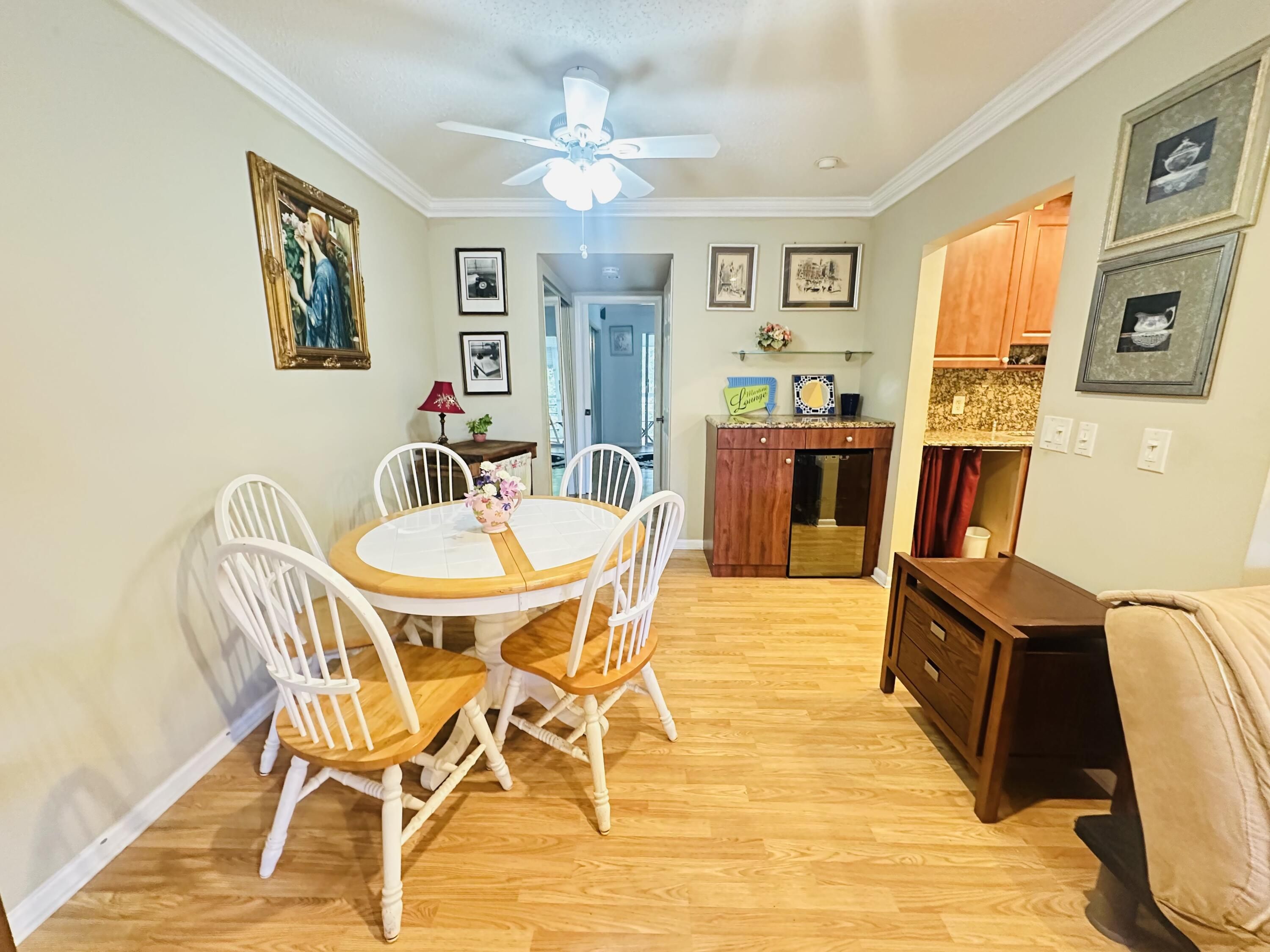 IMMACULATE renovated 1BR/1.5BA 2nd flr condo w/lift access, perfectly situated in a vibrant 55+ community. Beautifully updated kit w/white appl, granite cntrs, dbl sink, recessed ltg, ext cabs for added strg w/a built in wine cooler. Bright, open liv space w/crown molding, Pergo flrs, recessed lts in liv rm & 2 window wall A/C's for great cooling. Bathrms have been nicely updated incl a walk-in shower in primary. Relax on the screened patio w/roll down shutters and a serene garden view. Just steps to pool & tennis & close to West Gate! Enjoy an active, carefree lifestyle in a quiet, well-maintained setting! Century Village offers resort-style living w/a grand clubhouse, shows, classes, clubs, pools, tennis, pickleball, gym, clubs, classes, a courtesy shuttle & MORE! Assoc. Claims 55+