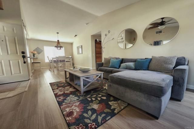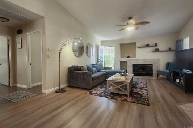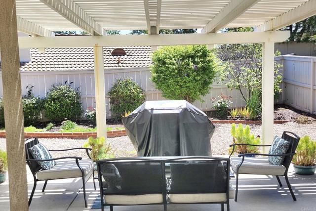 A rare, fully updated residence offering privacy in The Colony—designed for easy, immediate living. This move-in ready home stands out as one of the most thoughtfully upgraded opportunities in the community, where everything is already done so you can simply unpack and begin your next chapter. Step inside to a bright, open layout where high ceilings and updated wood-look flooring create a clean, modern feel. The living and dining areas flow naturally together, anchored by a cozy fireplace and finished in soft, neutral tones. The kitchen has been refreshed with white cabinetry, granite countertops, a modern sink and fixtures, and newer appliances—including a new dishwasher—offering a space that feels both current and functional for everyday living or casual gatherings. The primary suite provides a comfortable retreat with vaulted ceilings, generous closet space, and natural light from south- and west-facing windows overlooking the garden. The en-suite bath features a custom stone tile walk-in shower. The second bedroom is bright and versatile, with built-in storage and direct access to the backyard through a sliding glass door—ideal for guests, workspace, or flexible use. Outside, the fully fenced backyard is a standout, with mature landscaping creating a quiet, private setting rarely found at this price point. Multiple access points enhance both convenience and flow. Extensive updates include designer paint, recessed lighting, updated fixtures, newer washer and dryer, a recent roof tune-up with four-year roof certification, and an HVAC system upgraded within the last five years. Located within The Colony at California Oaks, a 55+ community with controlled access for residents and guests, residents enjoy a full range of amenities including social clubs, fitness programs, pool and spa facilities, sport courts, a community theater, and planned activities coordinated by a full-time director. An executive-length golf course winds throughout the community, adding to the well-maintained and welcoming environment.