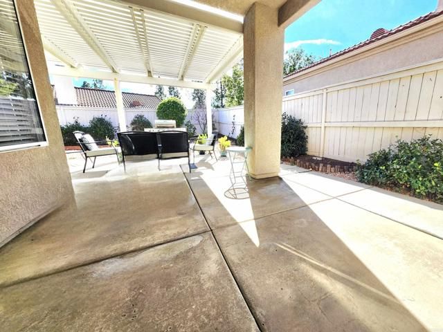 Step inside and feel the calm set in. Natural light, gentle afternoon breezes, and an open layout create a welcoming home designed for relaxed, everyday living. High ceilings, updated wood-look vinyl flooring, and a cozy fireplace give the living and dining spaces an airy yet comfortable feel, complemented by neutral finishes throughout. The kitchen blends style and function with white cabinetry, granite countertops, modern counters and sink, and newer fixtures and appliances, including a new dishwasher—ideal for casual mornings or simple gatherings. The layout flows naturally, offering both connection and comfort. The primary suite is a peaceful place to unwind, featuring vaulted ceilings, generous closet space, south- and west-facing windows overlooking the garden, and an updated en-suite bath with a custom stone tile walk-in shower. The second bedroom is well-sized and filled with natural light, featuring modern glass doors, built-in closet storage, and west-facing windows along with a sliding glass door providing direct access to the fully fenced backyard. Mature bushes and trees create a private, serene garden setting, ideal for entertaining or quiet relaxation. Additional backyard access is available through exterior doors from the living room, garage, and side gate. Recent property updates include designer paint throughout, recessed lighting, updated fixtures, newer washer and dryer, a recent roof tune-up with a four-year roof certification included, and an HVAC system and condenser unit upgraded within the last five years, offering added peace of mind. Located on a quiet cul-de-sac within The Colony at California Oaks, an established 55+ community with controlled entry for residents and guests, homeowners enjoy a sense of privacy and a thoughtfully designed lifestyle centered around the community clubhouse. Amenities include social clubs, a fitness center, pool and spas, sport courts and programs, salon, billiards room, library, card rooms, community theater, planned day trips, and a full-time activities director. An executive-length golf course weaves throughout the community, offering scenic views of greenbelts, fairways, and duck ponds, while HOA-maintained common areas support an easy, low-maintenance lifestyle. This move-in ready home offers a comfortable, connected way of living, with the flexibility to be as active—or as relaxed—as you choose.