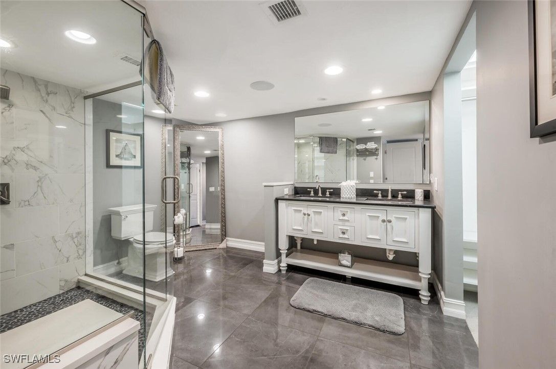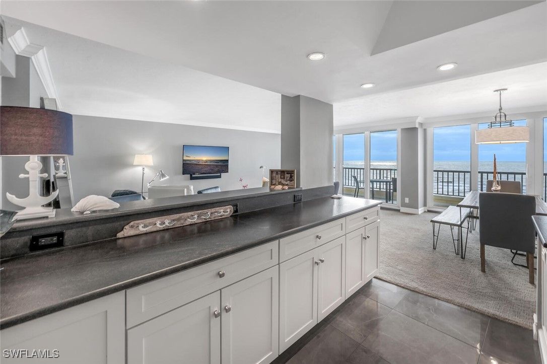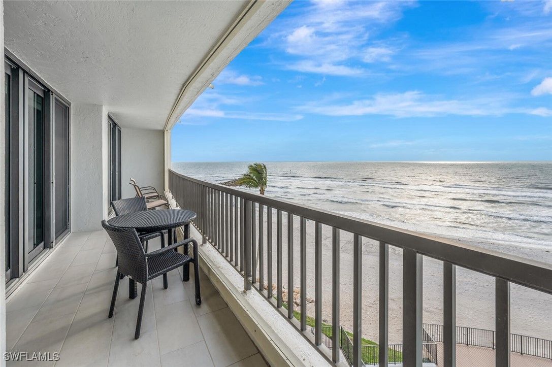 LOCATION! LOCATION!! LOCATION!! Best hidden gem in the Moorings!!! Absolutely beautiful condo offers 3 spacious (en-suite) bedrooms and 3.5 baths. Property was updated in 2015 and it is front and center on the Gulf right "on the beach". The unobstructed views from this 5th floor condo are unrivaled and most definitely inspiring. Every night you will enjoy a mind-blowing sunset and a different light show. You may never leave your massive balcony. Additionally, the 3 zone Sonos System as well as the AC unit can be controlled from you phone. Kitchen has beautiful granite counter tops, marble backsplash and gorgeous porcelain floors that extend into entry and other areas of the Condo. This Condo has an open functional floor plan, electrically controlled shades in the living room and dining room as well as all new closet systems in Master and front Guest room. Complex has 2 pools (for beautiful Sunrises and Sunsets), 2 club houses, Har-Tru tennis courts, State of the Art, fitness center, Bocce Ball Court, Kayak Launch, Boating and much more. Entry is semi private as you share the elevator landing with only one other owner. One parking space under ground and ample parking above garage. Admiralty Point has been completely renovated with grounds that are breathtaking and an Amazing renovated Pool, Grill and Lobby right below the condo!