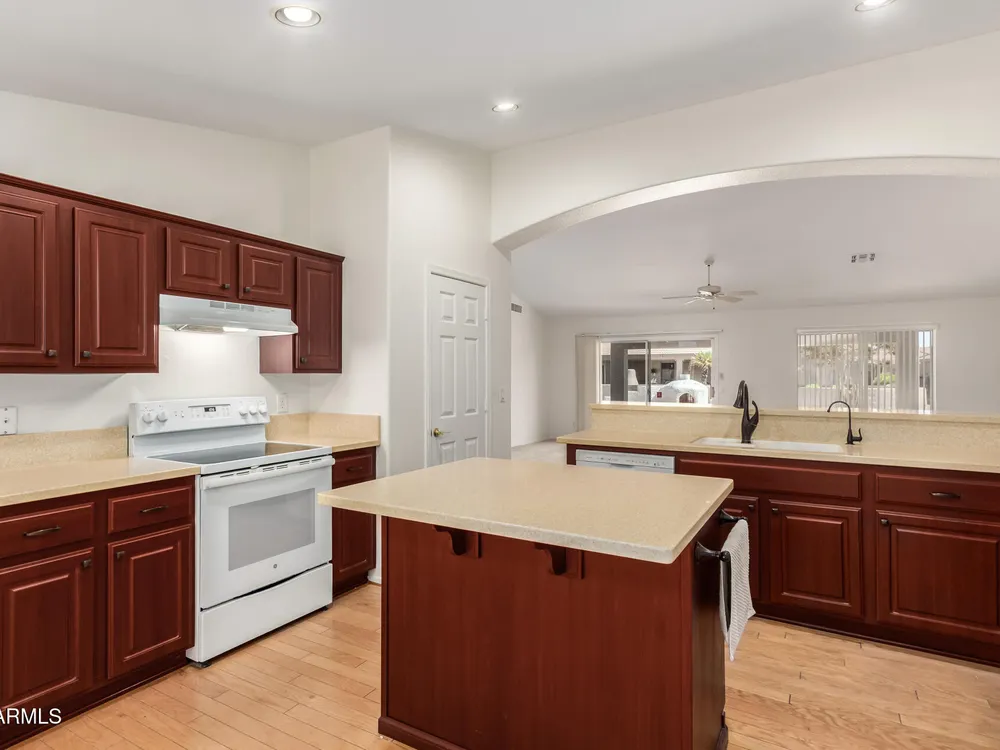 Located in the gated community of Oakwood in Sun Lakes, this spacious 1916 sqft Palmera Floor Plan features Vaulted ceilings, NEW 2023 ROOF & NEW 2022 HVAC. The eat-in kitchen includes plenty of cabinets & counter space, along with a work island & pantry w/ extra storage. The kitchen overlooks the cozy Great Room w/ Patio access. The Primary Suite includes Vaulted Ceilings, a Spacious Walk-in Closet & private Ensuite Bath. The Secondary bedroom is on the opposite side with the Guest Bath. A Private den overlooks the front yard. There is plenty of extra storage in the Laundry Room & 2-Car Garage w/ Built-in Cabinets. Come see what this Beautiful 55+ community has to offer - Golf, Tennis, Pickleball, Swimming & so much more!