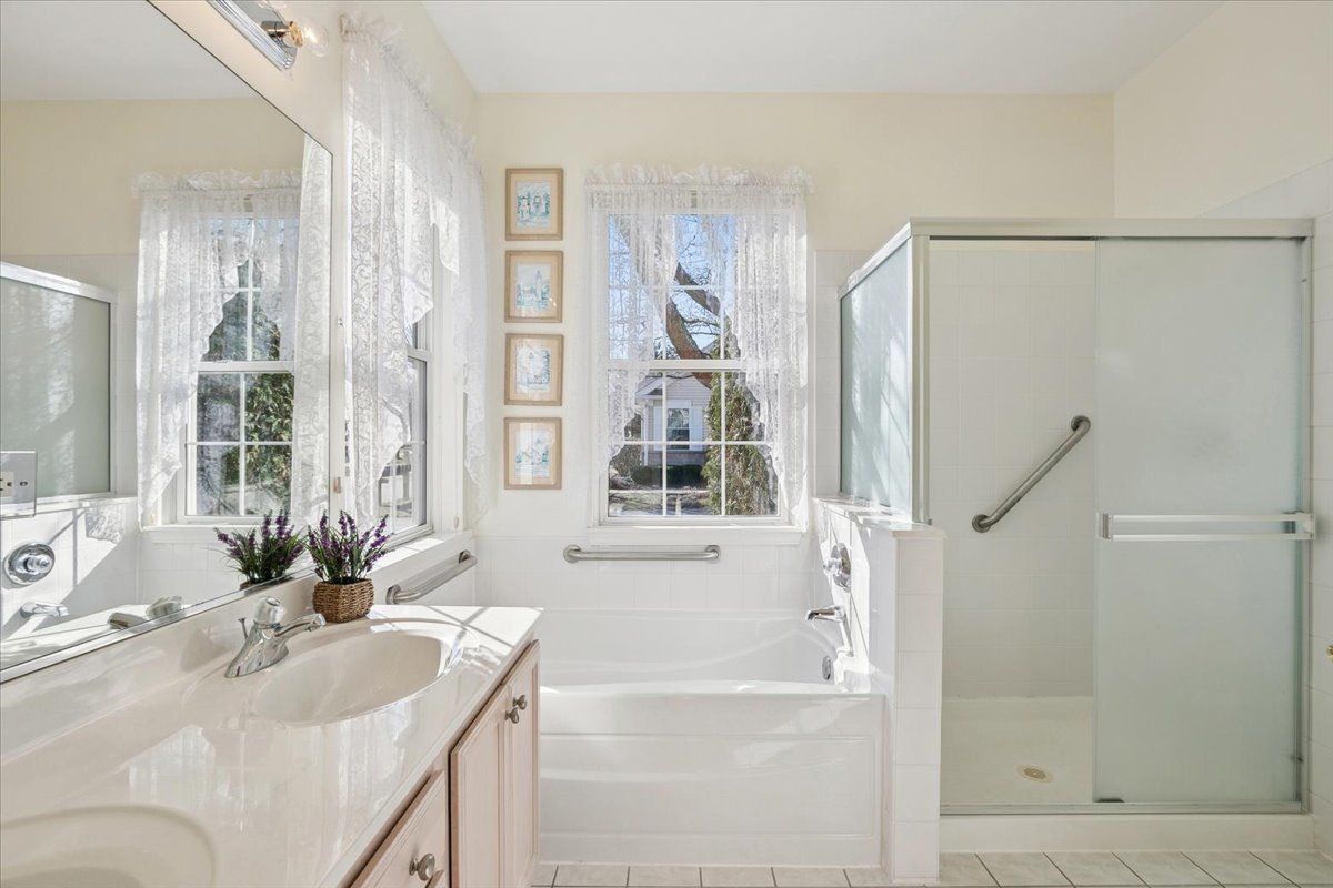 - Bedroom on Main Level, Full Bathroom, Walk-In Closet(s), Open Floorplan, Study, Dining Area, Separate Shower, Dual Sinks, Soaking Tub, Living/Dining Room, Carbon Monoxide Detector, Ceiling Fan(s), Radon System