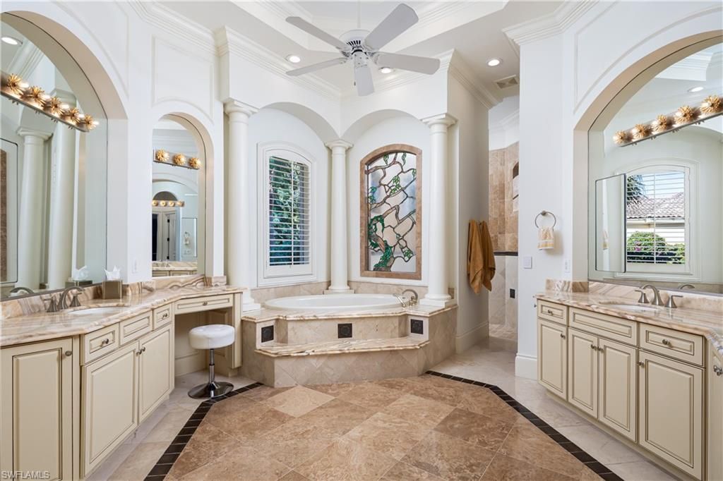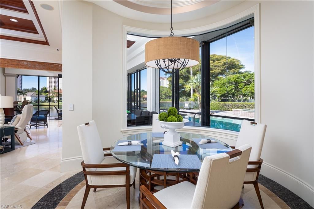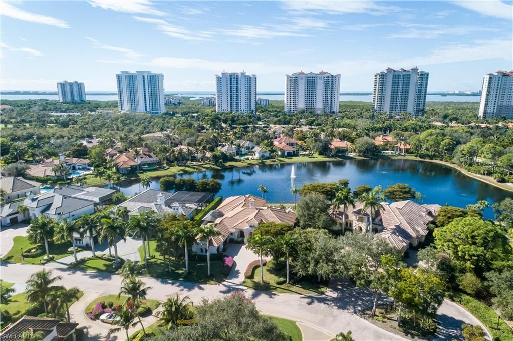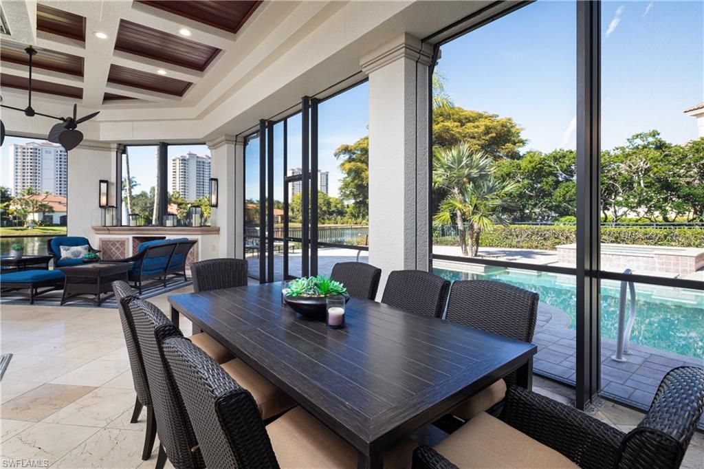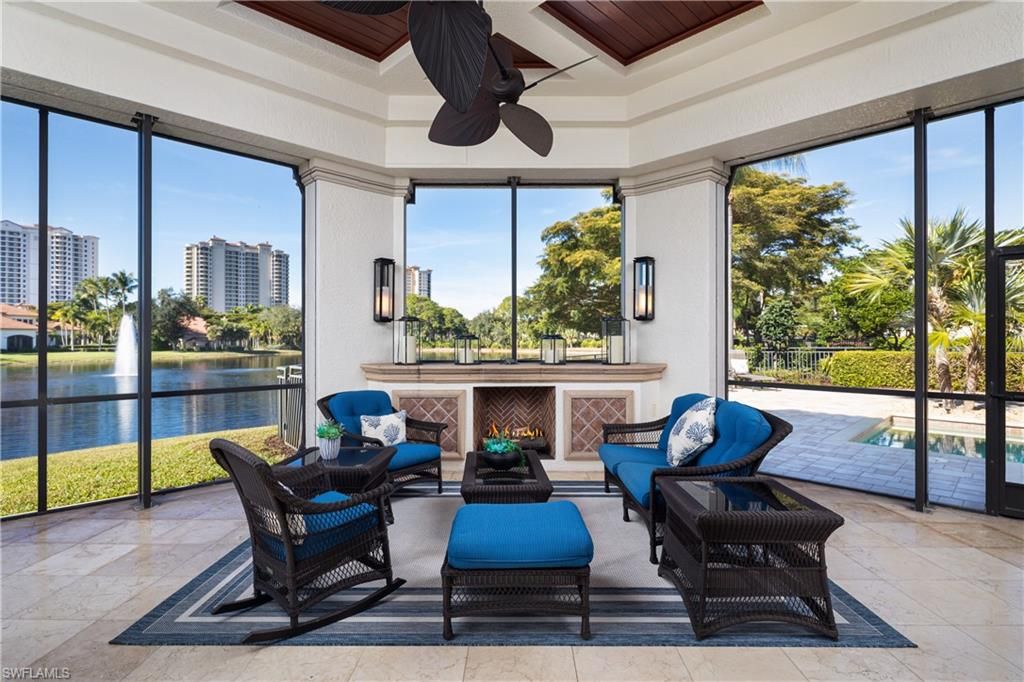 Welcome to 23821 Tuscany Court—a true estate residence tucked inside the prestigious community of The Colony Golf and Country Club in Pelican Landing, where architecture, craftsmanship, and lifestyle converge at the highest level. This custom built Estate home by McGarvey Custom Builders is a 4911-square-foot masterpiece, the definition of quiet luxury—designed for those who appreciate scale, elegance, and thoughtful detail at every turn. From the moment you arrive, the home commands attention with its stately presence, serene water features, and timeless architectural lines. Inside, soaring ceilings with intricate detailing draw your eye upward, while a double-sided fireplace anchors the living spaces with warmth and drama. Every room flows effortlessly, yet each feels intentional—crafted for both grand entertaining and refined everyday living. The chef’s gas kitchen, outfitted with cabinet-front appliances and custom finishes, opens seamlessly to the heart of the home, making it equally suited for entertaining, whether it be intimate dinners or unforgettable family gatherings. This residence offers 4 spacious bedrooms, 4.5 baths, a private den with custom built-ins, a formal dining room that opens to a courtyard garden, and a wet bar, all wrapped in rich millwork, marble flooring, and designer finishes throughout. Triple sliders take you from the indoor to the outdoor living and fill the home with natural light and tranquility. Step outside and experience a private resort of your own: a grand pool and spa, expansive paved lanai, outdoor kitchen with a seated bar, and living room space with a gas fireplace, built-in grill, and a separate cabana—all set against a backdrop of lush landscaping and peaceful water views. Whether hosting under the stars or enjoying a quiet morning by the pool, this space was built to impress and entertain all your family and friends.Located within Tuscany Isle, one of The Colony’s most exclusive enclaves, this estate delivers access to world-class amenities, a private 34-acre beach park with private boat shuttle transportation to and from the island, waterfront dining at The Bay Club, private kayak park, pickleball, bocce ball, tennis, championship 18-hole golf, and an unmatched Southwest Florida lifestyle.A legacy property. One of the rare opportunities to own one of The Colony’s finest estates. Don’t miss this opportunity to live in paradise. The best location, with dining and shopping at Coconut Point Mall just across the street, minutes to Naples, Waterside shops, and minutes to Southwest Regional International Airport!