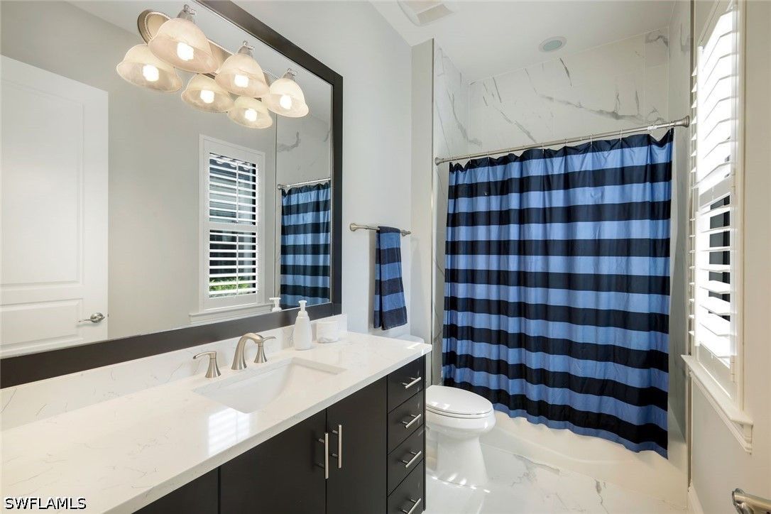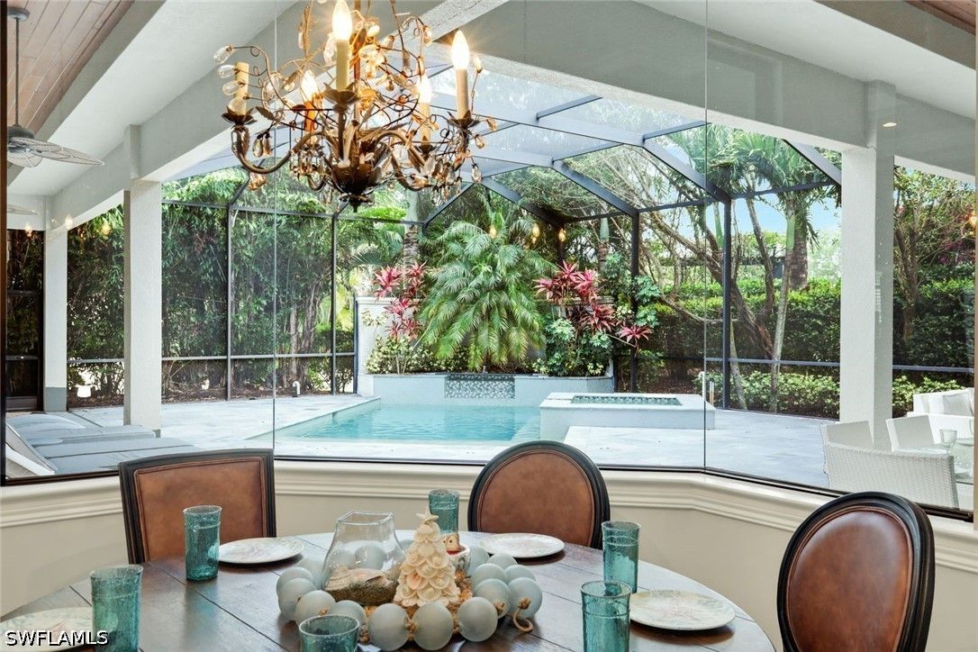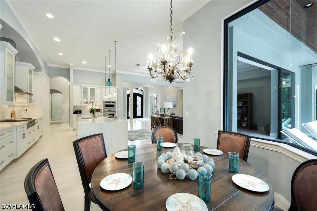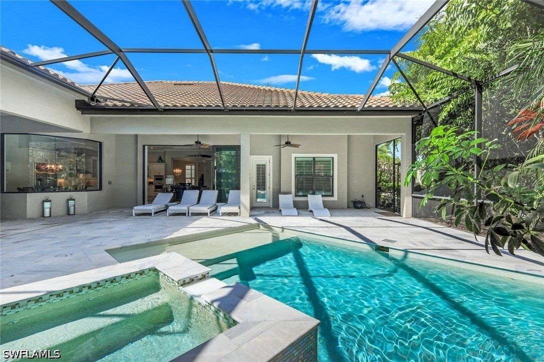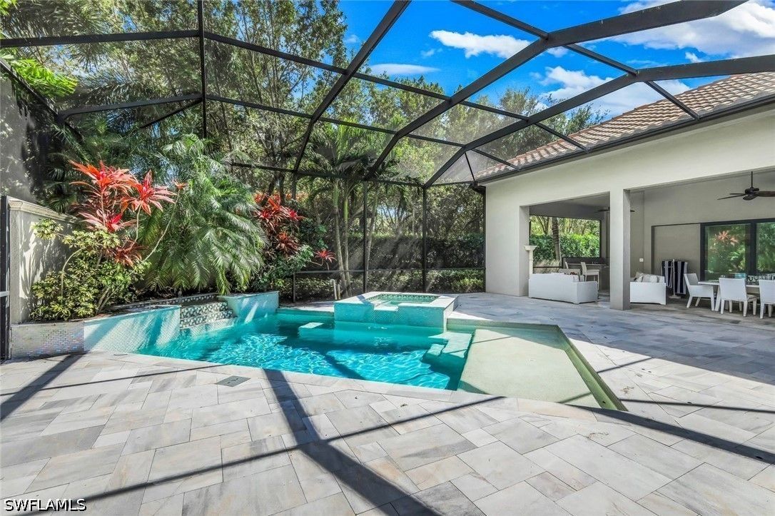 This impressively updated residence pairs modern, light-filled interiors with the kind of privacy and indoor-outdoor living that defines Southwest Florida at its best, set within the boutique enclave of Ponza at The Colony at Pelican Landing. A great room floor plan anchors the home, where updated tile flooring flows seamlessly through the main living areas and a soft, contemporary palette enhances the sense of openness. The fully remodeled kitchen is both striking and functional, with expansive counter space, custom cabinetry, and an oversized island that invites gathering. It connects effortlessly to both a formal dining area for elevated entertaining and a sunlit breakfast nook for everyday living. Each of the three bedrooms has its own bath, offering guests comfort and privacy, while a dedicated den provides flexibility for a home office or additional lounge space. The primary suite is complemented by an updated bath with refined finishes that echo the home’s cohesive, modern design. Beyond the interiors, the home truly comes to life. A sprawling screened lanai unfolds as a private outdoor sanctuary—complete with a pool and spa, multiple covered lounging areas, and sun-drenched spaces for those who prefer to bask in the Florida sunshine. Thoughtfully designed for year-round enjoyment, the lanai also features a fireplace, creating an inviting setting for evenings outdoors and ample space for al fresco dining under the stars. Additional highlights include impact-resistant windows and doors and a spacious 3-car garage, adding both convenience and peace of mind. Residents of The Colony enjoy exceptional amenities, including a private, resident-only beach island on the Gulf of Mexico, waterfront dining at the Bay Club, a full-service fitness center, tennis, and a vibrant social calendar—all within a gated, beautifully maintained community. Refined yet relaxed, private yet connected—this is a home designed to live effortlessly, both inside and out. You'll love living here!