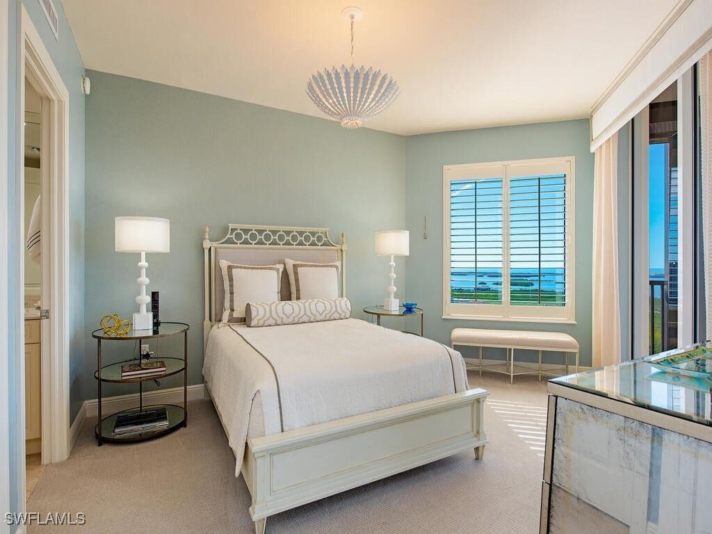 Perched on the 20th floor, this rarely available “05” sky home offers breathtaking, unobstructed western sunset views from a gigantic 300+ sq. ft. screened lanai. With nearly 2,300 sq. ft. of interior living space, this fully furnished residence delivers sweeping vistas of the golf course, Estero Bay, and the Gulf of Mexico. Guests are welcomed through Florencia’s elegant, upscale lobby and transported via elevator to your exclusive private foyer, creating a grand and private arrival experience. The front door opens to a spacious great room encompassing the living, dining, and kitchen areas, all framed by floor-to-ceiling hurricane-impact glass sliders that lead seamlessly to the expansive lanai—perfect for indoor-outdoor living and sunset entertaining. The chef’s kitchen is thoughtfully positioned for both functionality and social gatherings. The primary suite and oversized guest bedroom are west-facing with oversized sliders and picture windows and separated by the great room, ensuring privacy while both enjoy spectacular water and golf course views. Listed as a 2-bedroom plus den, the den/office easily accommodates overnight guests with its own closet and convenient access to a full bath. Residents of Florencia enjoy an impressive collection of amenities including a grand lobby, fitness center, theater, social room, guest suites, and more. Ownership also includes access to The Colony and Pelican Landing lifestyle, featuring the exclusive Bay Club with two levels of waterfront dining, a 34-acre private island beach accessed by water taxi, tennis and pickleball, kayaking, vibrant social programs, and optional golf membership at The Colony Golf Club. All of this is set within a secure, gated community just minutes from the finest dining, shopping, and Gulf beaches of Bonita Springs and Naples.