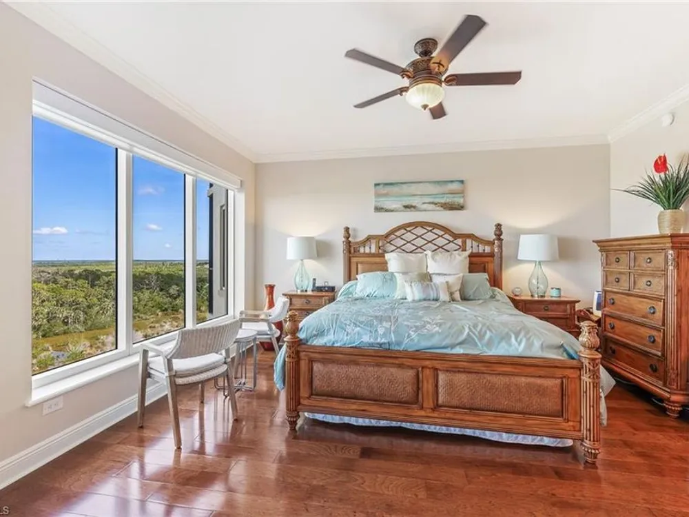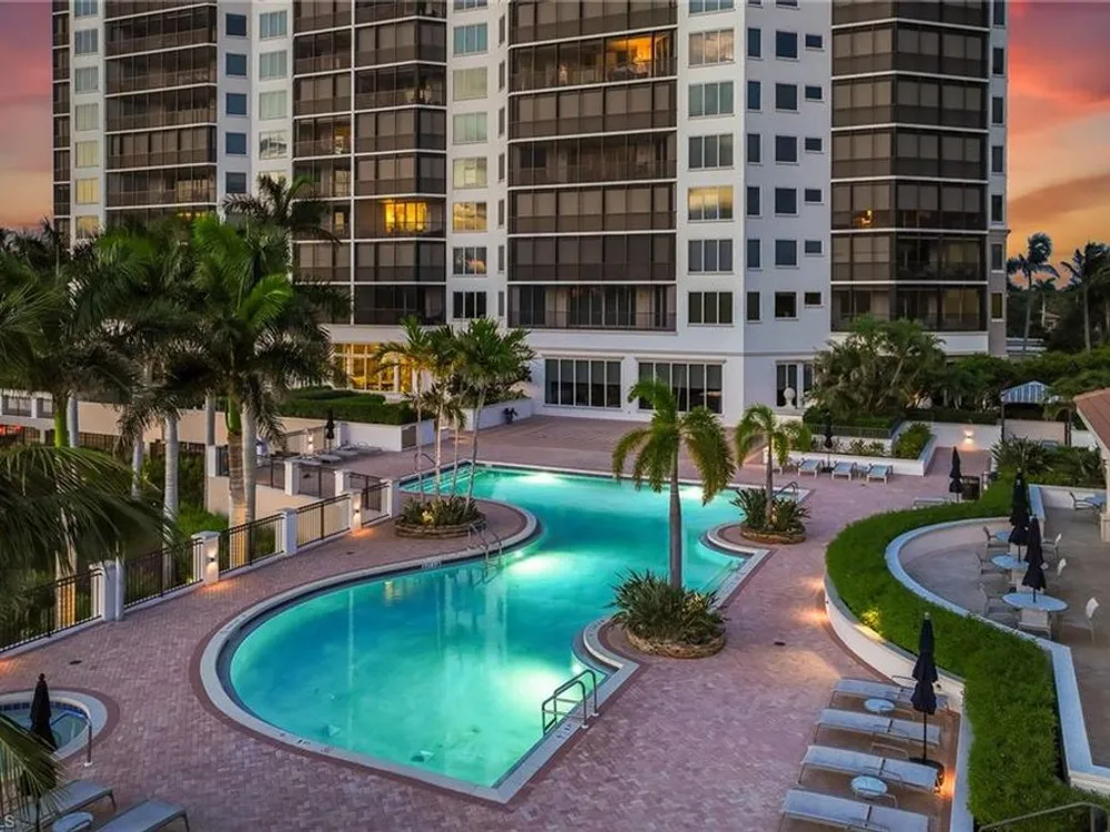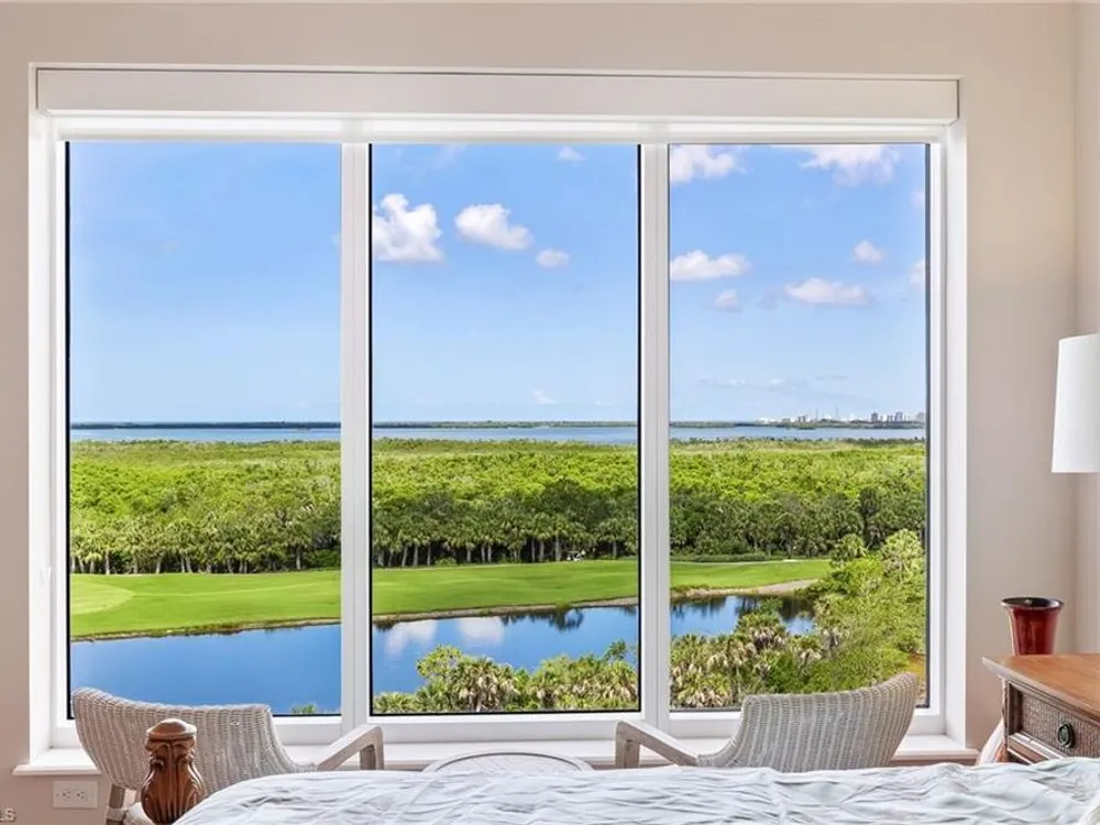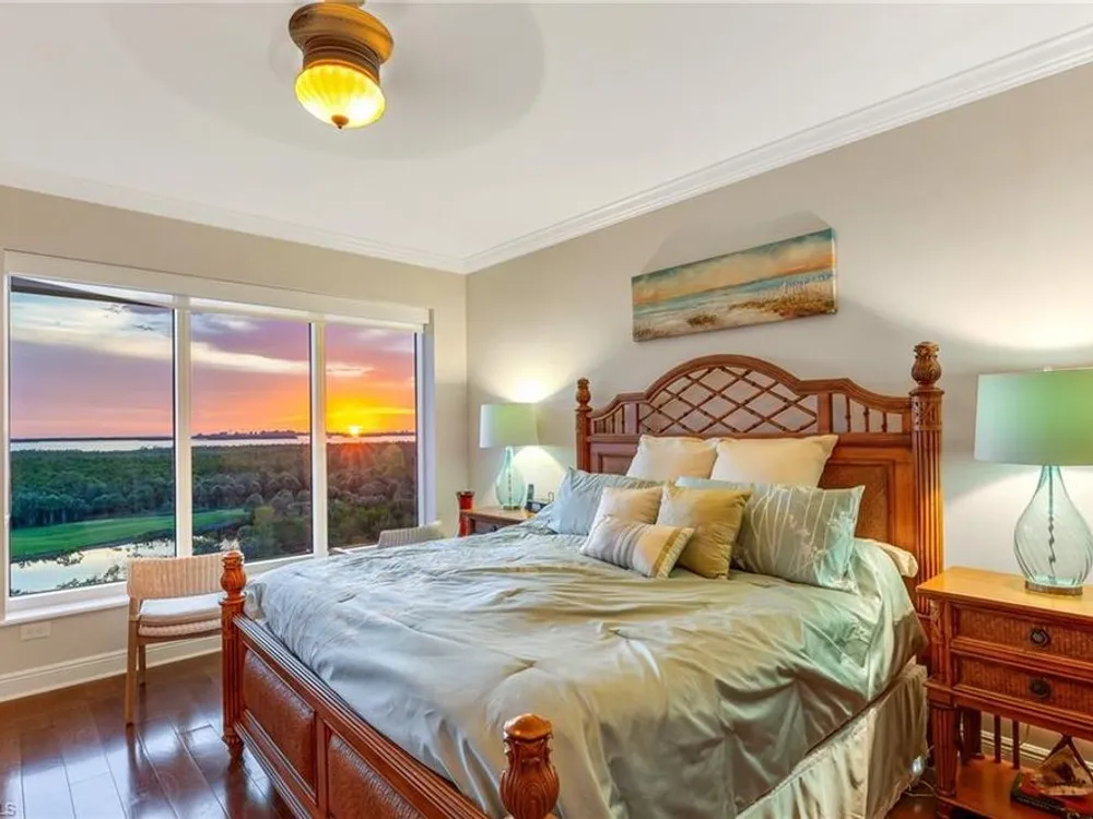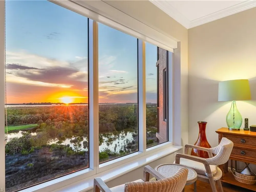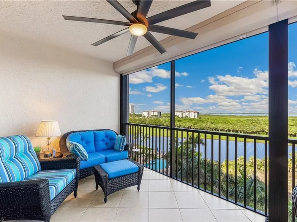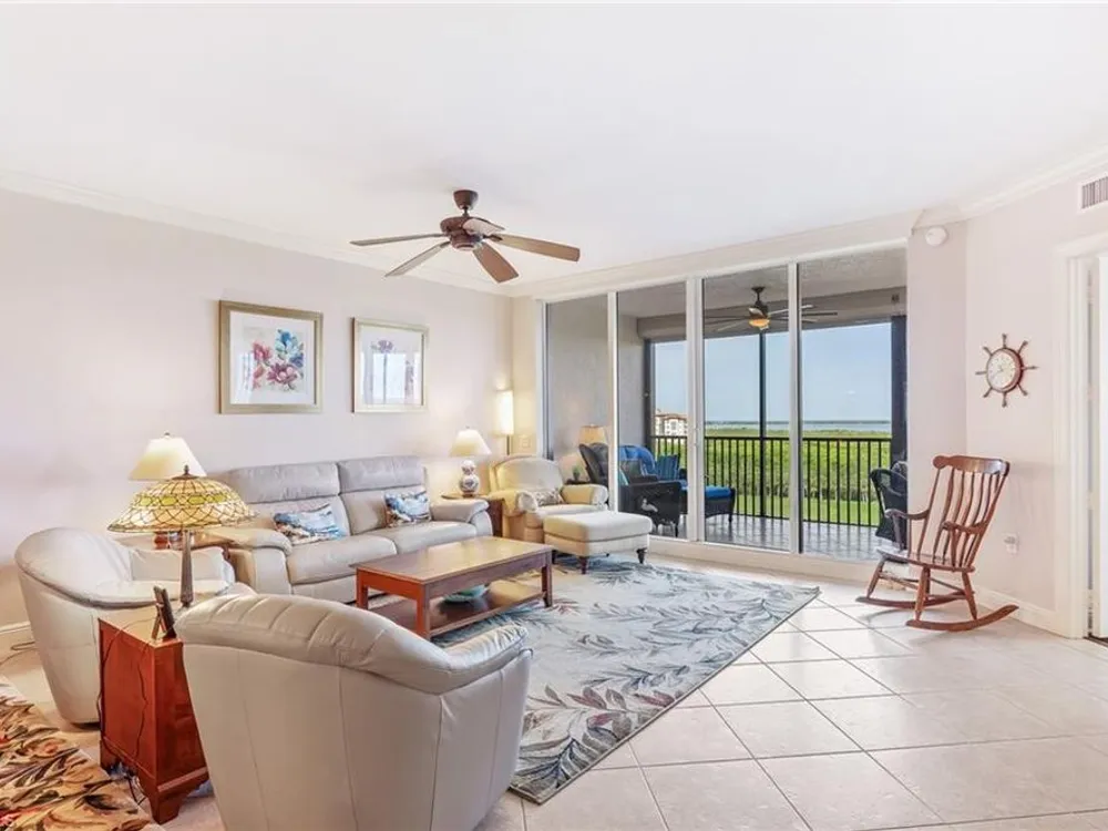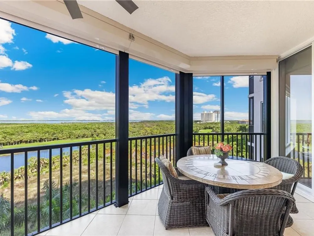 WELCOME TO ONE OF THE BEST 6TH FLOOR VIEWS OF THE ESTERO BAY..... This bright and sunny sky home offers endless panoramic Gulf & Bay views + breath-taking eastern sunrises AND western sunsets off the multiple balconies with bonus electric storm shutters. The open floor plan with desirable neutral color palette has been meticulously maintained and is awaiting its new owners to put their own signature stamp on it. The primary suite featuring a large picture window and guest suites all have access to either a screened or open terrace for unwinding and enjoying your favorite beverage. With 3 bedrooms and 3 full baths, this is a perfect home for full-time residents or those wanting to come down for the winter season. Florencia has a recently remodeled, absolutely stunning, grand main lobby; 2 guest suites to accommodate overflow; social room; theater; fitness center; resort-style pool; 2 designated parking spaces in secured garage; on-site management and a privacy officer available to greet you and your guests upon arrival. Colony residents automatically enjoy amenities including The Bay Club with both casual and elegant private dining, a 34-acre private island beach, 12 tennis courts, pickleball, bocce, sailing and kayaking. If an elite lifestyle in an amenity rich community is for you.....we invite you to view this exclusive property in the sky.