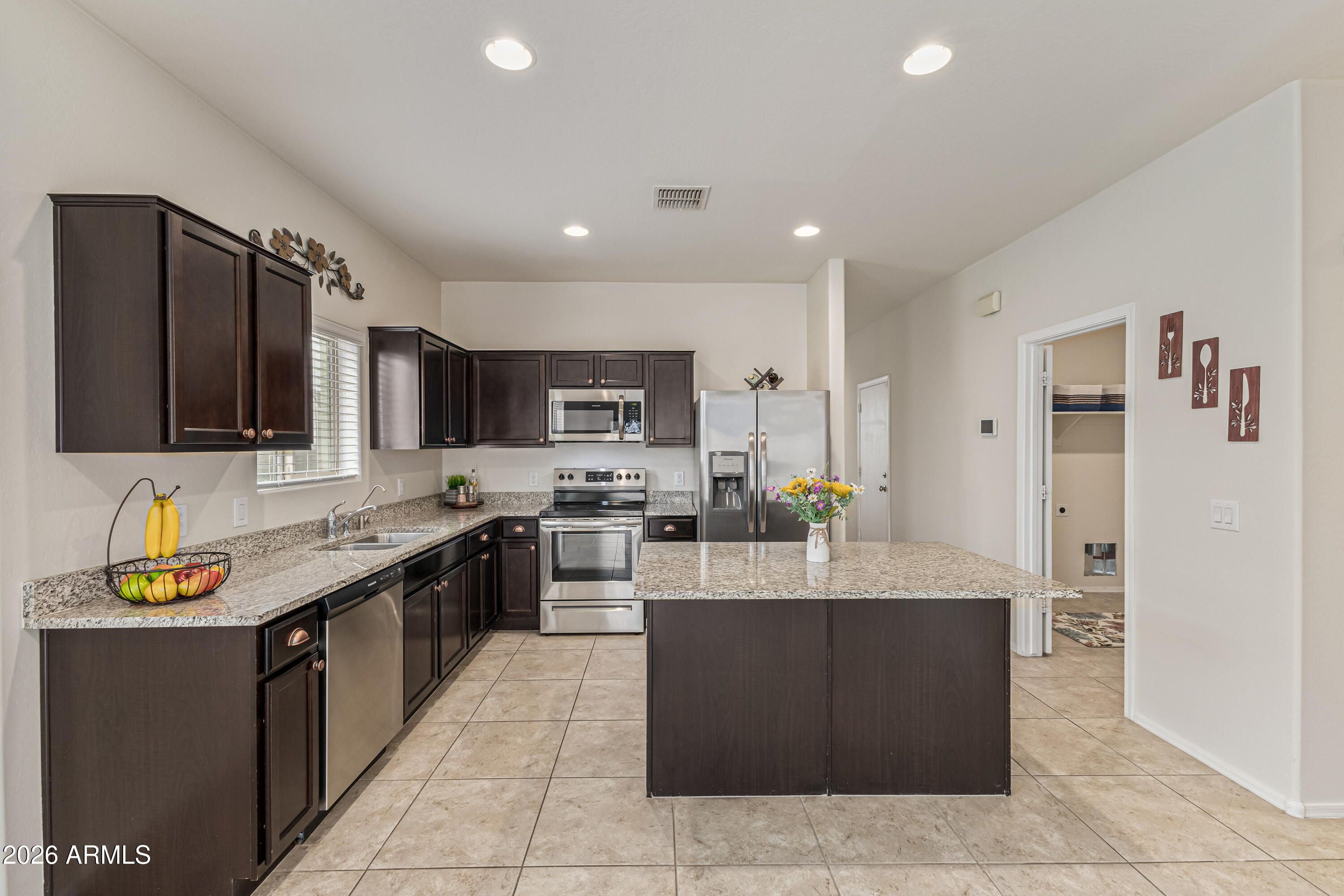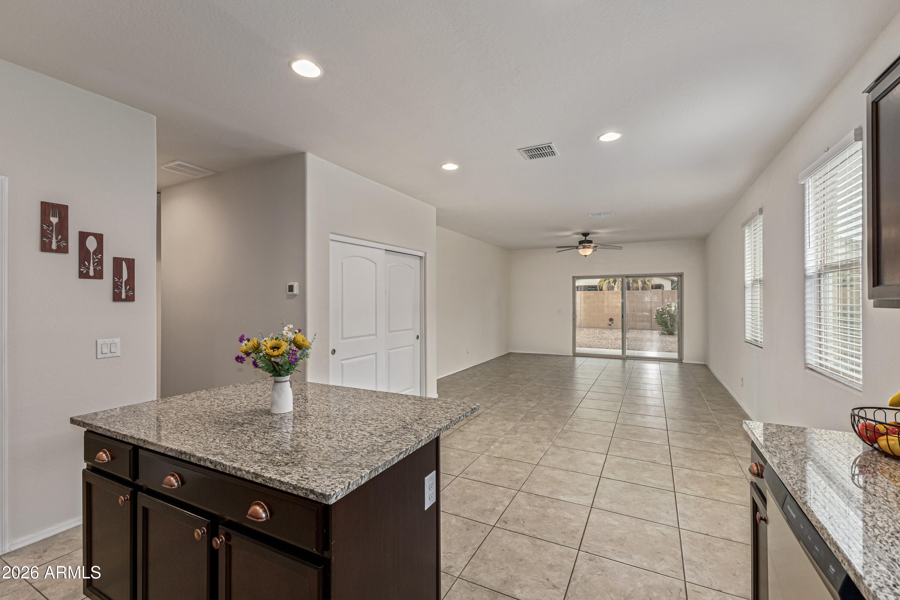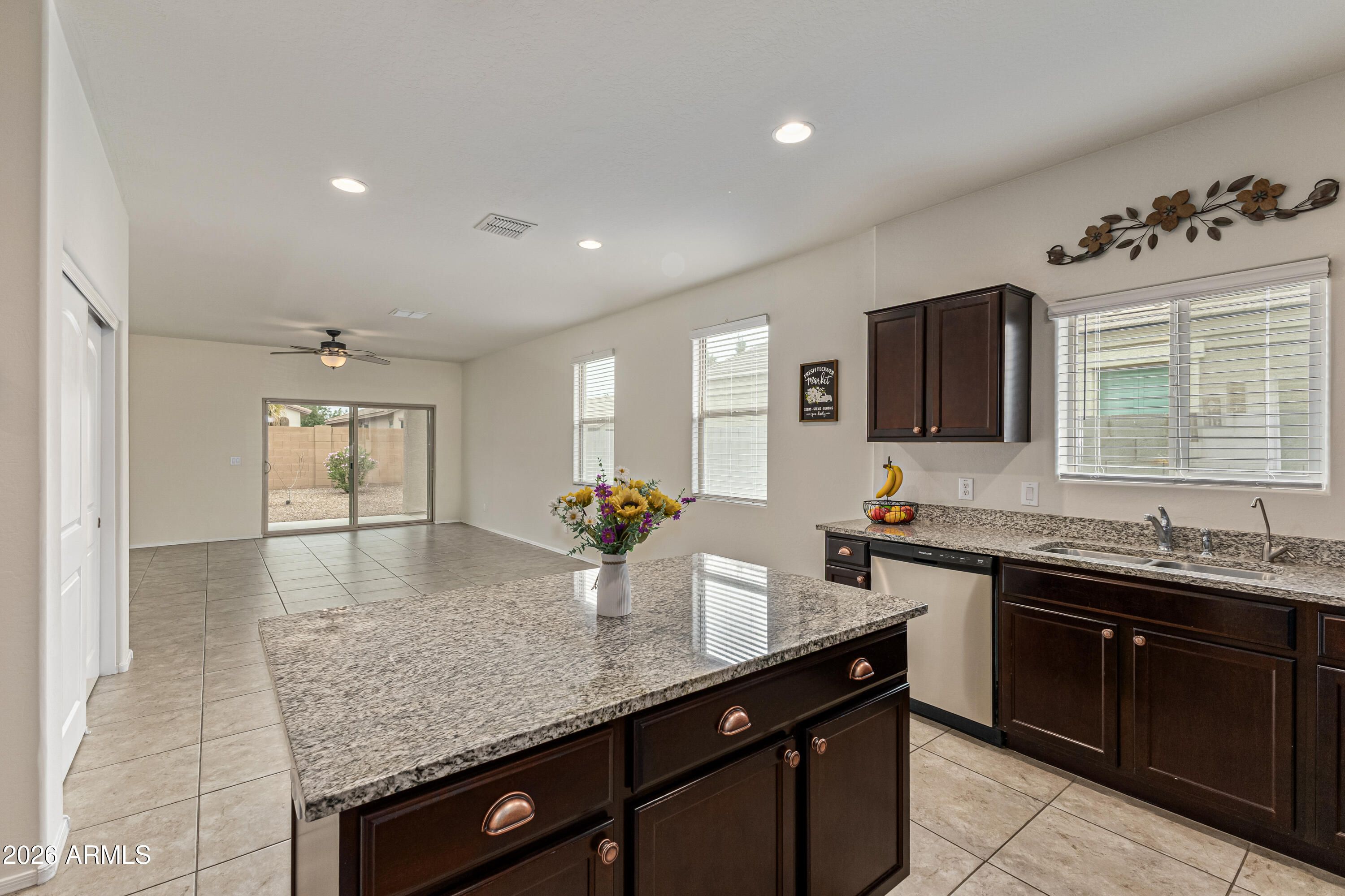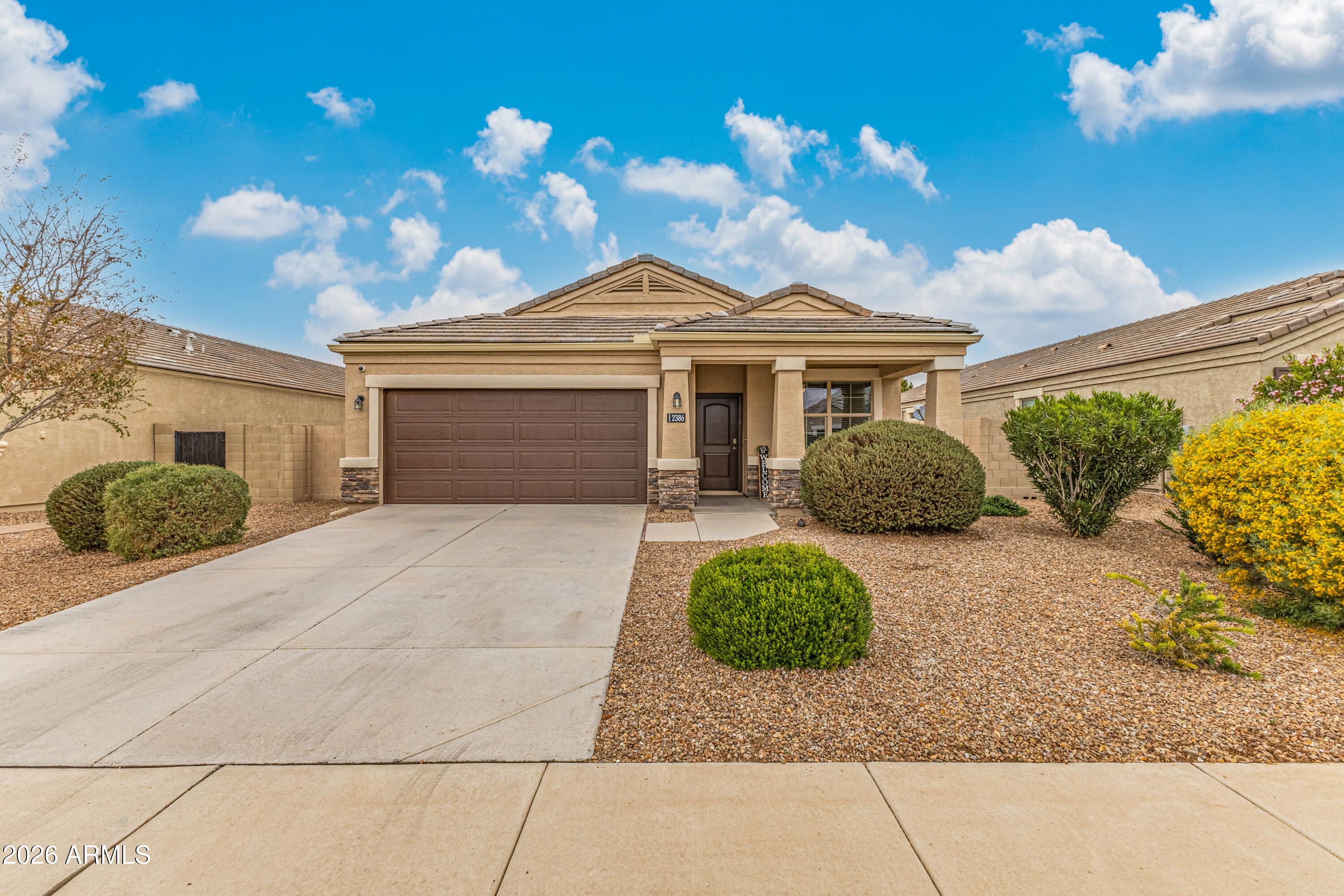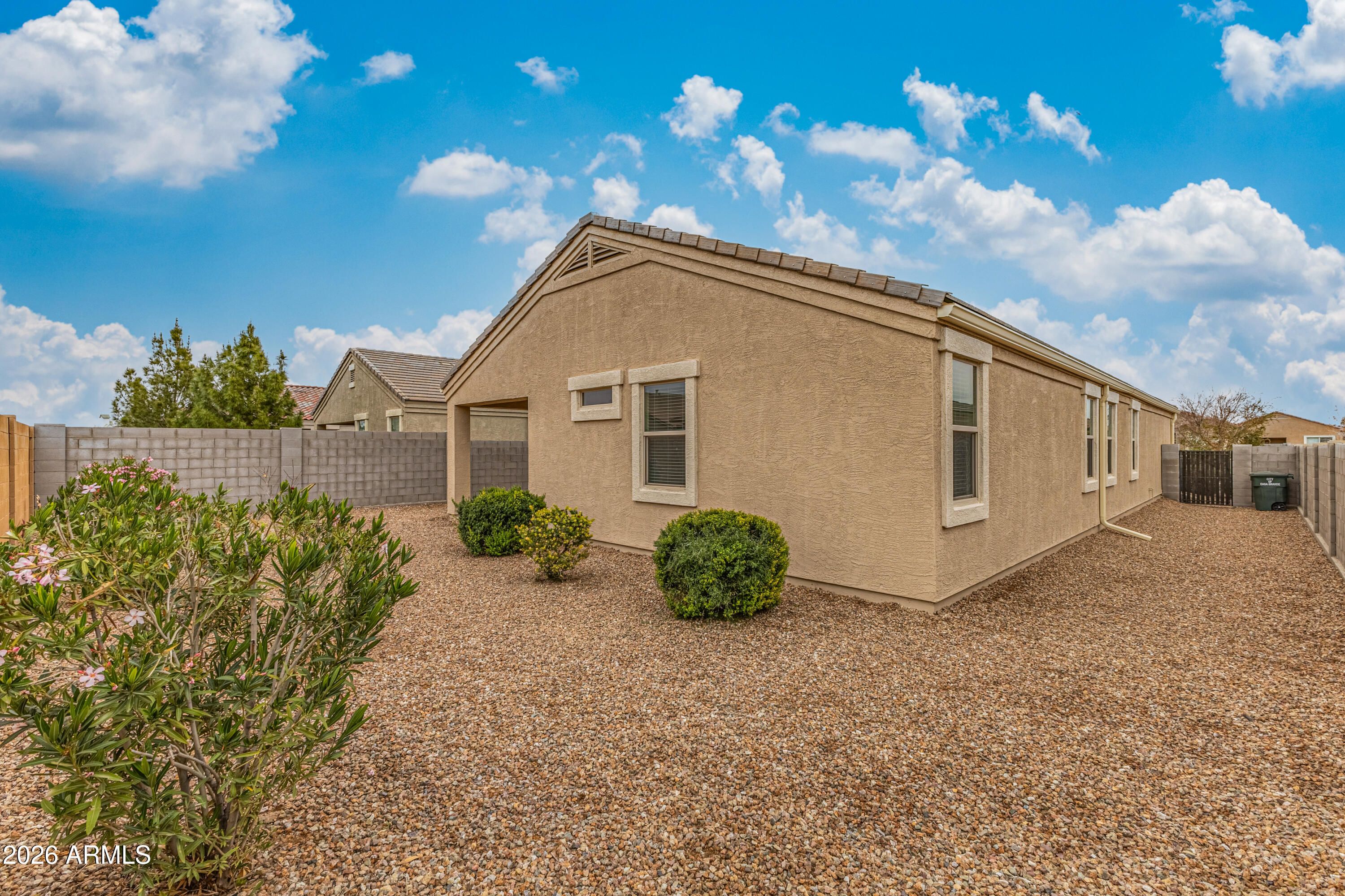 Settle into a home where space, comfort, and community come together. Built in 2019, this single-level, 4-bedroom home offers a layout that feels open, relaxed, and easy to live in. The brick exterior and welcoming front porch set the tone, perfect for morning coffee or winding down at sunset. Inside, a flexible front room adapts to your life, whether you need a home office, playroom, or creative space. The heart of the home opens into a bright living area and kitchen designed for gathering, featuring granite countertops, center island, generous cabinetry, and a walk-in pantry. The primary suite is a true retreat with a spacious walk-in closet and private bath with dual sinks and an oversized walk-in shower. Ceiling fans throughout keep the home comfortable year- round. Step outside to a covered patio and low-maintenance backyard, ideal for quiet evenings, weekend lounging, or stargazing under wide-open skies. Set within the Mission Royale community, this home offers more than just a place to live; it offers a lifestyle. Enjoy an adventure water park, sports courts, playgrounds, tot lots, shaded ramadas with BBQs, and miles of walking trails. Here, you get room to breathe, space to unwind, and the freedom of a quieter setting, while still having easy access to I-10, shopping, and dining. If you've been craving space, peace, and a sense of community, this is the one worth seeing in person. Fresh Exterior Paint (02/2026)