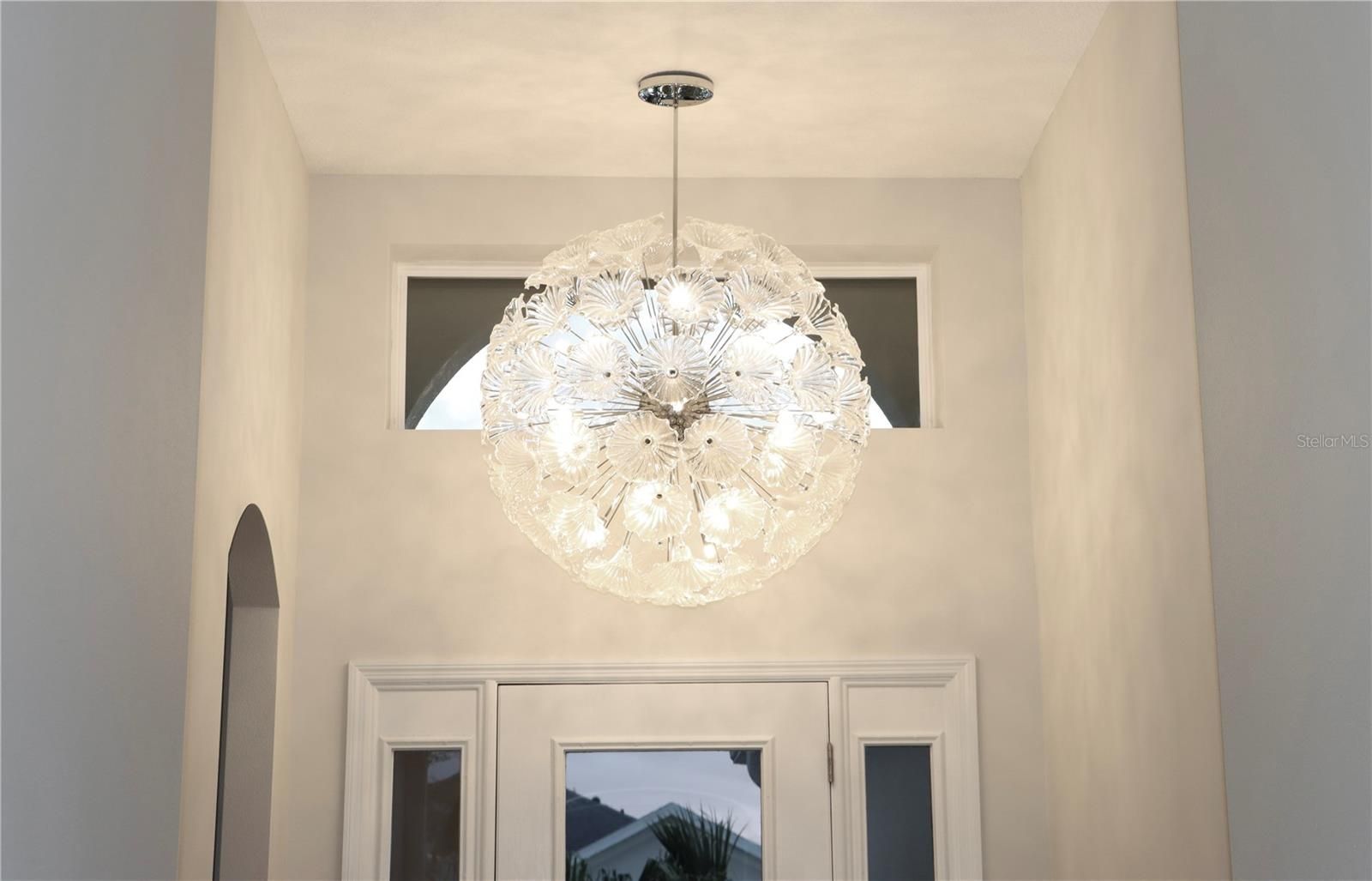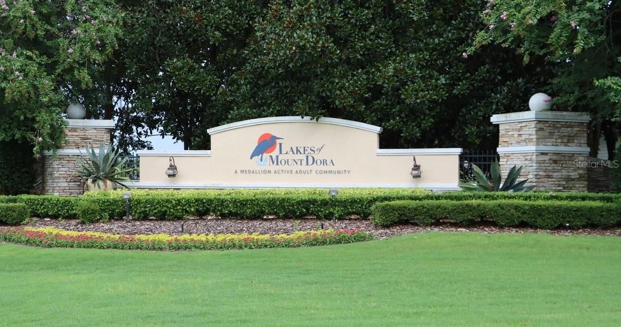 Welcome to this amazing waterfront home in the Lakes of Mount Dora, designed with an open floor plan to include high ceilings and numerous upgrades. Approaching the front door, you can see the custom Frangipani chandelier over the large foyer. Then, continue to delight in this split 3/2 with primary suite. Amble down the hall and look out through the sliding glass pocket doors, through the clear sliders enclosing the Florida room, you will smile at the long view of calming water. Sit in the formal dining space of the great room with its glamorous chandelier and enjoy one of the best water views in the Lakes of Mount Dora. Moving through the great room to the Florida room, you will notice an electric fireplace/heater for a cozy experience enjoying the thoughtful side privacy landscaping. In the morning, open the door from the primary suite to the Florida room and step into Florida’s amazing Eastern morning sunshine. The thoughtful additional electrical outlets will allow that automatic coffee pot to be placed outside your main suite, enjoy a cup, and watch the sunrise over the water. Fishermen may be on the water or take your own boat out and enjoy your coffee on the water. From the great room, turn left to your eye-catching kitchen with upgraded stainless appliances, numerous soft-close solid wood cabinets including plenty of drawers, under cabinet lighting, granite counters, and breakfast nook with upgraded light fixture. Need that huge pot for entertaining? Grab it from the spacious walk-in pantry with plenty of shelving and storage for your kitchen supplies. The laundry room has washer/dryer, deep in-cabinet sink, wall cabinets, and hanging area. Retreat to your sensational primary suite with many windows, view of lake, and Florida room access. As you move through the hallway into the spacious primary suite, you will approach two separate walk-in designer closets with shelving and drawers that makes putting your clothes away a breeze. Enjoy a relaxing bath in the extra-large soaking tub with plenty of hot water provided by your gas on-demand water heater. Roman (roll-in) shower has full body shower heads with lots of water pressure. The primary bath has split vanities and a water closet for privacy. Time to go out? Your impressive, expanded garage, at 22 X 31 feet, can easily hold your two cars plus a golf cart or motorcycle and still have room for your tools. Need a little more space, you have three large overhead Saferacks. This well-maintained home is move-in ready and has a security system. Your home in the Lakes of Mount Dora, a 55+ active adult gated community, gives you access to many available amenities, including a gated RV/Boat parking/storage area. You have key card access to the large club house that offers a library, fitness center, arts/crafts, billiards, and card game rooms, with a large social hall where many community activities are held. You will enjoy a walking trail, resort style pool, hot tub, large fire pit with seating, pickle ball, tennis courts, bocce, croquet, cornhole, softball, and other activities. The Lakes of Mount Dora is a golf cart friendly community with a private golf cart trail to access the neighboring Mount Dora County Club golf course & restaurant. You will appreciate being less than 15 minutes from Mount Dora, the city of festivals, and less than 60 minutes away from Orlando.