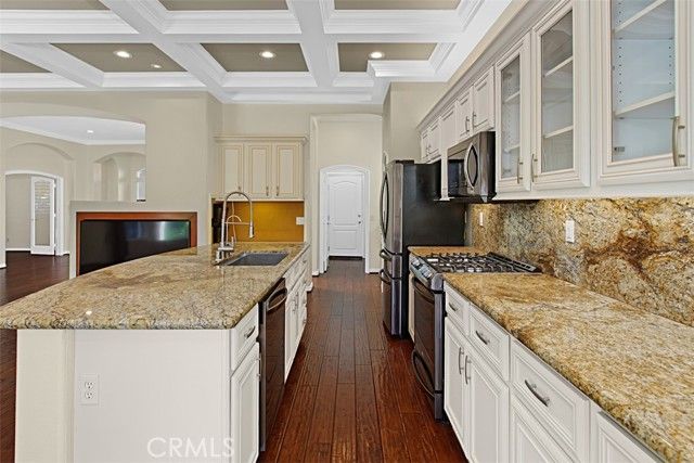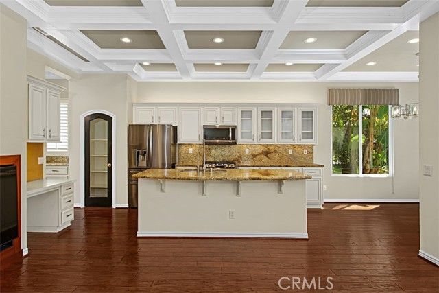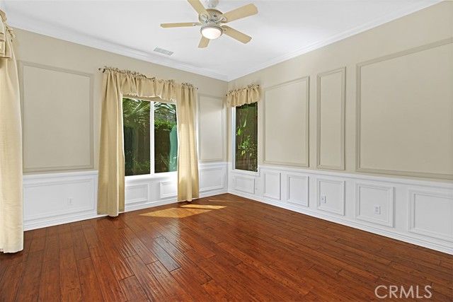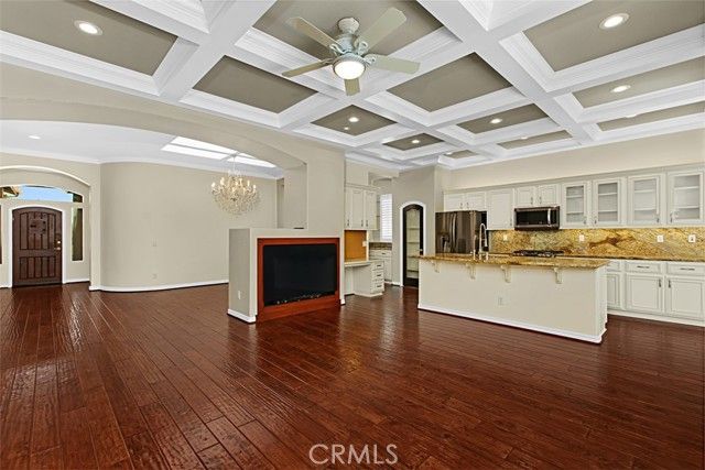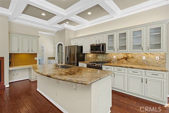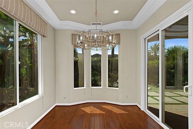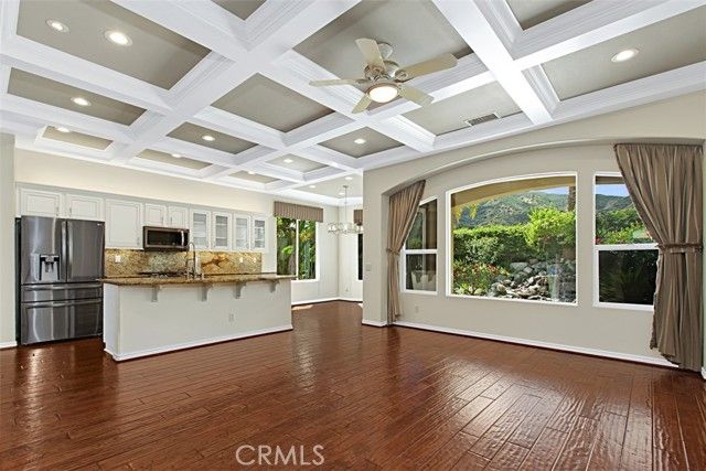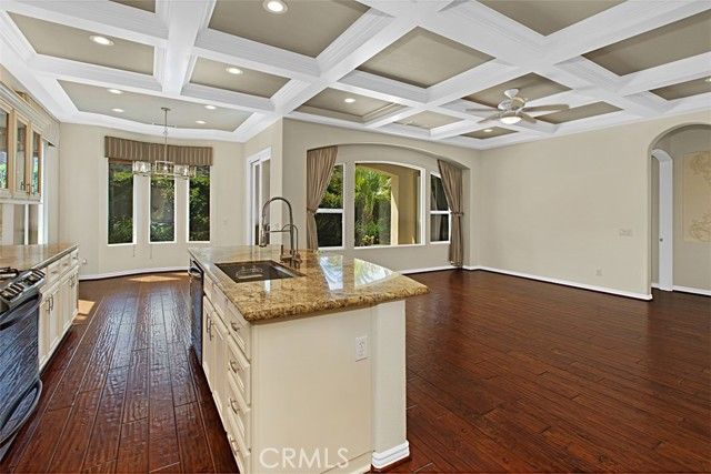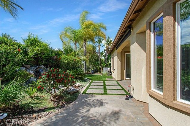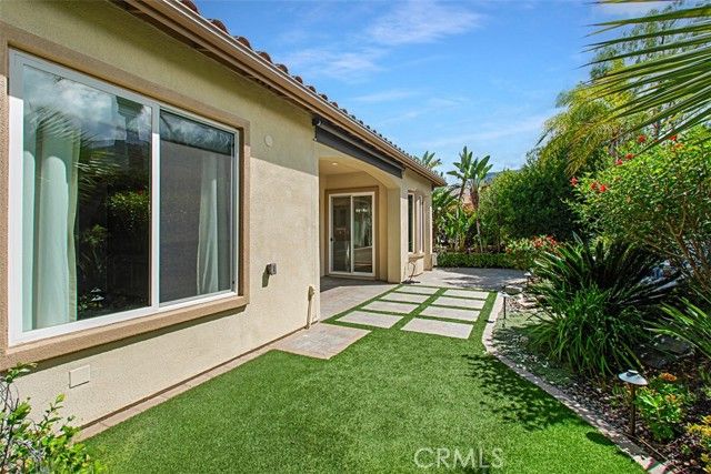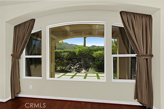 Welcome to Trilogy at Glen Ivy. An active 55 plus community at the base of the Cleveland National Forest and surrounded by the world famous Glen Ivy Golf Course. This Laguna Floor Plan is Stunning with 2 bedrooms a den and 2 baths. A Beautiful gated Flagstone entry welcomes you inside your private paradise. Engineered wood flooring throughout the home. Looking out the Great Room Picture Window is a Gorgeous Stone Waterfall surrounded by lush mature landscaping. The Ceiling of the Great Room Features a Tray Ceiling with Custom Wood Beams. Custom Wall Colors and Custom Window Coverings throughout. The Open Kitchen features granite counters with full backsplash, newer Stainless steel sink, Reverse Osmosis and newer refrigerator. Sunny breakfast nook and breakfast bar open onto the large open Great Room. There is a large separate dining room with a dramatic skylight. Featuring curved walls and arched doorways throughout the home. The Primary bedroom has Custom Wall Treatments and a sliding glass door to enjoy your Peaceful Private Oasis. Primary bath shower has newer non slip Pebble Tech flooring and a fabulous Custom Closet Organizer. Separate Laundry Room with newer Washer and Dryer. 2 Car Attached Garage with plenty of storage and PAID SOLOR! Recently refurbished Lodge and ballroom which is the hub of activities. Large Amphitheatre for summer concerts under the stars! 4 tennis courts, pickle ball, bocce ball, cards, billiards room, dances, dinners, ceramics, painting, glass fusion, a travel club, wine clubs, complimentary WI-FI and much more! Life begins at 55!
