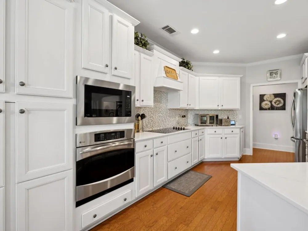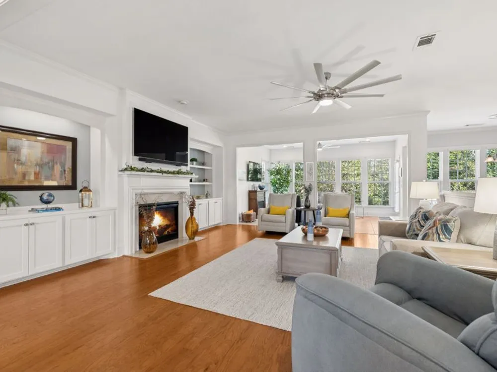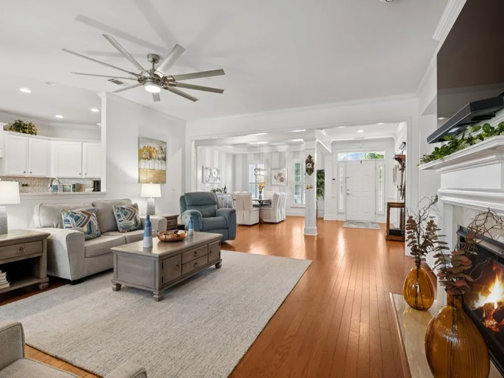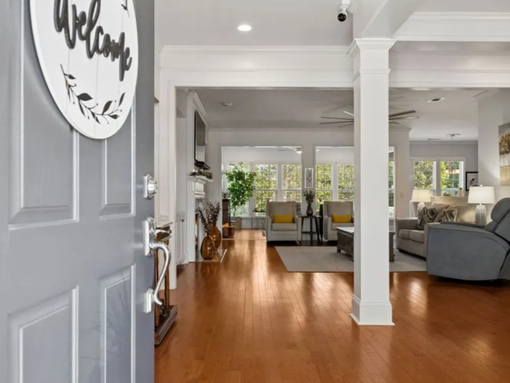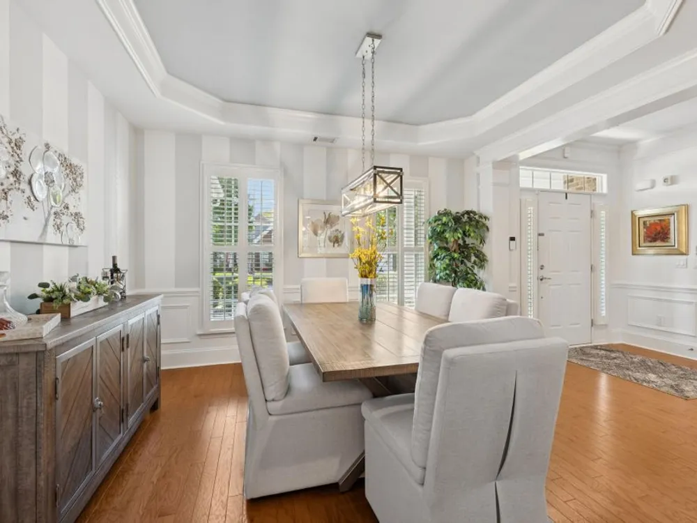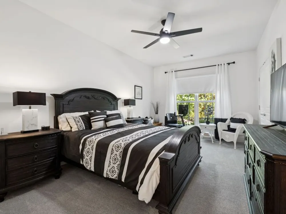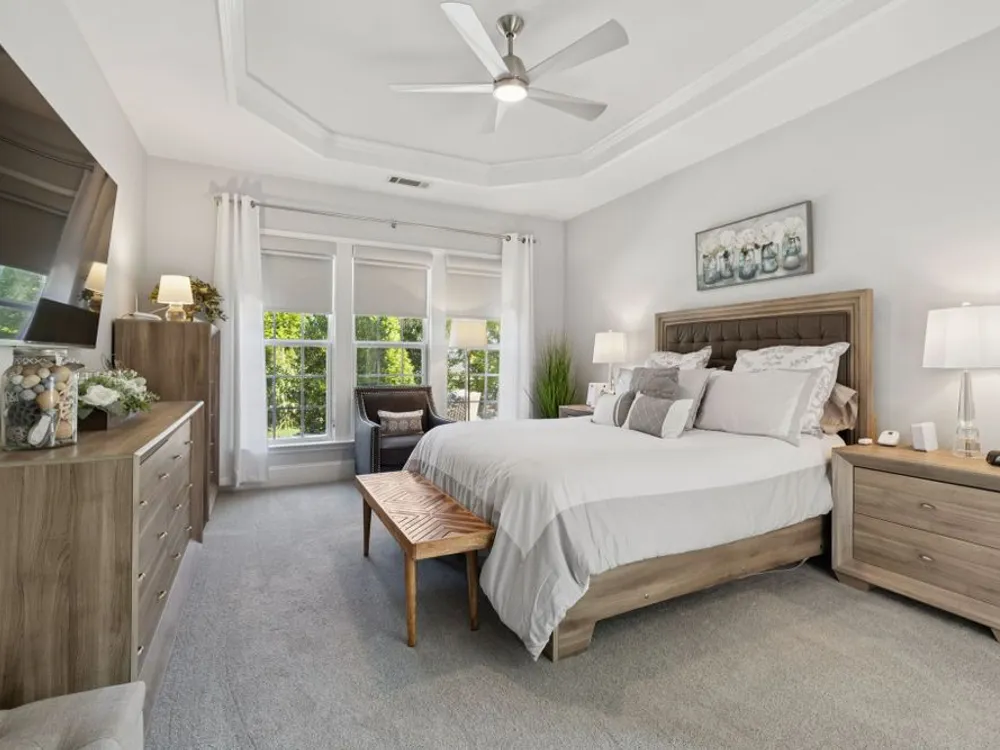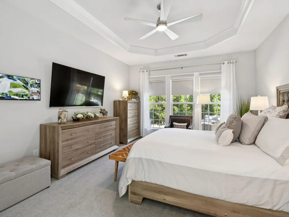 Welcome home to modern updates, stylish finishes, and all the comforts of resort-style living in the premier 55+ community of Del Webb Lake Providence. Bluffton plan thoughtfully upgraded inside & out, this home is move-in ready and designed for elegance, convenience & enjoyment. Kitchen is a true standout with beautiful quartz countertops, glass tile backsplash, a touch-activated faucet, new cooktop, new microwave, and a new LG French-door refrigerator with dual ice makers—all complemented by abundant white cabinetry. No detail has been overlooked, including white Decora-style light switches, many with dimmers, and USB outlets throughout. Enjoy the updated light fixtures, ceiling fans with remotes, fresh paint, and crown molding in this immaculately kept, pet-free, and smoke-free, home. The renovated primary bath shines with a frameless glass shower surround and beautiful contemporary tile. Even the garage has been upgraded with a recent epoxy-coated floor, and new garage door opener! Major mechanicals have been thoughtfully cared for, including irrigation system, a 3-yr-old water heater, and an 8-yr-old roof. And the outdoor space! Extended stamped concrete patio with additional lush landscaping perfect for relaxing or entertaining. Practicality meets convenience with all appliances remaining—including the LG washer, dryer, and even the 65-inch L.G. TV in the bedroom. The tech updates also include eight 4k NVR security cameras and three 27" LG monitors that remain. No guessing if that Amazon package has arrived! Beyond the home, life at Lake Providence offers more than just a neighborhood—it’s an experience. Take advantage of the 24,000 sq. ft. clubhouse, indoor & outdoor pools, state of the art fitness center, tennis & pickleball courts, craft room, miles of walking trails, and a scenic 15-acre lake. Social clubs & activities abound, making it easy to stay active, connected, and engaged. Don’t miss the opportunity to make 239 Antebellum Lane your next chapter