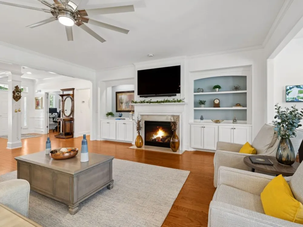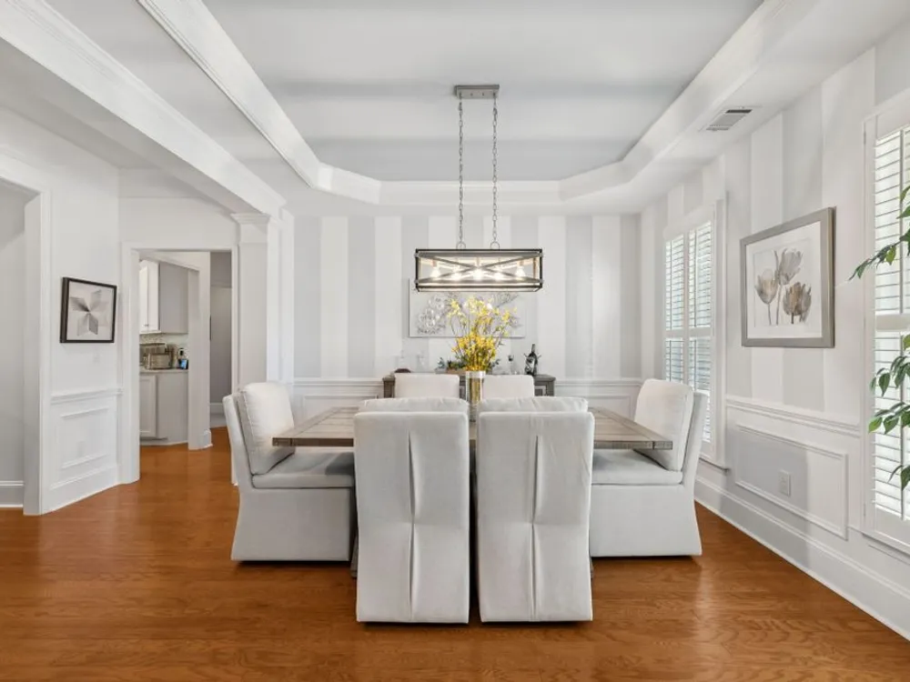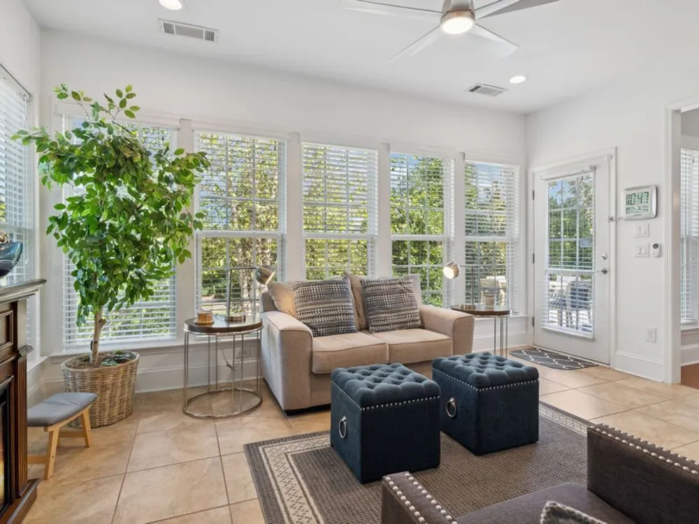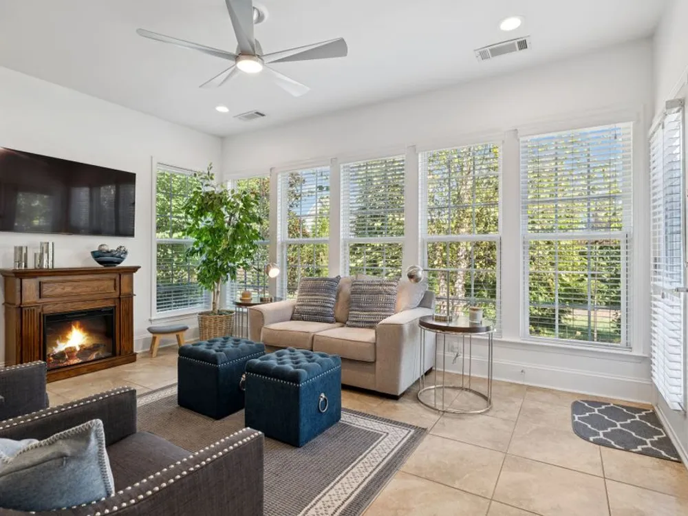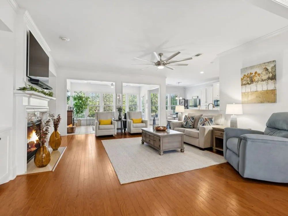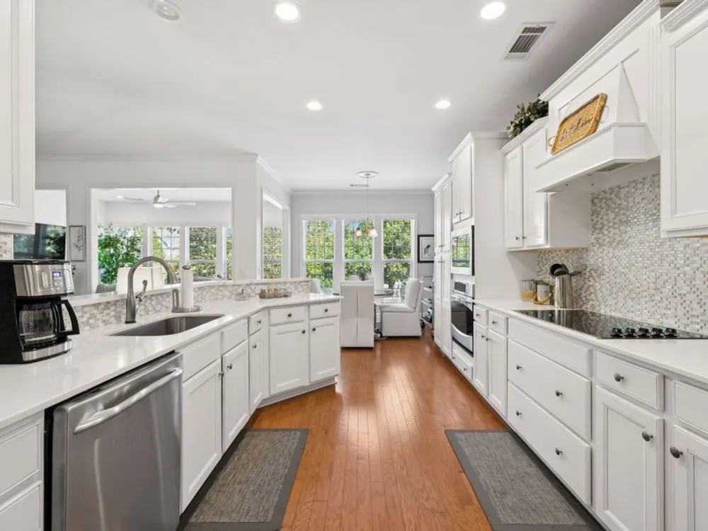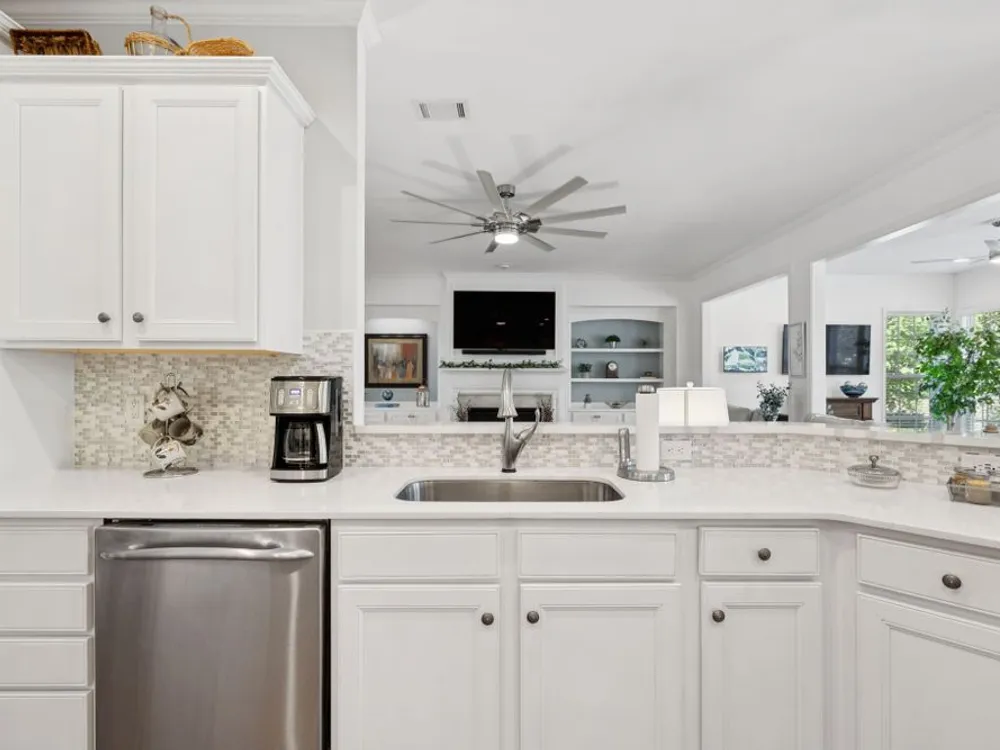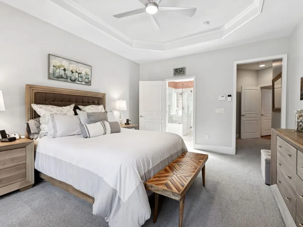 Welcome home to modern updates, stylish finishes, and all the comforts of resort-style living in the premier 55+ community of Del Webb Lake Providence. Bluffton plan thoughtfully upgraded inside & out, this home is move-in ready and designed for elegance, convenience & enjoyment. Kitchen is a true standout with beautiful quartz countertops, glass tile backsplash, a touch-activated faucet, new cooktop, new microwave, and a new LG French-door refrigerator with dual ice makers—all complemented by abundant white cabinetry. No detail has been overlooked, including white Decora-style light switches, many with dimmers, and USB outlets throughout. Enjoy the updated light fixtures, ceiling fans with remotes, fresh paint, and crown molding in this immaculately kept, pet-free, and smoke-free, home. The renovated primary bath shines with a frameless glass shower surround and beautiful contemporary tile. Even the garage has been upgraded with a recent epoxy-coated floor, and new garage door opener! Major mechanicals have been thoughtfully cared for, including irrigation system, a 3-yr-old water heater, and an 8-yr-old roof. And the outdoor space! Extended stamped concrete patio with additional lush landscaping perfect for relaxing or entertaining. Practicality meets convenience with all appliances remaining—including the LG washer, dryer, and even the 65-inch L.G. TV in the bedroom. The tech updates also include eight 4k NVR security cameras and three 27" LG monitors that remain. No guessing if that Amazon package has arrived! Beyond the home, life at Lake Providence offers more than just a neighborhood—it’s an experience. Take advantage of the 24,000 sq. ft. clubhouse, indoor & outdoor pools, state of the art fitness center, tennis & pickleball courts, craft room, miles of walking trails, and a scenic 15-acre lake. Social clubs & activities abound, making it easy to stay active, connected, and engaged. Don’t miss the opportunity to make 239 Antebellum Lane your next chapter