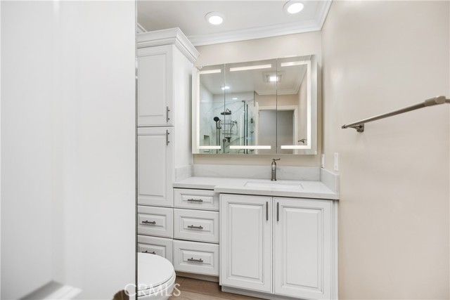 - Balcony, Built-in Features, Ceiling Fan(s), Crown Molding, Living Room Balcony, Open Floorplan, Pantry, Quartz Countertops, Recessed Lighting, Storage, Unfurnished, All Bedrooms on Lower Level, Kitchen, Living Room, Bedroom on Main Level, Main Level Primary, Primary Bathroom, Primary Bedroom, Primary Suite