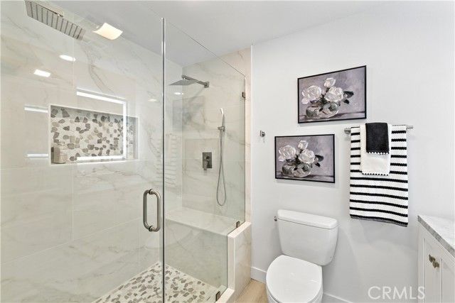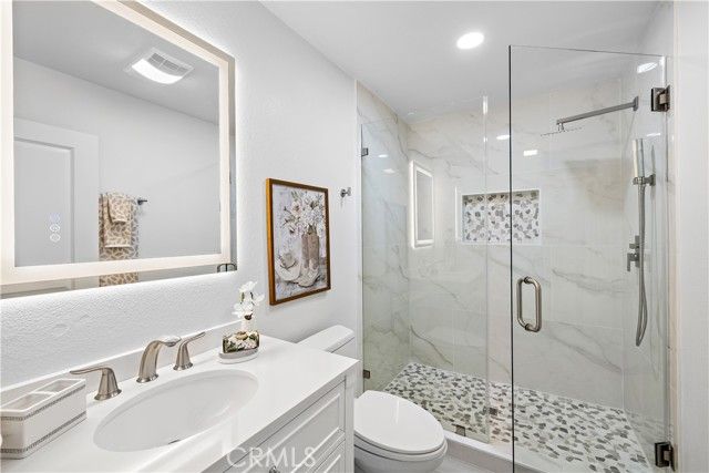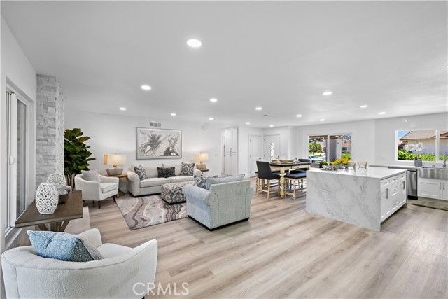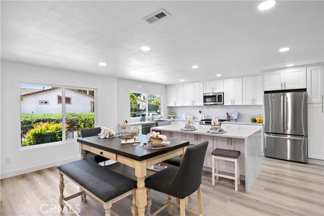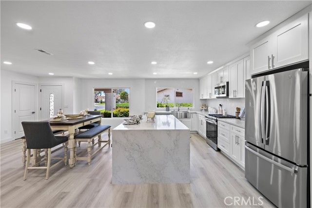 Exceptional Remodeled Retreat on a Private Cul-de-Sac. Welcome to 23902 Via Lugones, a beautifully upgraded custom Elena model nestled in a serene, secluded location on a peaceful cul-de-sac. This thoughtfully remodeled home offers approximately 1,400 square feet of elegant living space, designed for both comfort and style. Featuring two spacious bedrooms, two full bathrooms, and an attached garage, this home is a true gem. Step inside to discover a stunning, open-concept kitchen with a large center island, all-new custom cabinetry, quartz countertops, and stainless-steel appliances, including a brand-new refrigerator. The kitchen flows seamlessly into the expansive living area, creating a light-filled great room ideal for entertaining or relaxing. The primary suite offers a luxurious retreat with a beautifully remodeled en-suite bath, complete with double sinks, a custom walk-in shower featuring multiple showerheads, and a frameless glass enclosure. The second bathroom has also been tastefully remodeled with a new vanity and walk-in shower. Upgrades throughout the home include wide-plank vinyl flooring, LED recessed lighting, new baseboards, mirrored closet doors, and custom closet organizers. Every detail has been considered—from the new doors and hardware to the comprehensive whole-house REPIPED—providing peace of mind and modern convenience. Enjoy indoor-outdoor living with a large, enclosed patio, perfect for quiet mornings or evening gatherings. Located in a premier 55+ community set on 484 acres of rolling hills and mature trees, residents enjoy resort-style amenities including: Two recreation centers Pickleball, tennis, lawn bowling & sport courts Swimming pool, spa & gym Clubhouse, billiard room & more HOA-covered front yard maintenance, trash, exterior painting, and common area upkeep. As a member of Lake Mission Viejo, you'll also enjoy access to swimming, fishing, boating, and lakeside picnics. 23902 Via Lugones isn’t just a house—it’s a tranquil, upgraded haven in one of the most desirable 55+ communities. Come experience the lifestyle you’ve been waiting for.