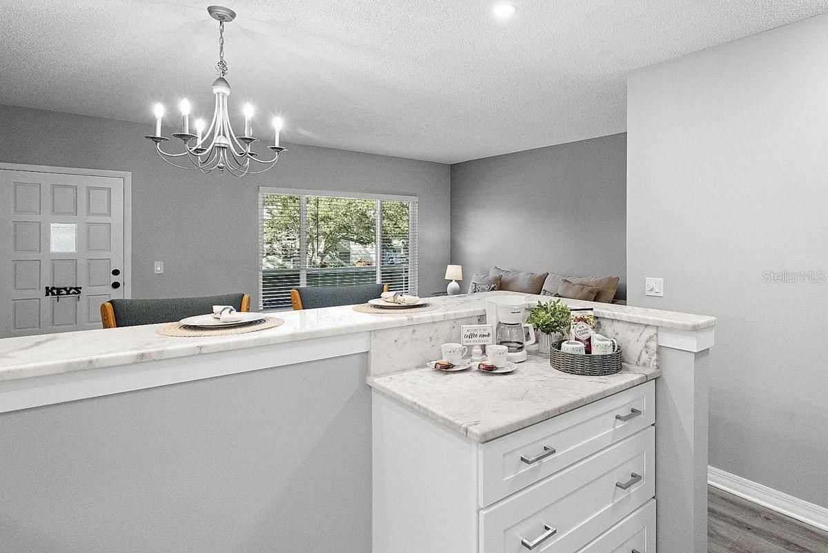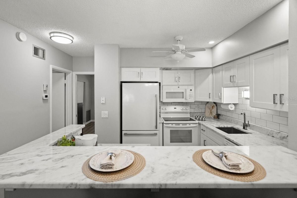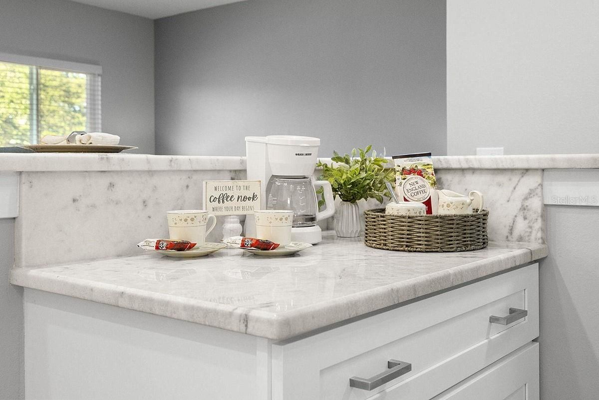 - Ceiling Fan(s), Kitchen/Family Room Combo, Stone Counters, Thermostat, Window Treatments