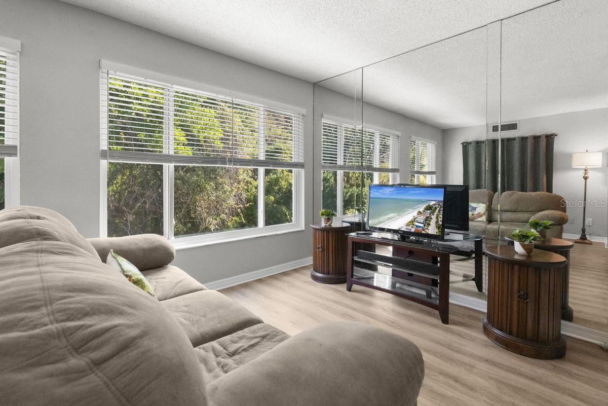 Nice! Nice! Nice! This totally updated, fully furnished condo is the perfect combination of maintenance free living with countless amenities and a great location!!! It's located in a desirable 55+ community just off the beaten path yet near everything. The unit offers the following: a bright spacious great room, an updated open kitchen with breakfast bar, a large master suite with double closets, an updated full bath, PLUS a relaxing Florida room with tranquil views of mature trees & landscaping, PERFECT for your morning coffee and evening glass of wine. The property has been tastefully updated, nicely furnished, and includes 2 sofa beds. Upgrades include, KITCHEN: soft close shaker cabinets with hardware, quartz counters with 4" backsplash, subway tile walls, accent light, deep stainless farm sink, faucet, recessed lights, ceiling fan, and appliances, BATHROOM: vanity, marble counter, sink, faucet, mirror, light fixture, porcelain tile flooring, and custom tiled walk-in shower with glass enclosure, CONDO: efficient luxury tile flooring, 2" plantation shades, fresh paint, A/C system (2021), PLUS double paned impact windows (2024). Unit also has a laundry facility and storage area footsteps away on the 2nd floor, and an assigned parking spot below the unit. OTOW is a meticulously maintained, pet friendly, active community. Monthly fees include everything but electricity. It offers 2 clubhouses, 2 large heated pools, plus a beautiful lake with dock. Amenities include: private golf course, tennis, pickleball, bocce, shuffleboard, fitness center, billiards, library, art room, cafe, auditorium, dance hall, covered pavilion, dog park, picnic area and more. Community is ideally located a short drive from award winning Clearwater Beach, Eclectic Safety Harbor, Historic Downtown Dunedin and the Sponge Docks of Tarpon Springs. This is a MUST SEE for buyers seeking a move-in ready property with maintenance free living. This is Turnkey / Just bring your toothbrush!