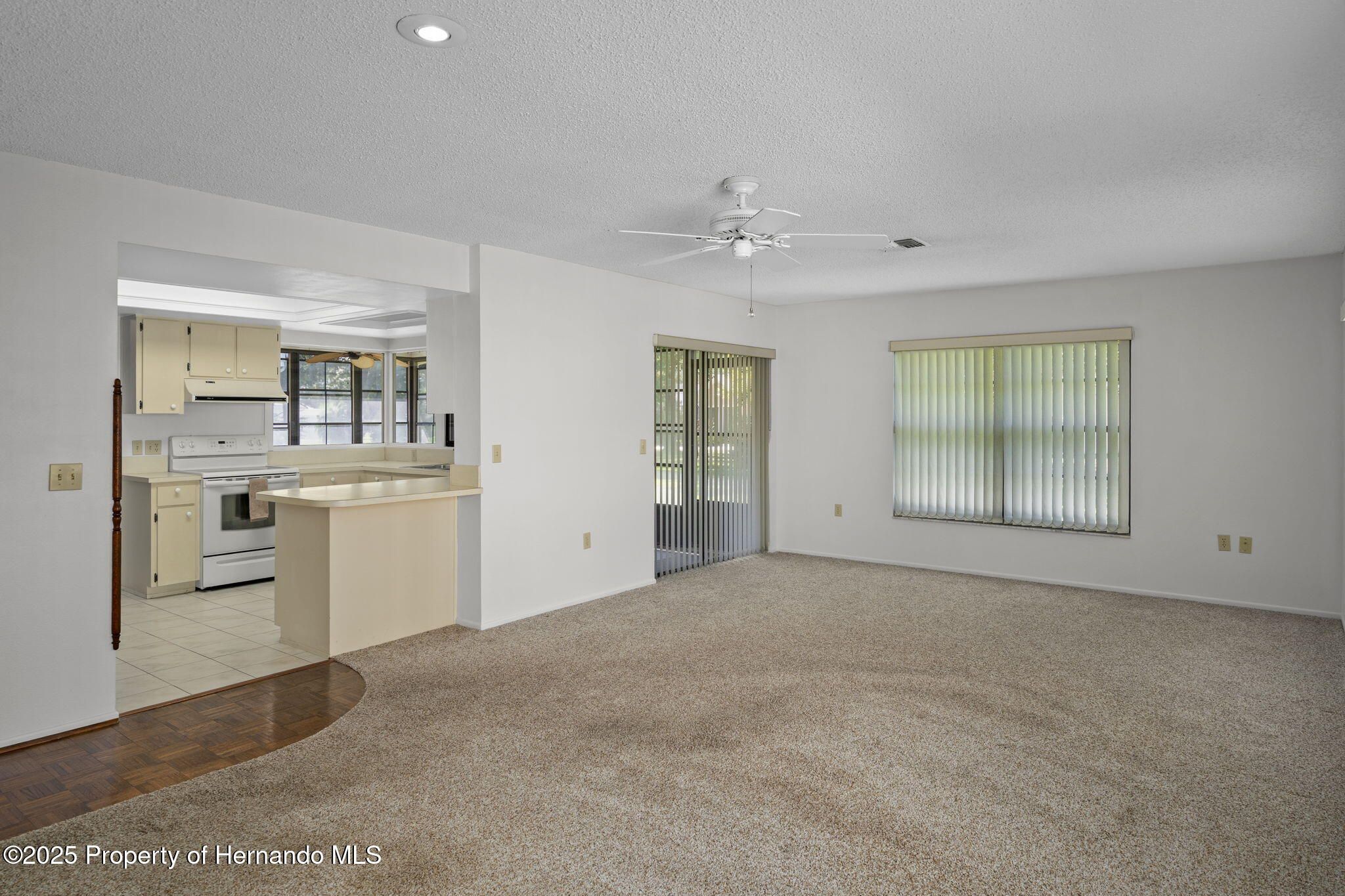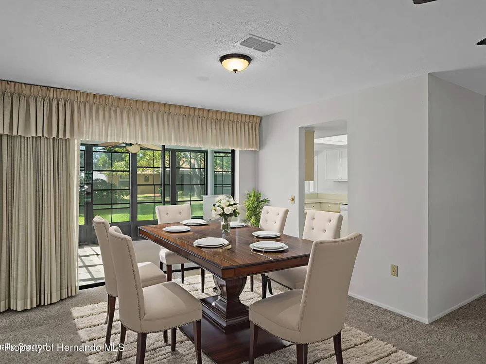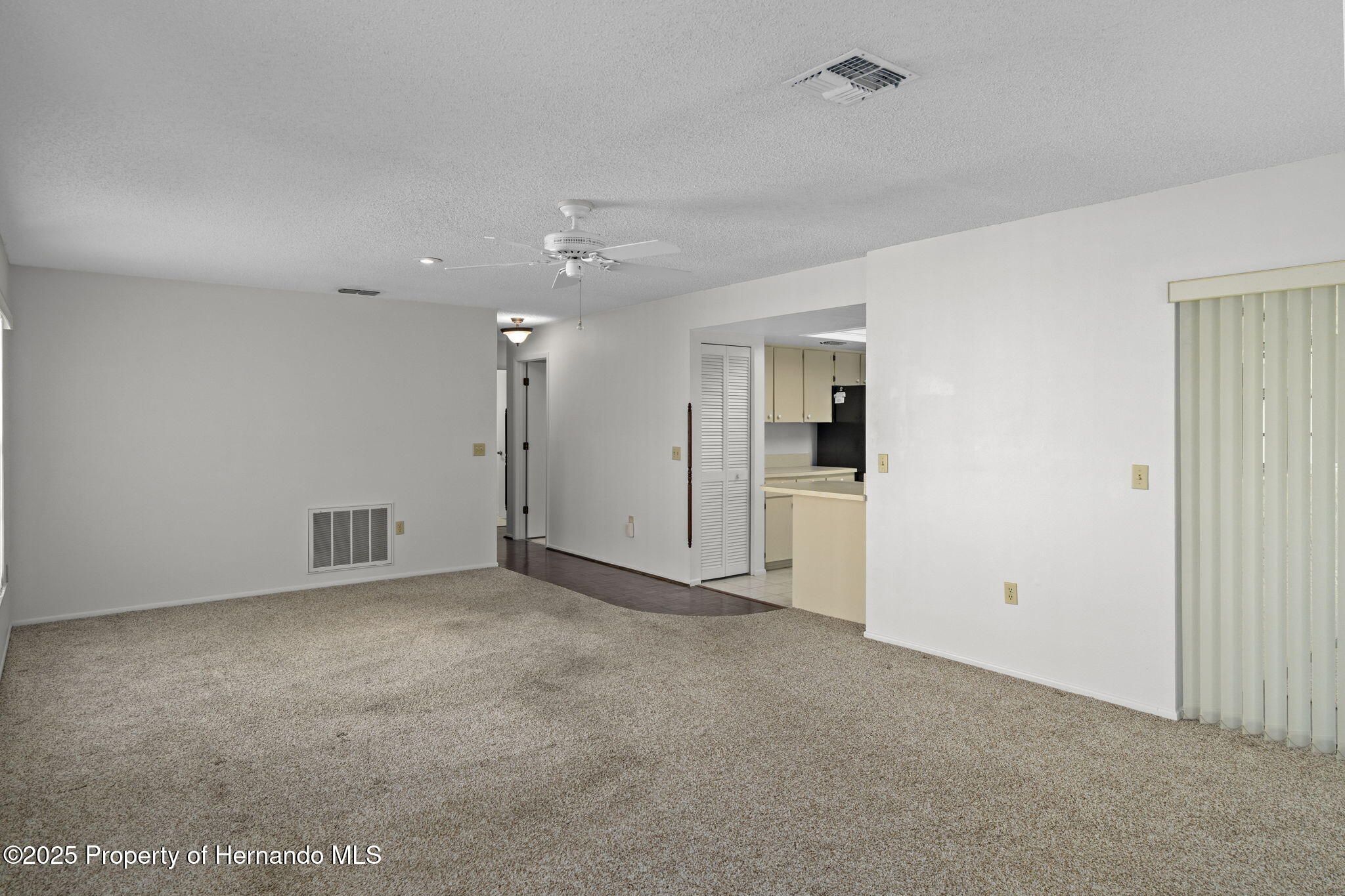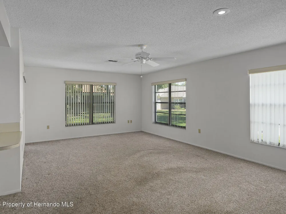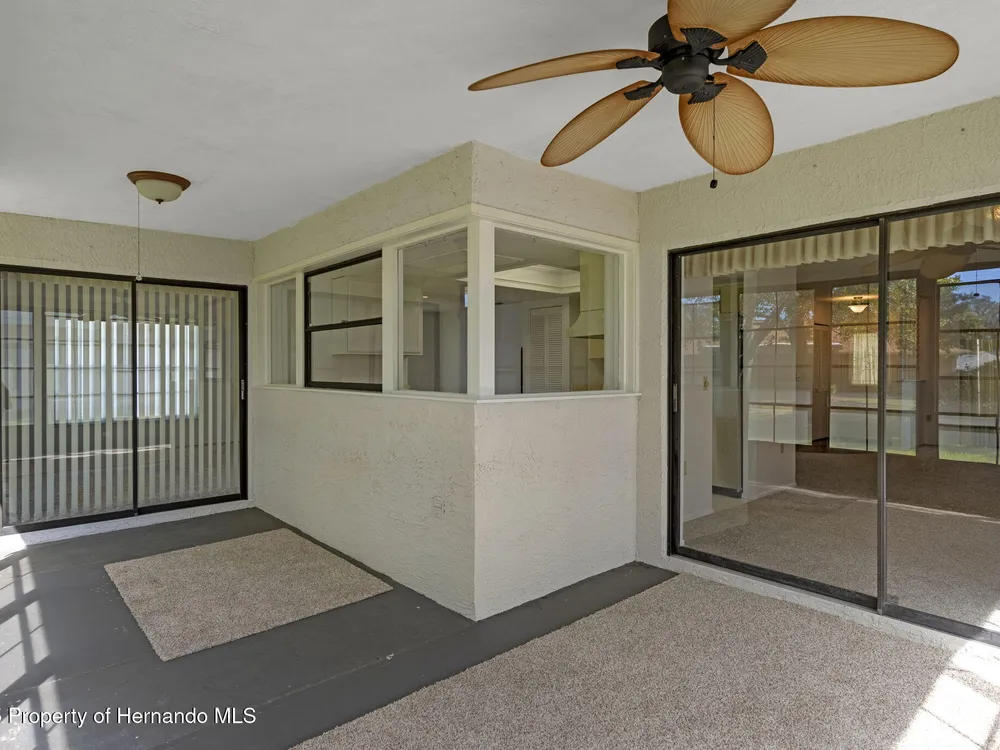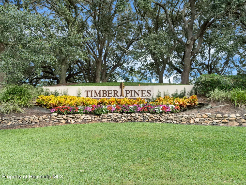 Discover your perfect retreat in the prestigious Pinehurst Village within the award-winning Timber Pines Community. This thoughtfully designed 2-bedroom, 2-bathroom home spans 1,667 square feet and welcomes you with a charming front covered porch that sets the stage for comfortable Florida living. Step inside to find elegant parquet flooring gracing the foyer and hallway, while a convenient entry closet keeps everyday essentials organized. The well-appointed kitchen overlooks the lanai and features gleaming tile floors, stainless steel refrigerator, and a brand-new dishwasher that's ready to handle your culinary adventures. The thoughtful split floor plan maximizes privacy and functionality throughout. The oversized family room serves as the heart of the home, with direct access to the lanai for seamless indoor-outdoor entertaining. Meanwhile, the living and dining rooms flow together beautifully, also connecting to the outdoor space for flexible gathering options. Rich carpeting adds warmth and comfort to the main living areas and bedrooms. The spacious primary bedroom boasts a generously sized walk-in closet and an en-suite bathroom with attractive tile flooring and shower. The well-proportioned guest bedroom offers ample closet space, while the guest bathroom features a convenient shower-tub combination with stylish tile work. Practical amenities include an interior laundry room complete with storage closet, cabinets, and utility sink. The attached garage provides additional storage space for your convenience. Recent improvements showcase the home's excellent maintenance, including a roof installed in March 2024, air conditioning system from 2016, and a hot water heater from 2015. The property features a remarkable 150-foot deep irrigation well installed in 2021, potentially saving nearly 100 monthly on water costs. The backyard offers pleasant privacy with generous spacing from neighboring homes. Living in Timber Pines means access to an impressive array of amenities including 63 holes of championship golf, a state-of-the-art wellness center, pickleball and tennis courts, bocce ball, an elegant country club, and a performing arts center. With over 100 clubs and organizations to choose from, you'll never lack for social opportunities or recreational activities. This recently painted home in a vibrant, active community represents an exceptional opportunity to embrace the Florida lifestyle you've been dreaming about.