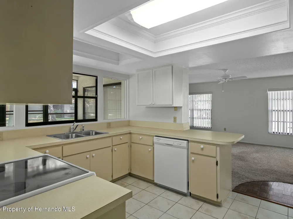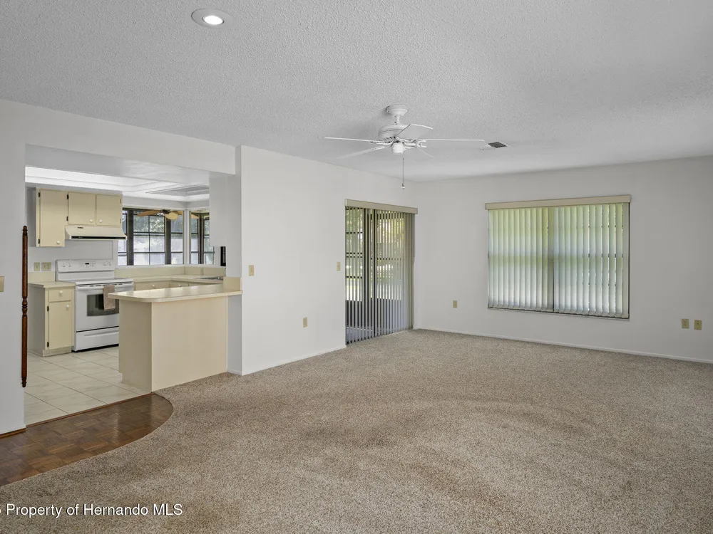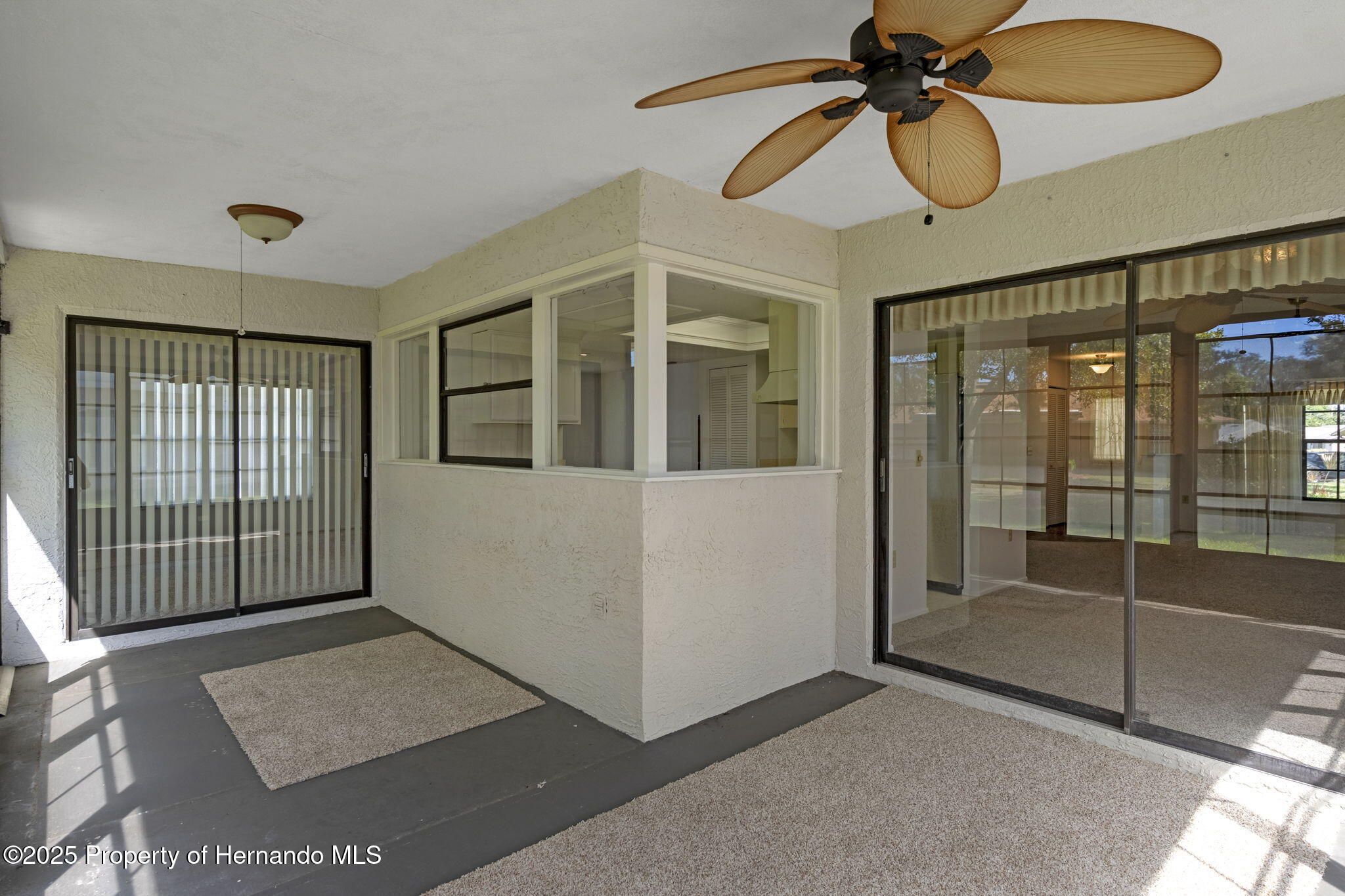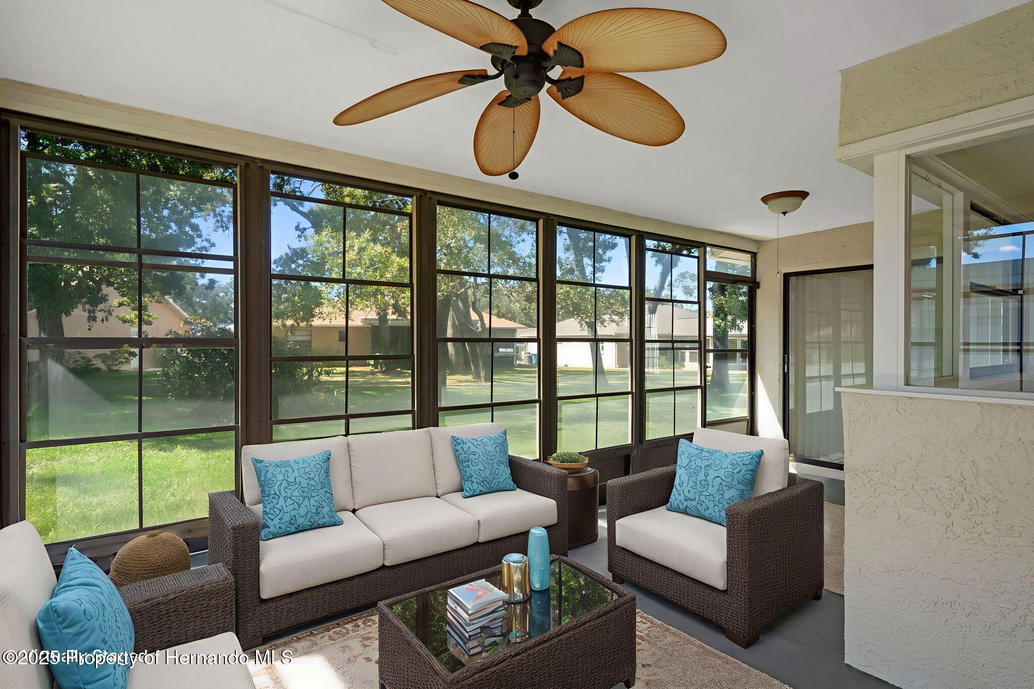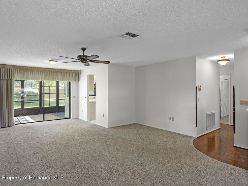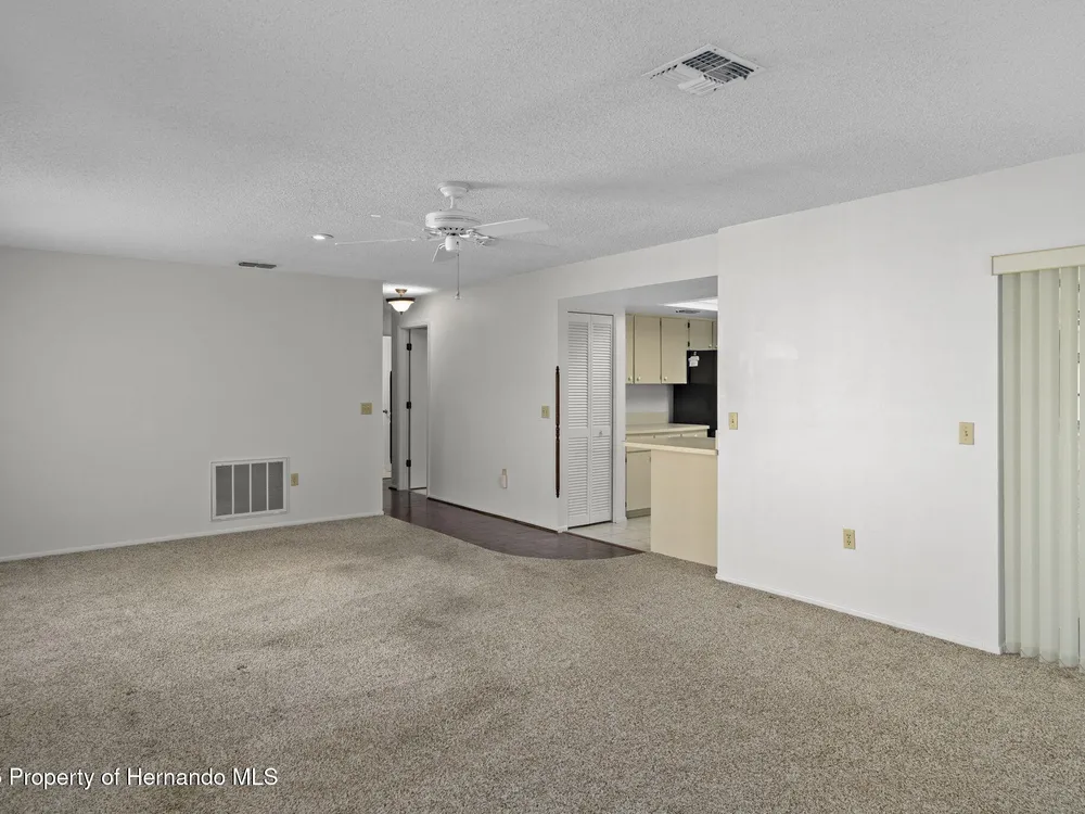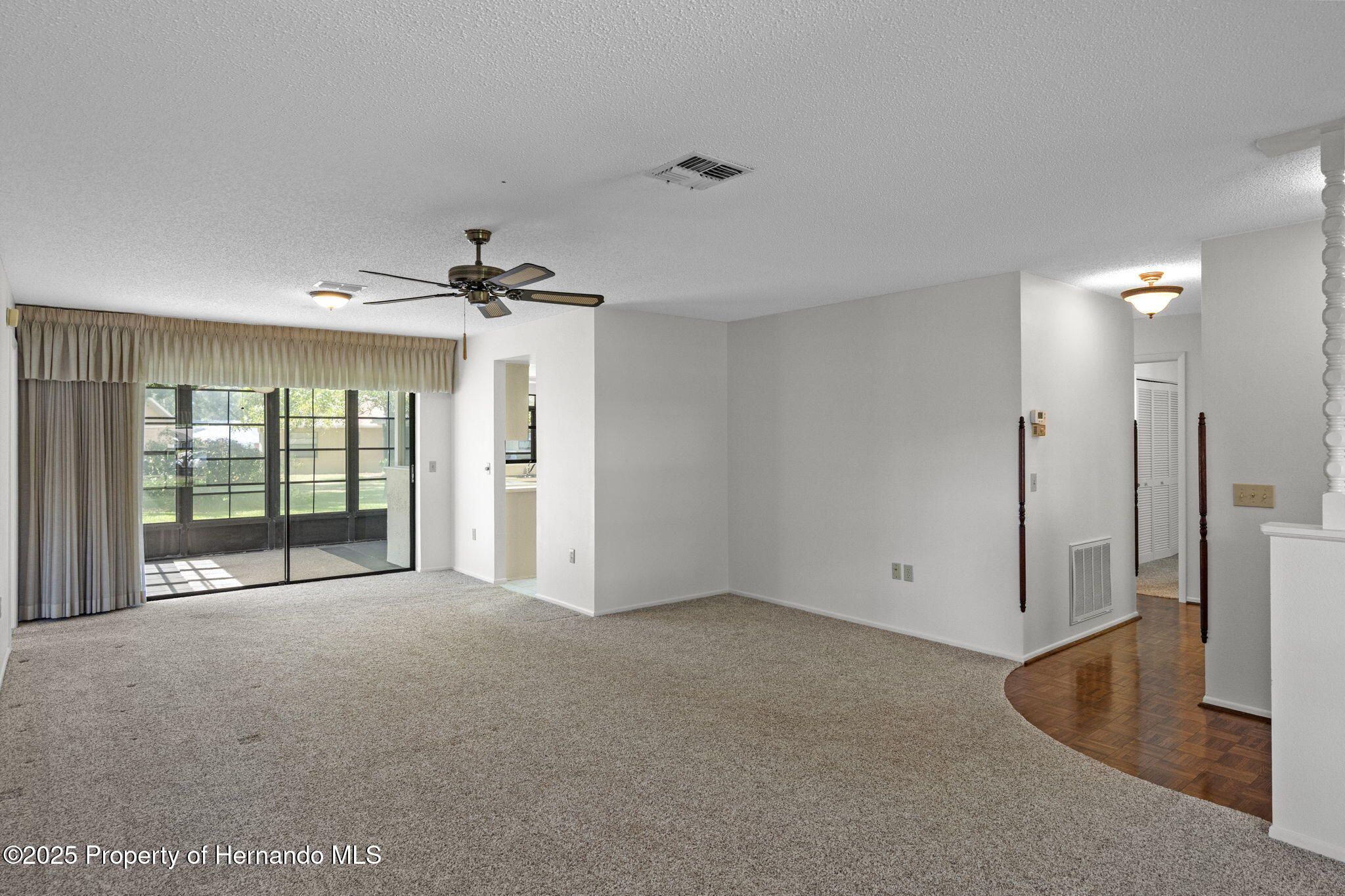 Discover your perfect retreat in the prestigious Pinehurst Village within the award-winning Timber Pines Community. This thoughtfully designed 2-bedroom, 2-bathroom home spans 1,667 square feet and welcomes you with a charming front covered porch that sets the stage for comfortable Florida living. Step inside to find elegant parquet flooring gracing the foyer and hallway, while a convenient entry closet keeps everyday essentials organized. The well-appointed kitchen overlooks the lanai and features gleaming tile floors, stainless steel refrigerator, and a brand-new dishwasher that's ready to handle your culinary adventures. The thoughtful split floor plan maximizes privacy and functionality throughout. The oversized family room serves as the heart of the home, with direct access to the lanai for seamless indoor-outdoor entertaining. Meanwhile, the living and dining rooms flow together beautifully, also connecting to the outdoor space for flexible gathering options. Rich carpeting adds warmth and comfort to the main living areas and bedrooms. The spacious primary bedroom boasts a generously sized walk-in closet and an en-suite bathroom with attractive tile flooring and shower. The well-proportioned guest bedroom offers ample closet space, while the guest bathroom features a convenient shower-tub combination with stylish tile work. Practical amenities include an interior laundry room complete with storage closet, cabinets, and utility sink. The attached garage provides additional storage space for your convenience. Recent improvements showcase the home's excellent maintenance, including a roof installed in March 2024, air conditioning system from 2016, and a hot water heater from 2015. The property features a remarkable 150-foot deep irrigation well installed in 2021, potentially saving nearly 100 monthly on water costs. The backyard offers pleasant privacy with generous spacing from neighboring homes. Living in Timber Pines means access to an impressive array of amenities including 63 holes of championship golf, a state-of-the-art wellness center, pickleball and tennis courts, bocce ball, an elegant country club, and a performing arts center. With over 100 clubs and organizations to choose from, you'll never lack for social opportunities or recreational activities. This recently painted home in a vibrant, active community represents an exceptional opportunity to embrace the Florida lifestyle you've been dreaming about.