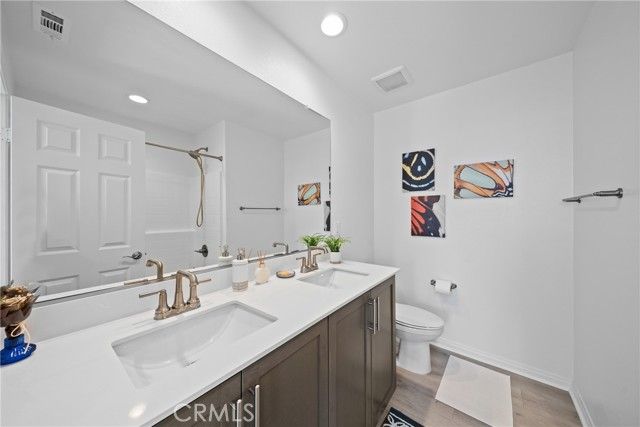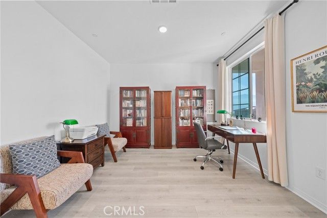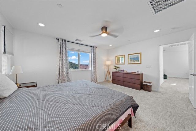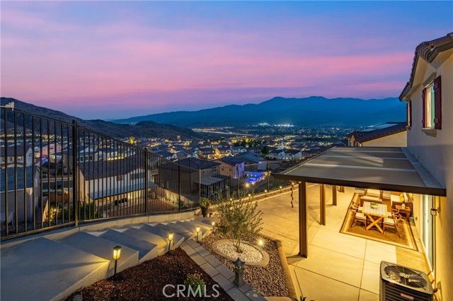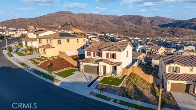 BETTER THAN MODEL HOME!!! Located in a prestigious gated community with breathtaking city and mountain views, this stunning home sits on a premium view lot. The owners spent over $60,000 creating a professionally landscaped front and backyard filled with vibrant flowers, lush plants, and decorative mulch, plus epoxy-coated flooring on both the garage and front porch. The spacious side yard offers extra outdoor living space with open scenic views. Inside features an elegant study off the entry, a spacious great room, and a gourmet kitchen with maple cabinets, quartz countertops, a large center island, walk-in pantry, and adjacent dining area. Upstairs includes a cozy loft with beautiful view, an exceptional primary suite with additional windows, a generous walk-in closet, and a private bath, along with two secondary bedrooms each with their own walk-in closets, and a shared hall bath. The laundry room is conveniently located upstairs with sink pre-plumbing. Every room features ceiling fans, and the home has been meticulously maintained in spotless condition. Residents enjoy a resort-style clubhouse with pool, spa, BBQ area, fire pit lounge, and dining/entertainment spaces. Close to Orange County and within a top-rated school district, this home perfectly combines luxury, comfort, and stunning views.