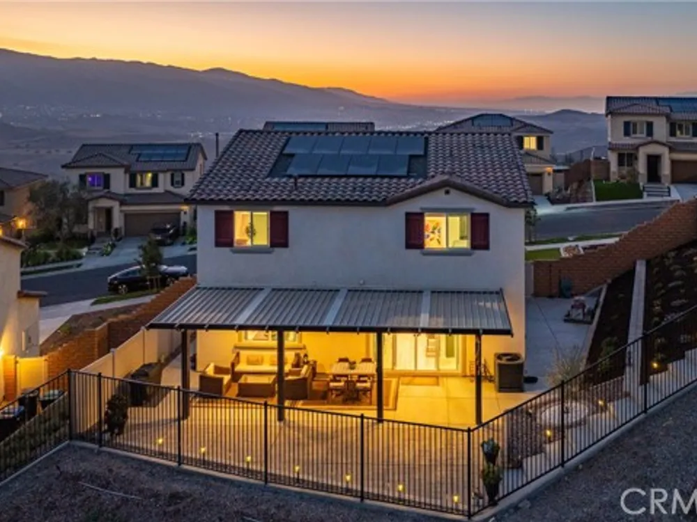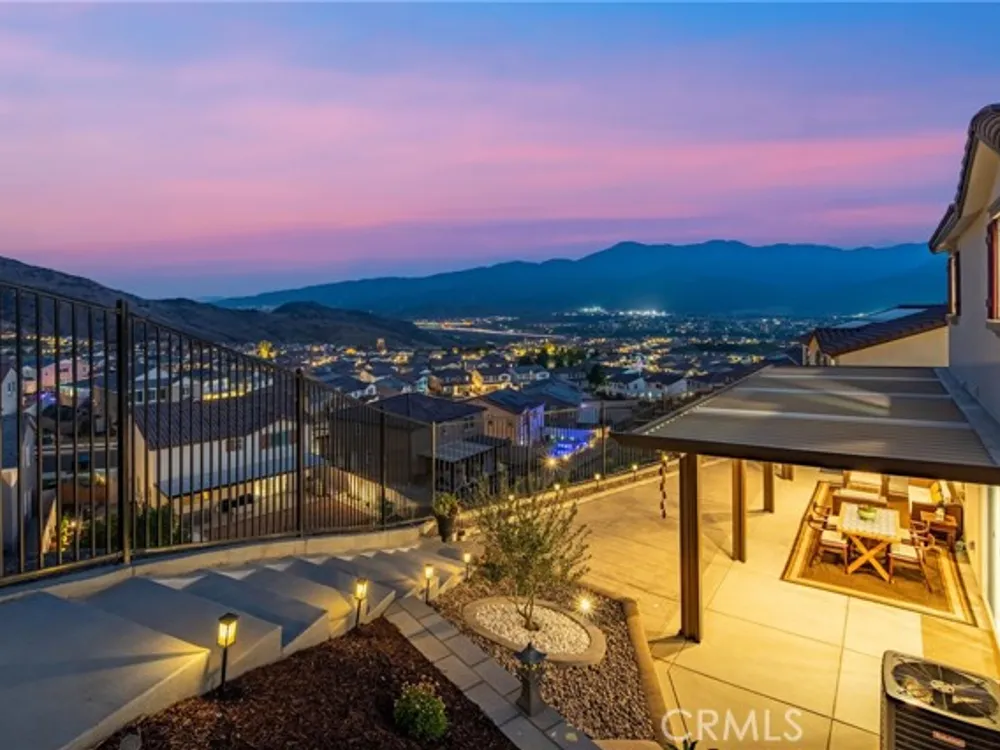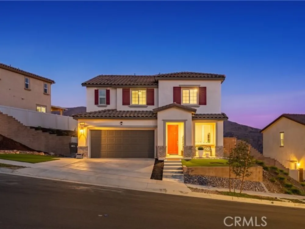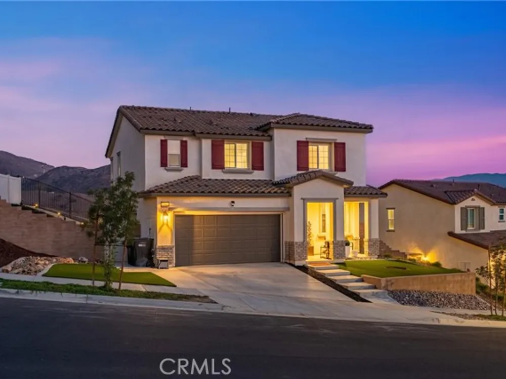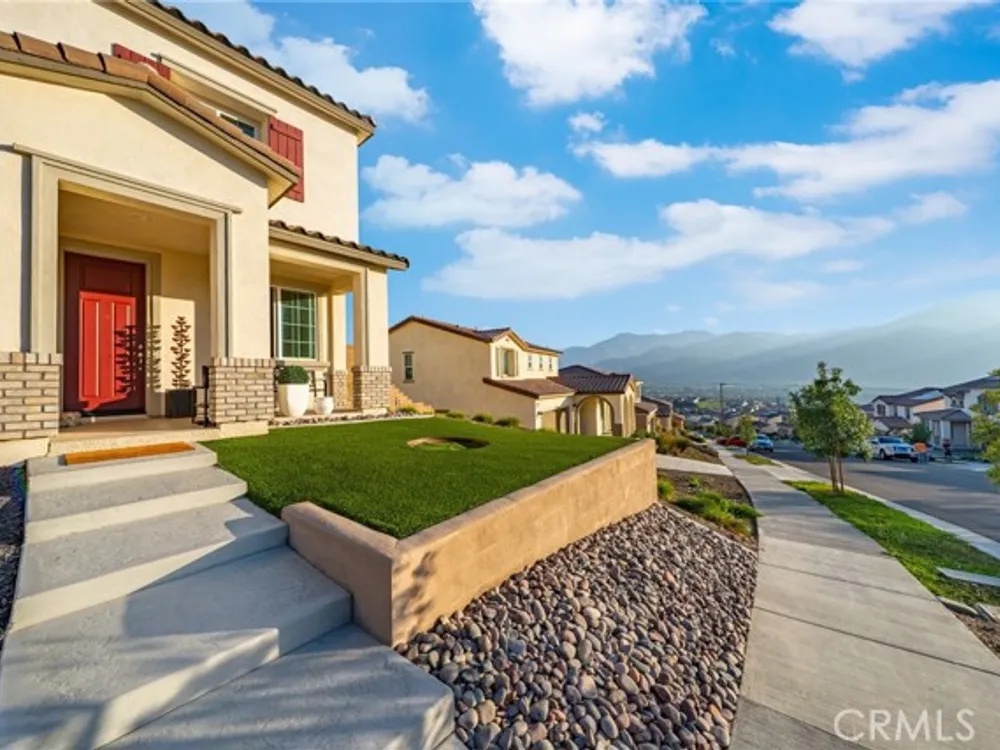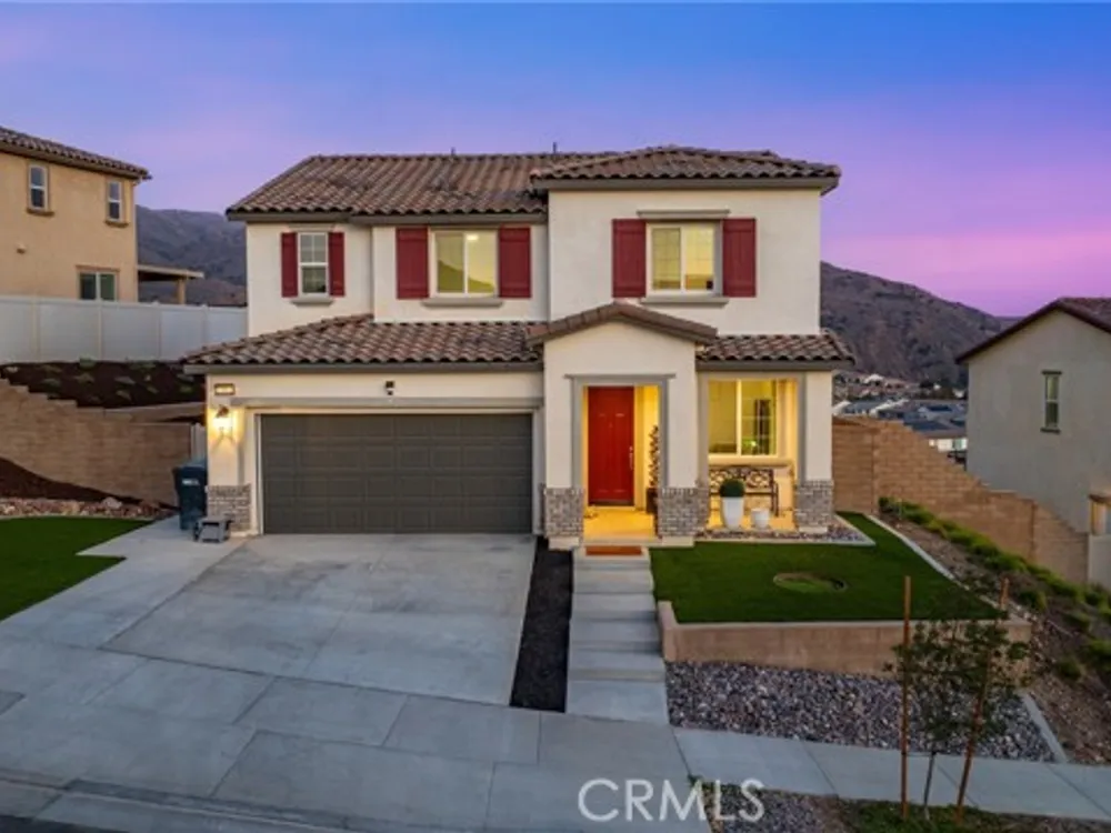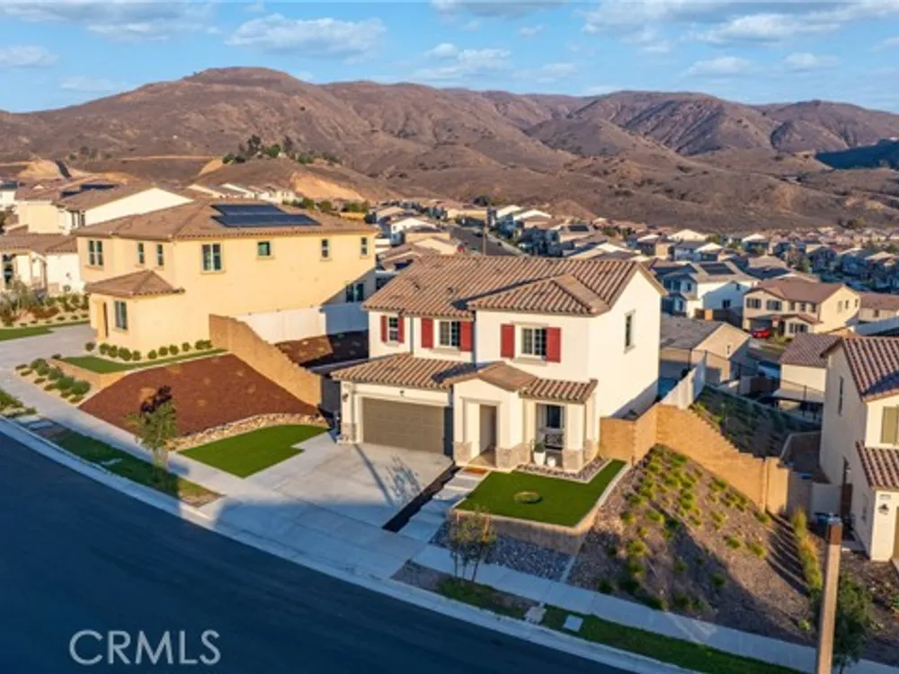 BETTER THAN MODEL HOME,ONLY ONE YEAR NEW!!! Located in a prestigious gated community with breathtaking city and mountain views, this stunning home sits on a premium view lot. The owners spent over $60,000 creating a professionally landscaped front and backyard filled with vibrant flowers, lush plants, and decorative mulch, plus epoxy-coated flooring on both the garage and front porch. The spacious side yard offers extra outdoor living space with open scenic views. Inside features an elegant study off the entry, a spacious great room, and a gourmet kitchen with maple cabinets, quartz countertops, a large center island, walk-in pantry, and adjacent dining area. Upstairs includes a cozy loft with beautiful view, an exceptional primary suite with additional windows, a generous walk-in closet, and a private bath, along with two secondary bedrooms each with their own walk-in closets, and a shared hall bath. The laundry room is conveniently located upstairs with sink pre-plumbing. Every room features ceiling fans, and the home has been meticulously maintained in spotless condition. Residents enjoy a resort-style clubhouse with pool, spa, BBQ area, fire pit lounge, and dining/entertainment spaces. Close to Orange County and within a top-rated school district, this home perfectly combines