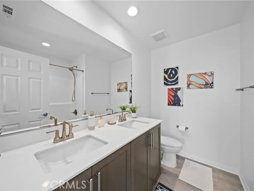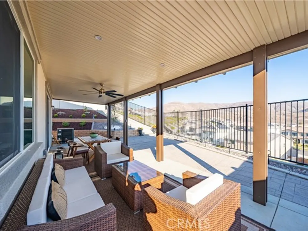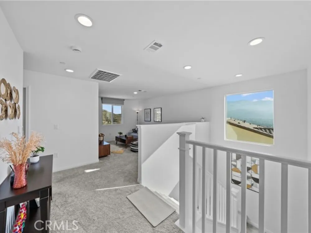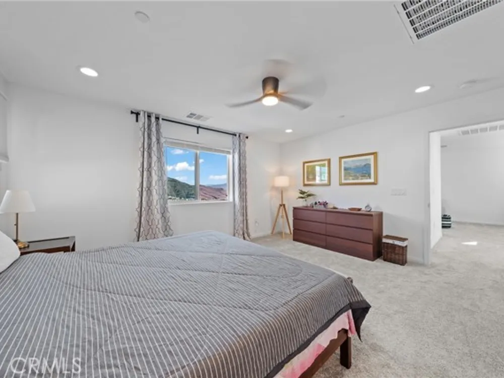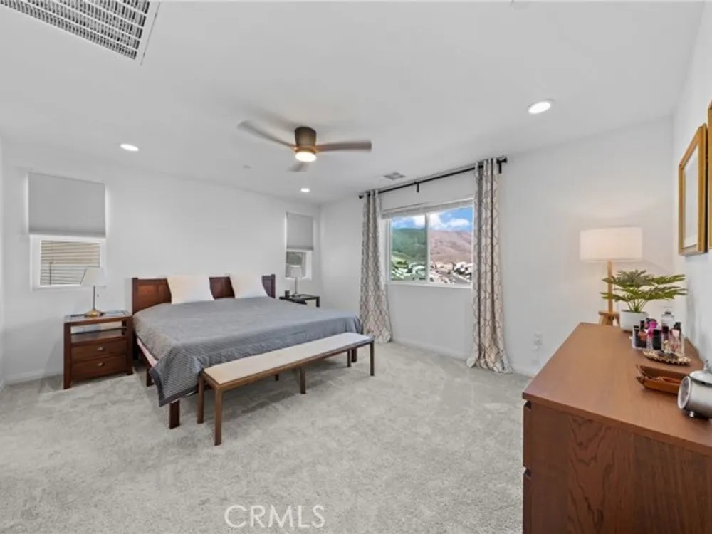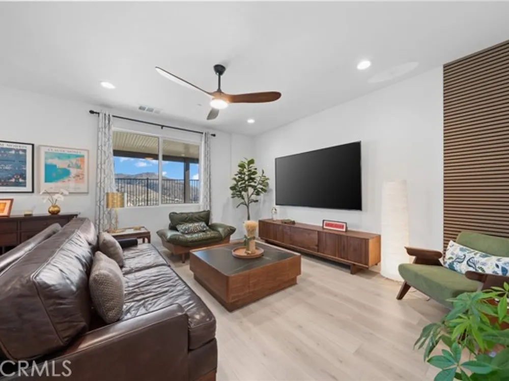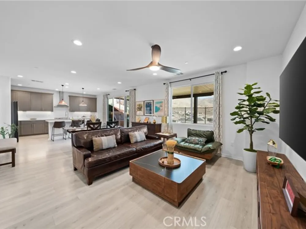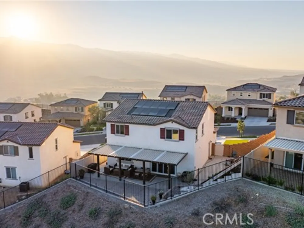 BETTER THAN MODEL HOME,ONLY ONE YEAR NEW!!! Located in a prestigious gated community with breathtaking city and mountain views, this stunning home sits on a premium view lot. The owners spent over $60,000 creating a professionally landscaped front and backyard filled with vibrant flowers, lush plants, and decorative mulch, plus epoxy-coated flooring on both the garage and front porch. The spacious side yard offers extra outdoor living space with open scenic views. Inside features an elegant study off the entry, a spacious great room, and a gourmet kitchen with maple cabinets, quartz countertops, a large center island, walk-in pantry, and adjacent dining area. Upstairs includes a cozy loft with beautiful view, an exceptional primary suite with additional windows, a generous walk-in closet, and a private bath, along with two secondary bedrooms each with their own walk-in closets, and a shared hall bath. The laundry room is conveniently located upstairs with sink pre-plumbing. Every room features ceiling fans, and the home has been meticulously maintained in spotless condition. Residents enjoy a resort-style clubhouse with pool, spa, BBQ area, fire pit lounge, and dining/entertainment spaces. Close to Orange County and within a top-rated school district, this home perfectly combines