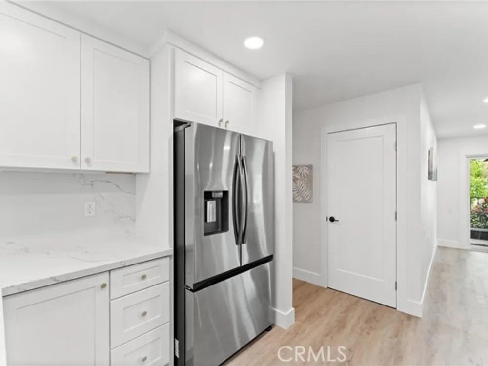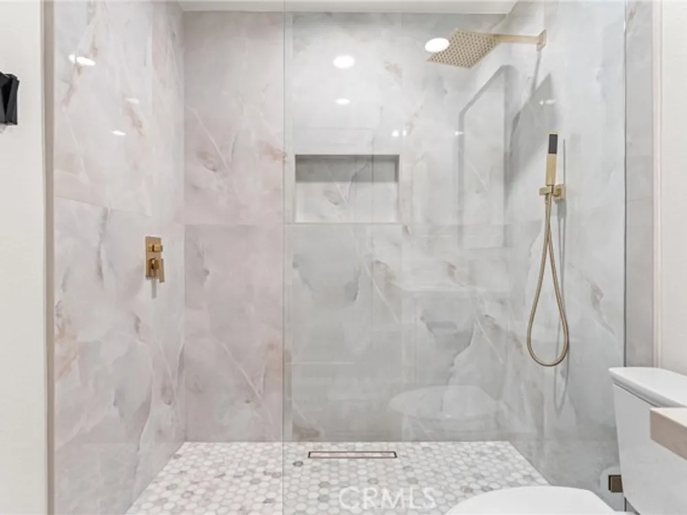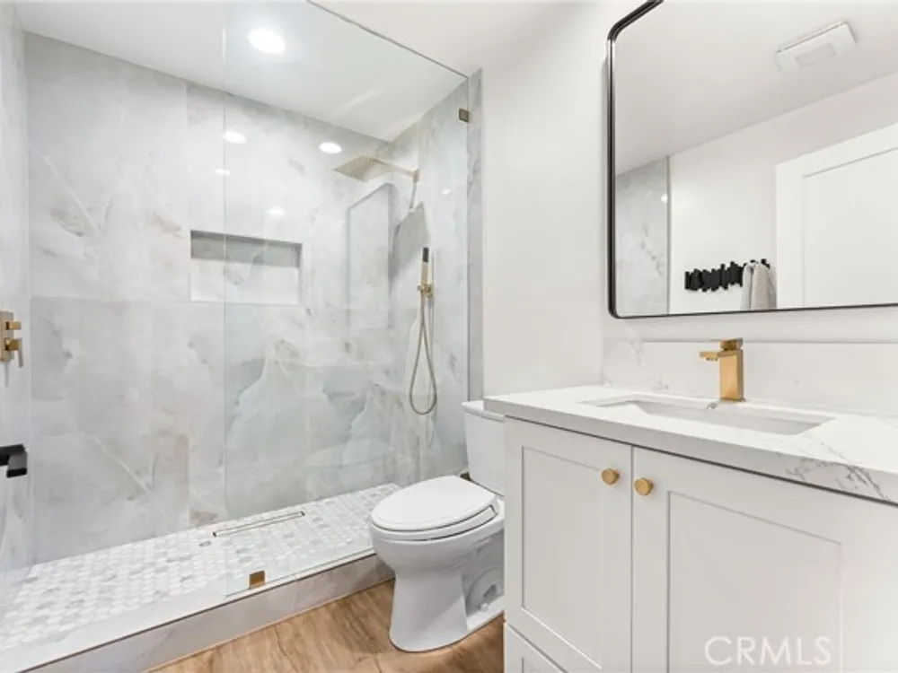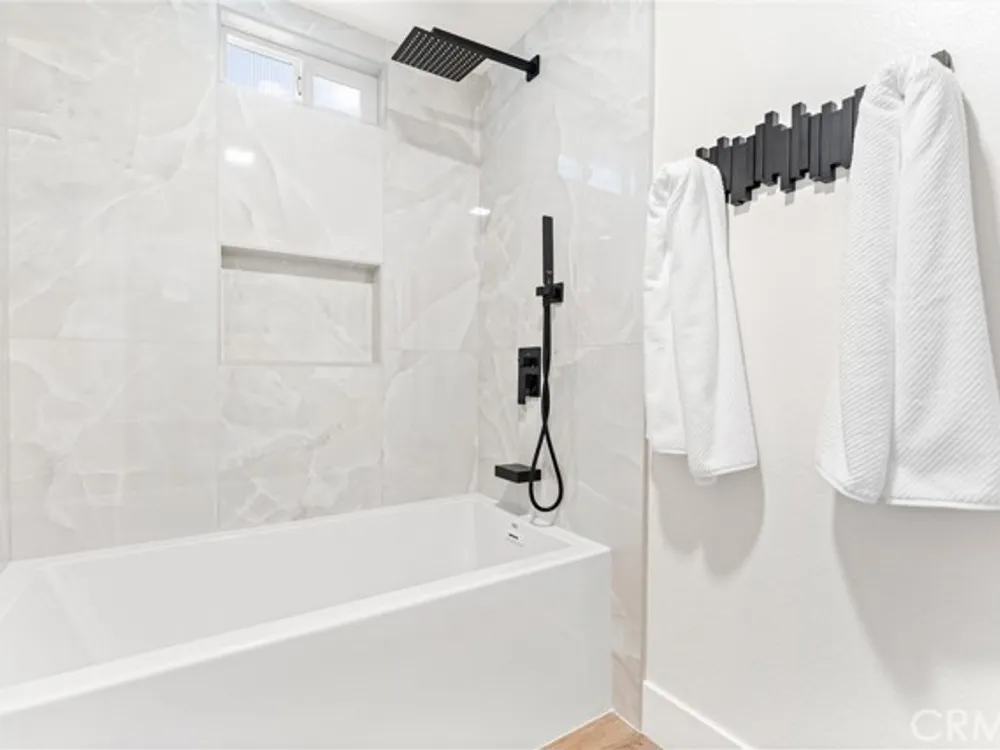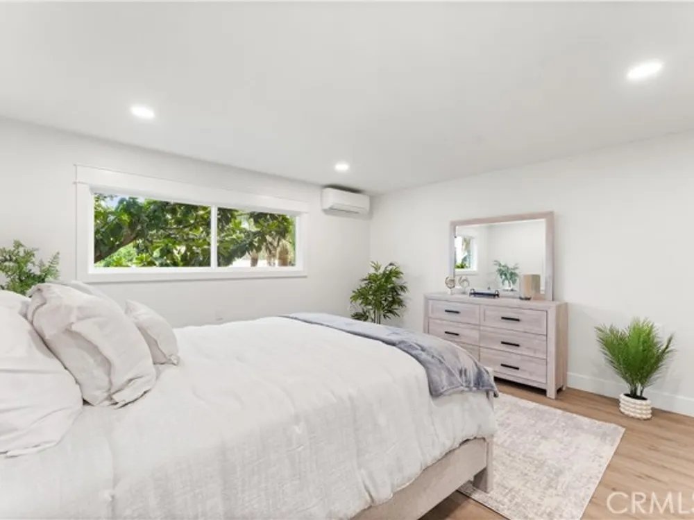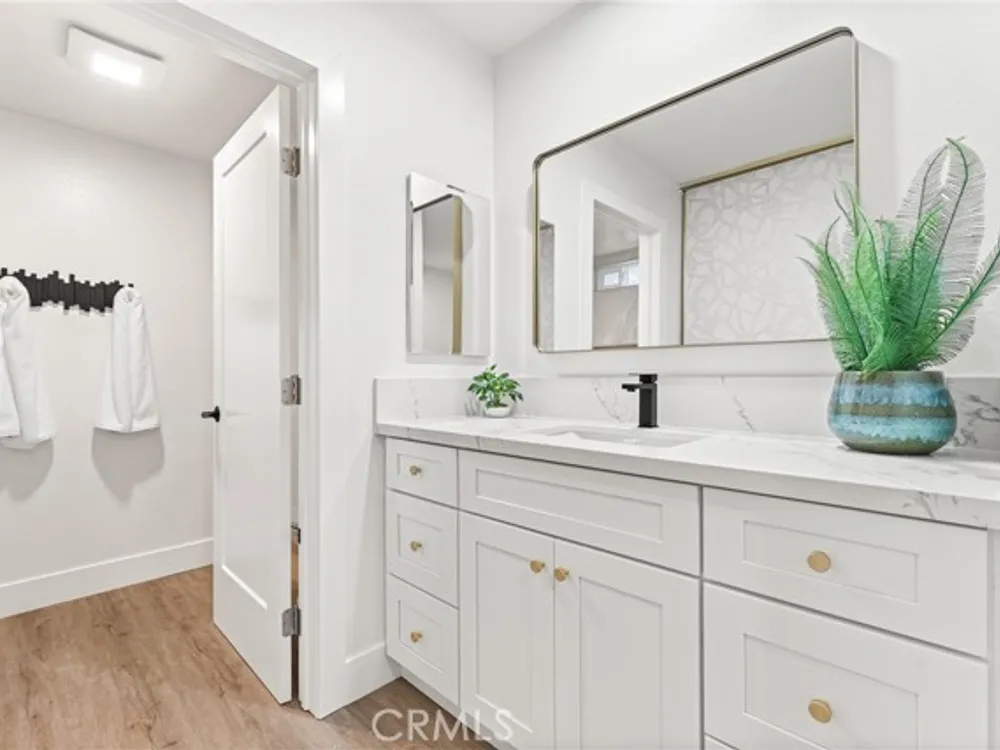 Experience luxury and comfort in this fully remodeled 2BD/2BA, 1,199 sq ft Garden Villa condo in the heart of Laguna Woods Village! Located in a Tri-level building with elevator access and subterranean parking, this single-level unit features a modern split-bedroom layout, each with its own new mini-split HVAC system. The designer kitchen impresses with quartz countertops, waterfall island, full quartz backsplash, custom soft-close shaker cabinets, under-cabinet and recessed lighting, and bespoke Samsung stainless appliances. Enjoy tranquil mountain and magnolia tree views from the private balcony or through brand-new Milgard windows and doors. Bathrooms include a spa-like walk-in shower and a luxurious Jacuzzi soaking tub—plus upgraded vanities and Toto toilets. Additional highlights: luxury vinyl plank flooring throughout, smooth ceilings, new Bradford White water heater, and fully permitted upgrades. Steps from Clubhouse 4 with world-class amenities. Resort-style 55+ living!