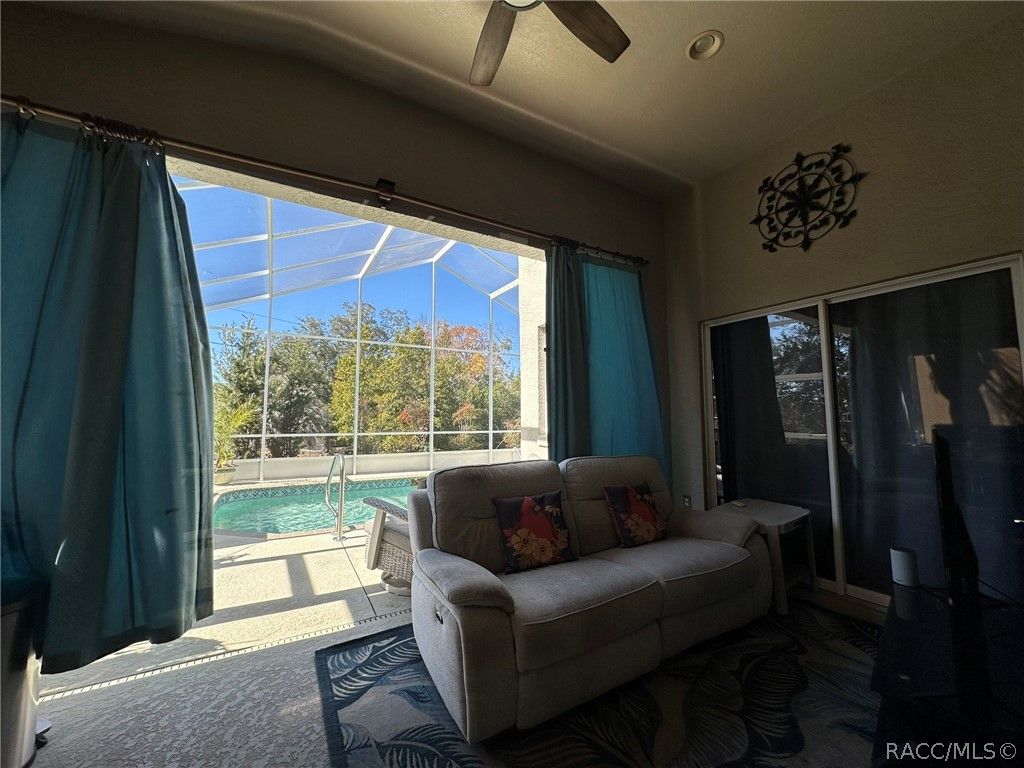 Florida Living at its best! As you enter this 3 bedroom 2 bath pool home you are welcomed by an inviting open floor plan with oversize ceramic tile and soaring ceilings. From the living area you can see the pool and the tropical paradise that awaits. There is full view sliding door that enters into a covered extended outdoor lanai for shade and a completely screened pool if you are looking to get some sun. The kitchen has beautiful cabinetry and a deep double bowl sink. The bathrooms are spacious and modern. This home is located in BRENTWOOD OF CITRUS HILLS and comes with full membership amenities, including the luxurious Skyview restaurant, tiki-bar, gyms, tennis courts, olympic size pool, sauna and much more. Call today!