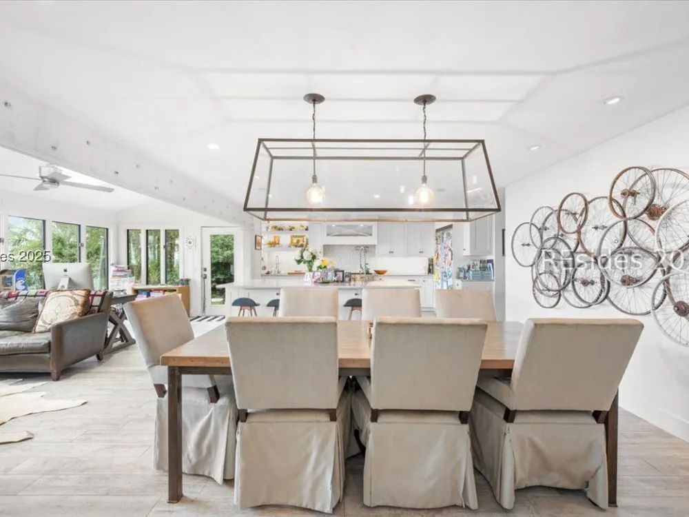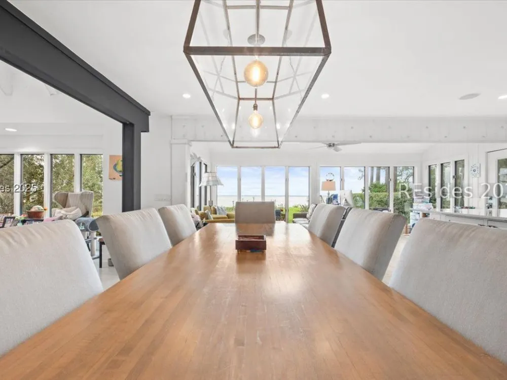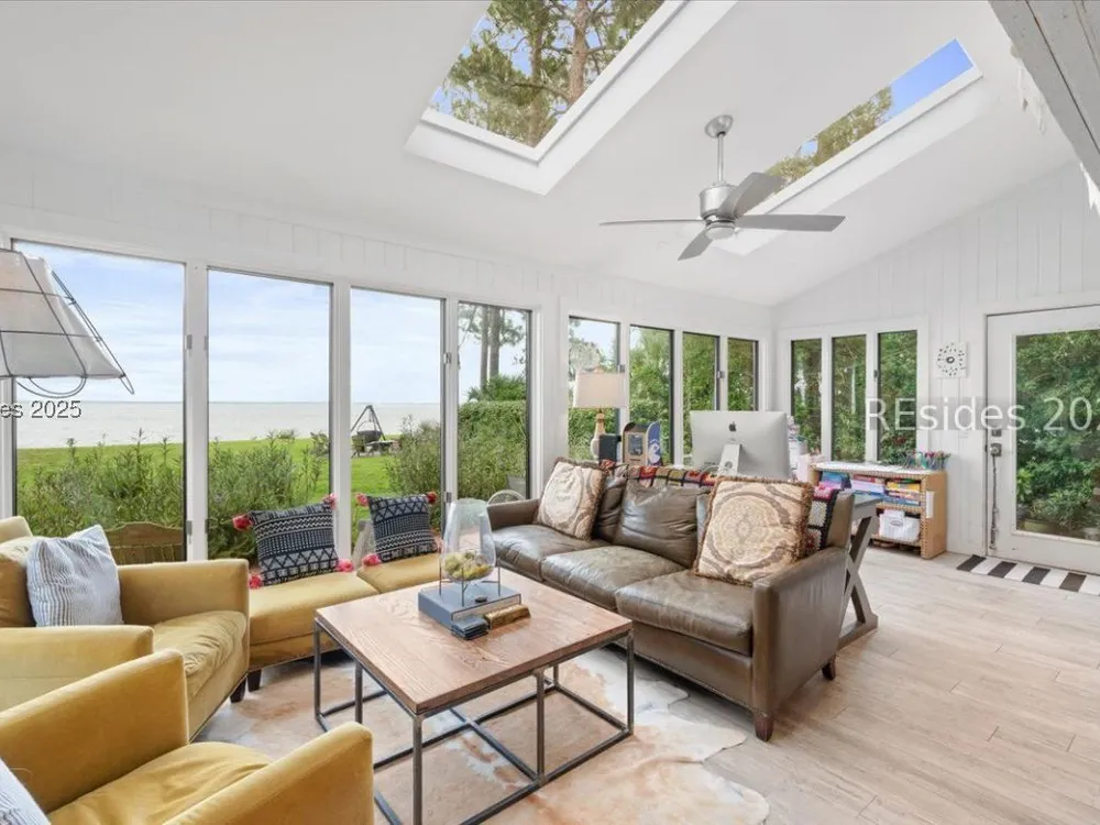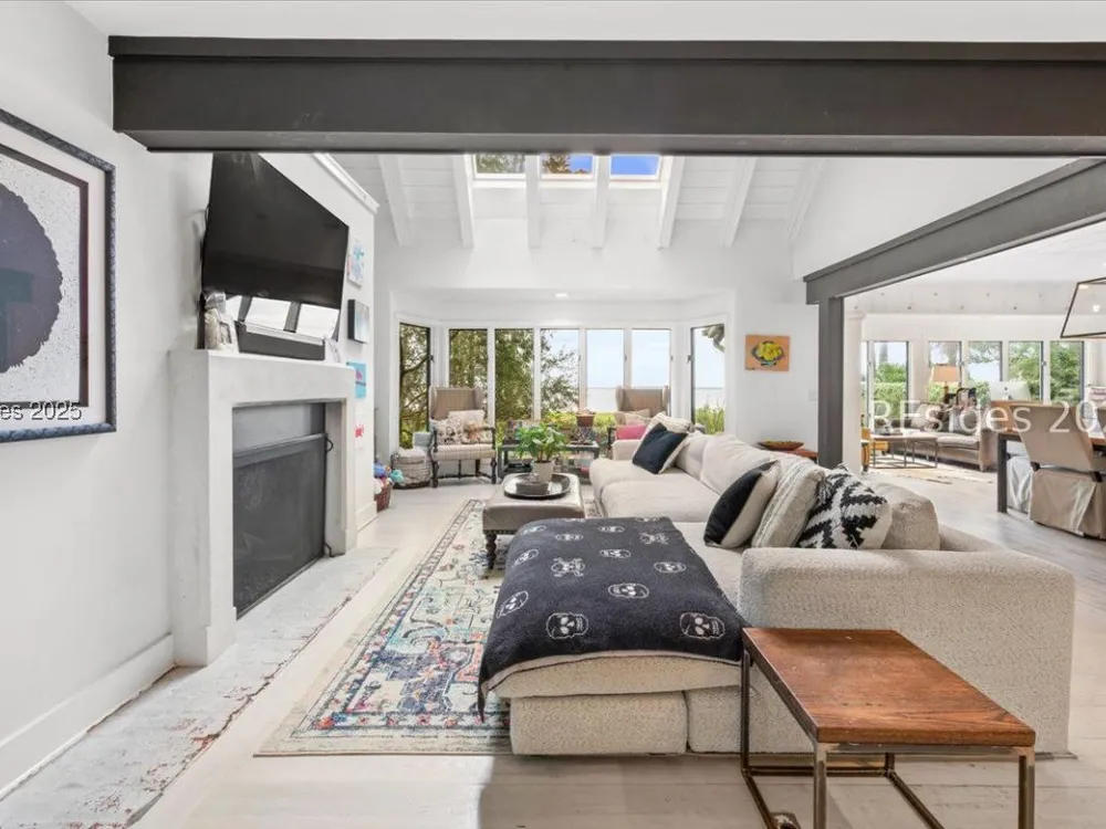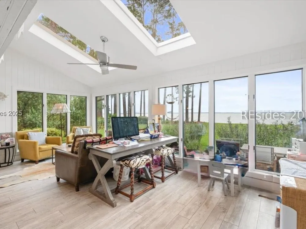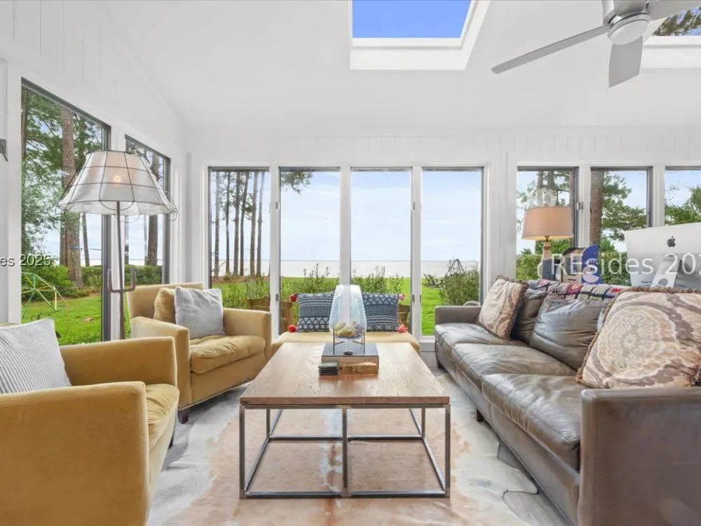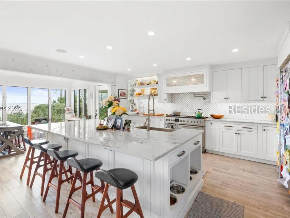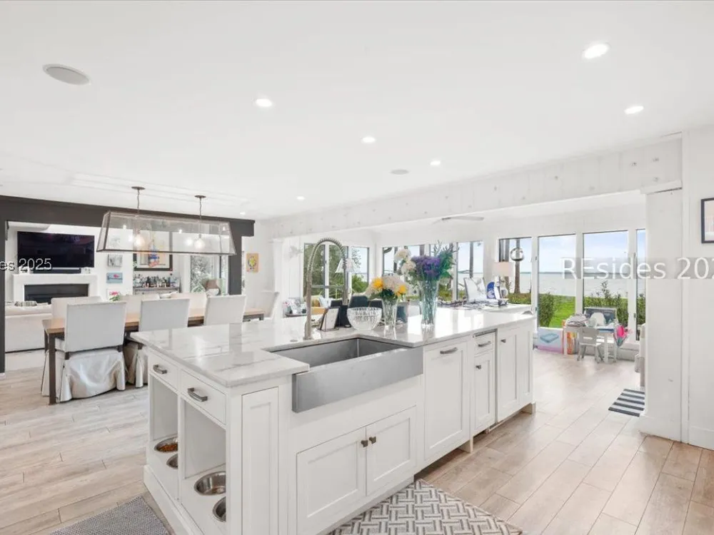 Coastal living at its finest! This rare 4Bd/3.5Ba home offers stunning Port Royal Sound views and a spacious open floor plan with soaring ceilings, wood floors, custom cabinets, and built-ins. The chef’s kitchen boasts European quartz countertops, a large island with double sinks, high-end appliances, and designer lighting. Enjoy a cozy fireplace, wine cellar, ample storage, and a large yard. Steps from the bluff trail leading to Dolphin Head Beach—your waterfront dream awaits!