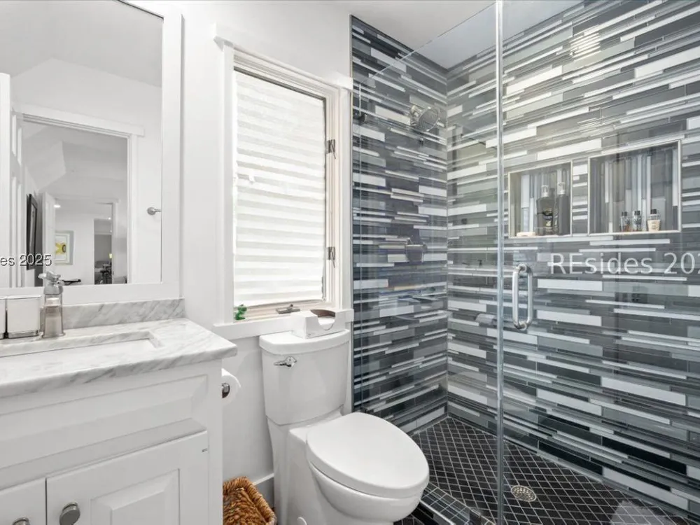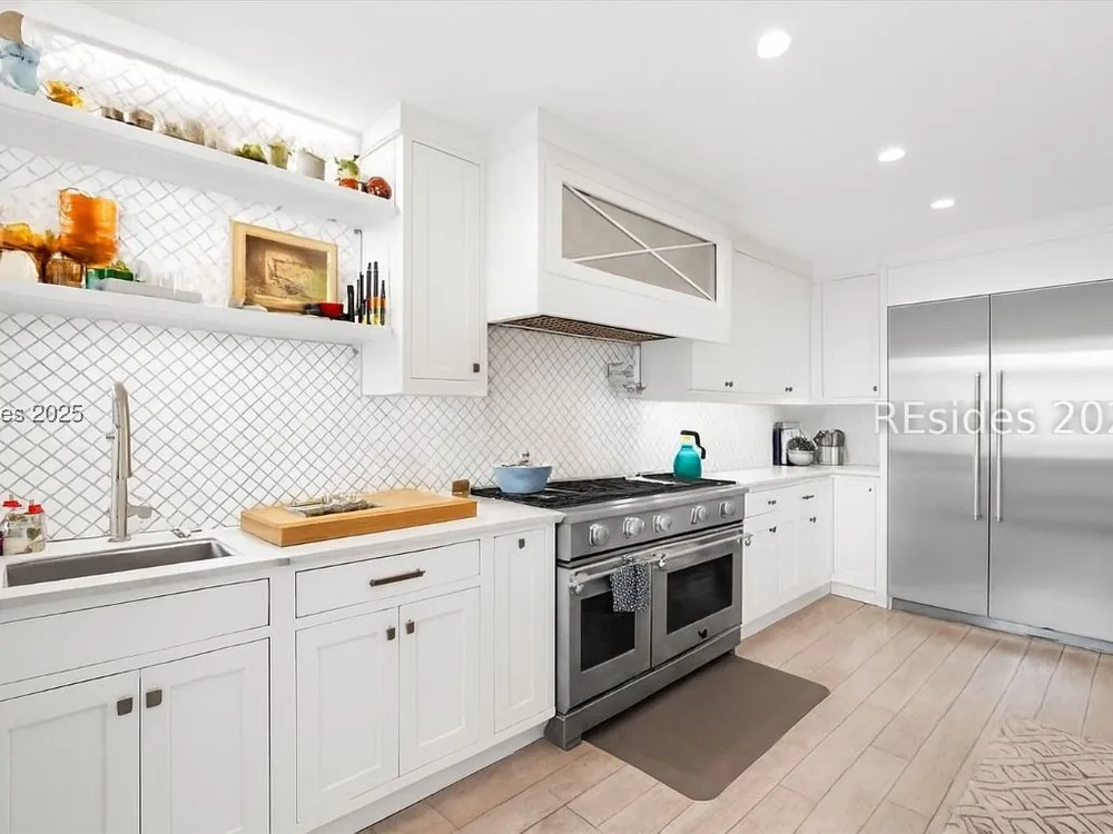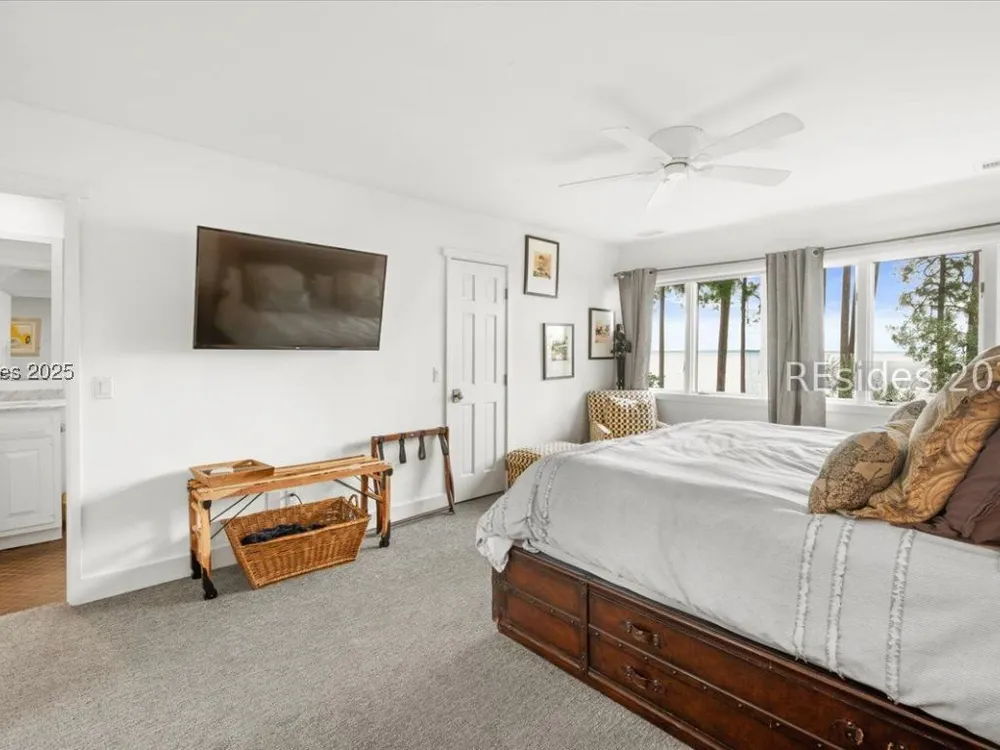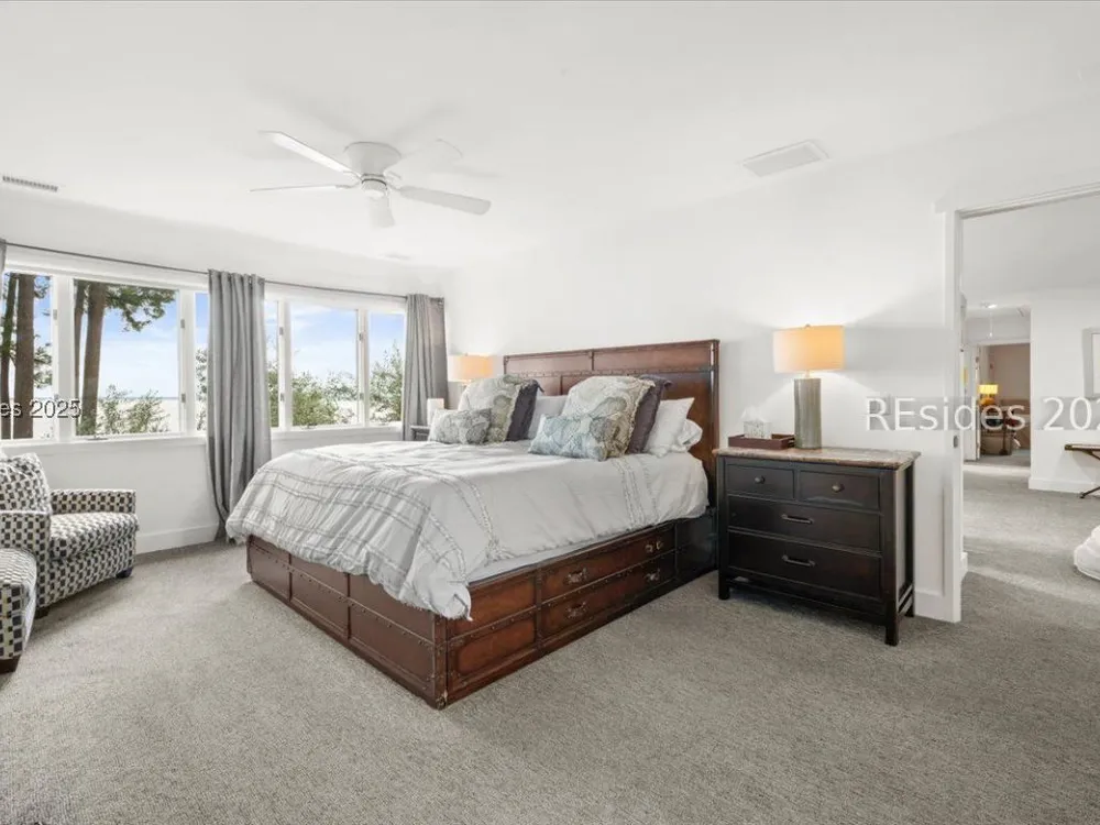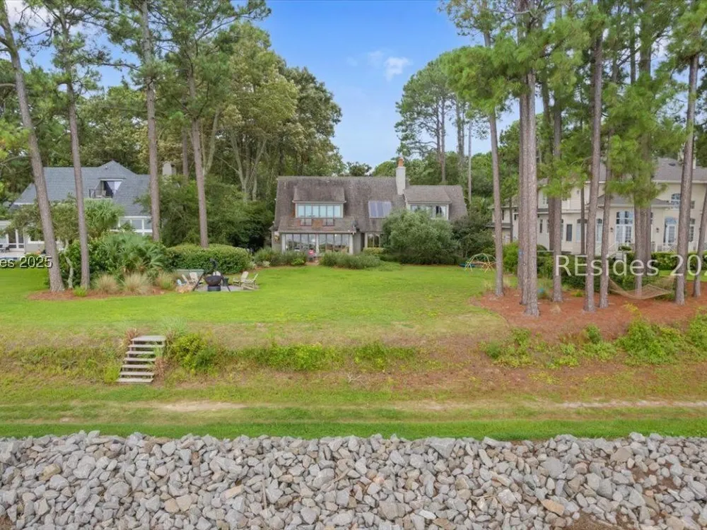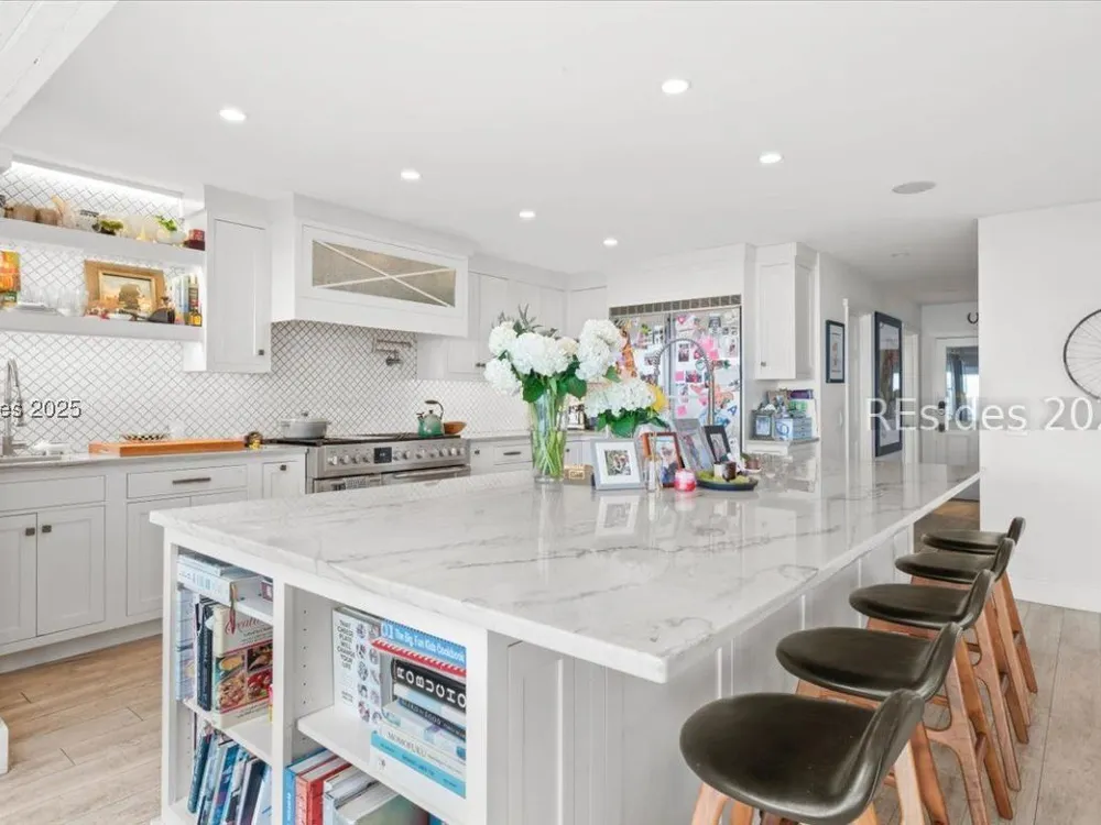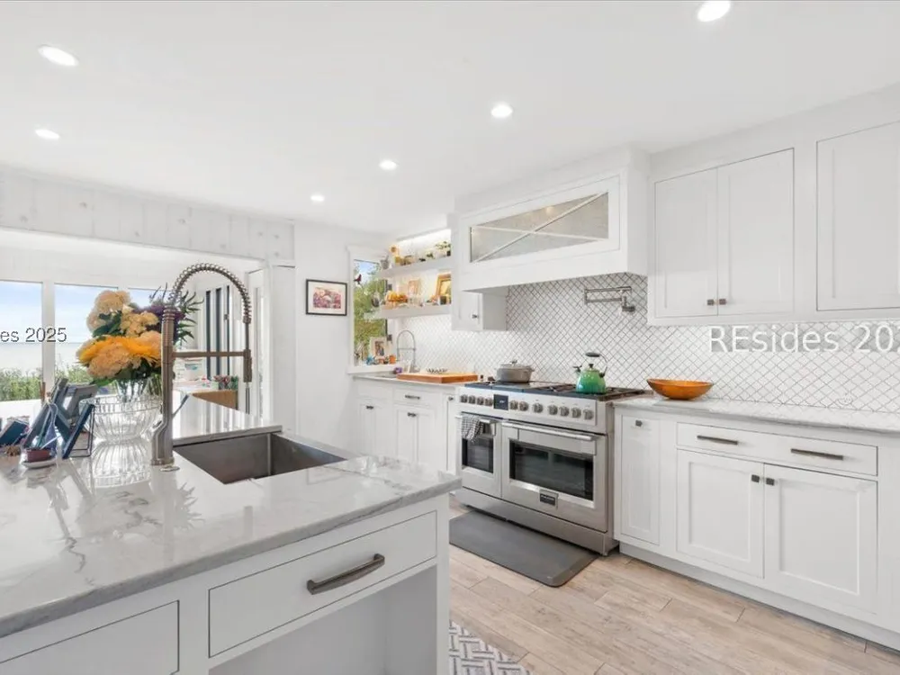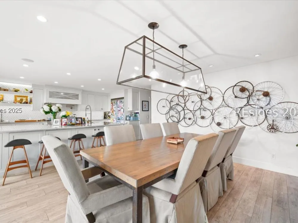 Coastal living at its finest! This rare 4Bd/3.5Ba home offers stunning Port Royal Sound views and a spacious open floor plan with soaring ceilings, wood floors, custom cabinets, and built-ins. The chef’s kitchen boasts European quartz countertops, a large island with double sinks, high-end appliances, and designer lighting. Enjoy a cozy fireplace, wine cellar, ample storage, and a large yard. Steps from the bluff trail leading to Dolphin Head Beach—your waterfront dream awaits!