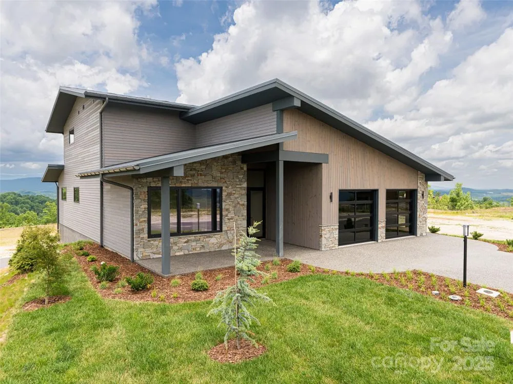 Special Parade of Homes Pricing! Protect your privacy with this double lot option! Located in the new exclusive mountaintop enclave of Summit Vista at Carriage Park, this recently completed mountain modern home was designed for seamless lock-and-go living. Offering unmatched views of the surrounding Blue Ridge Mountains yet situated on one of the flattest sections of the community, it is designed for ultimate comfort and accessibility. Luxurious detailing includes vaulted ceilings, white oak floors, modern lighting, and a fabulous, chef-inspired kitchen with polished quartzite countertops, custom cabinets, high-end appliances, plus a back kitchen with a large walk-in pantry. The easy open floor plan features high-performance Oknoplast windows and a beautiful exposed aggregate patio to enjoy the stunning views all year round. Only 7 minutes from Historic Downtown Hendersonville and just 9 miles to Asheville Airport, this is relaxed, mountain retreat living at its finest, where convenience meets sophistication.