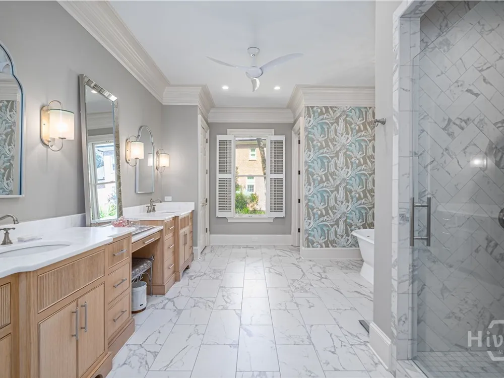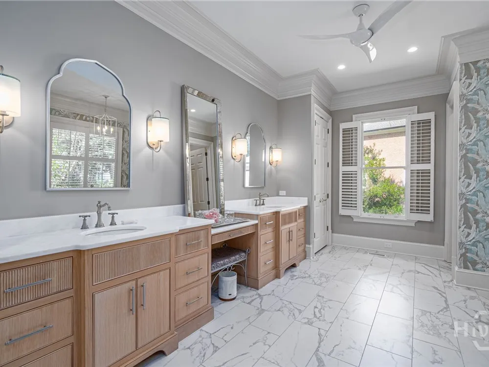 Show-stopping, turn-key home in The Landings’ prestigious Midpoint community offers the perfect blend of sophistication, comfort, and thoughtful updates—designed for everyday living and grand entertaining. Beautifully renovated including newer roof, newer HVAC systems, and a rare 3-car garage with golf cart bay. The main floor features soaring ceilings, a den with custom marble fireplace, formal dining, expansive living room with fireplace, and a brand-new chef’s kitchen with top of the line appliances and walk-in pantry. The primary suite offers a renovated spa bath, massive walk-in closet, and private laundry. A custom bar, two half baths (one with pool access),saltwater heated pool, and upgraded laundry complete the first level. Upstairs with rare ceiling height of 10' are four oversized bedrooms with walk-in closets, three full baths, and a spacious lounge area—perfect for guests or family. A true blend of elegance and comfort in one of The Landings’ most sought-after locations.