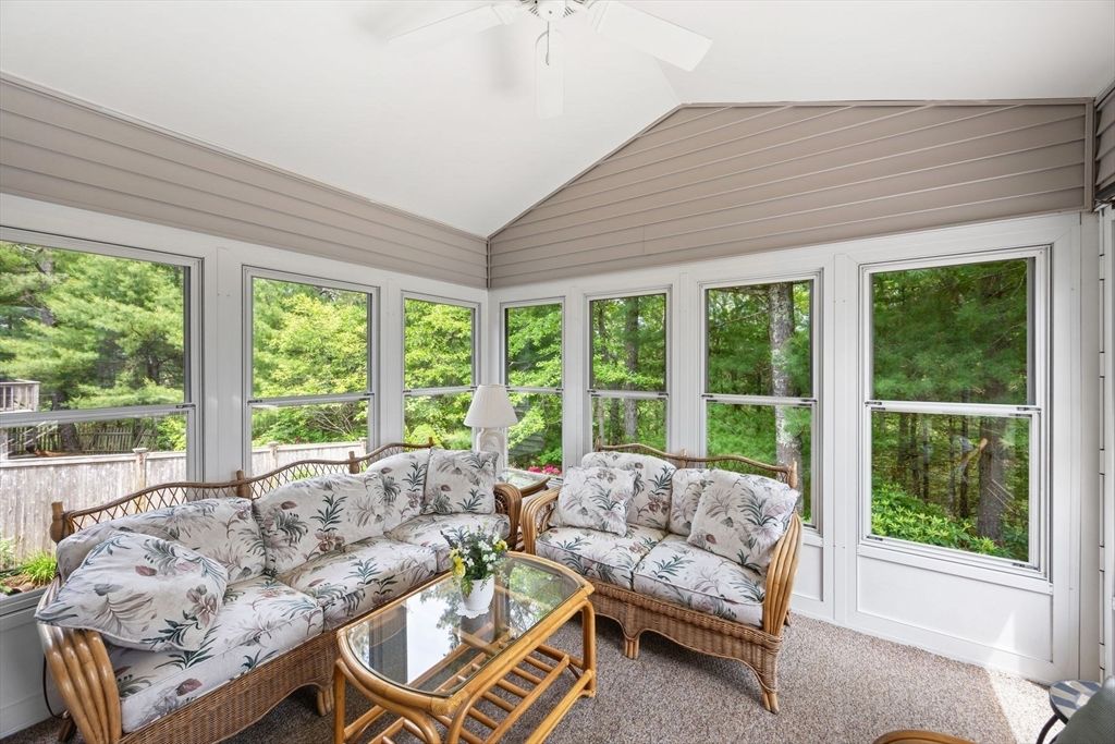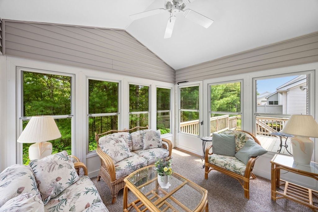 Lovely "Vanderbilt" home on a private wooded homesite in the 55+ Great Island Neighborhood in The Pinehills. This popular style home has a spacious formal living room and dining room, a large kitchen with an area to eat and a family room with a gas fireplace, an office and a laundry room. The primary suite is located on the main floor with a sizeable closet, primary bathroom and both a shower and a tub. There are two guest bedrooms and full baths also on the first floor. A three season room with a deck overlooks the private, level, wooded back and side yard. On the second floor is an amazing loft area and another guest bedroom and full bath. The amenities include an indoor pool and outdoor pool, tennis courts, pickle ball courts, an activity director, game rooms, function rooms and exercise rooms. Snow removal, lawn mowing and trash removal included in the HOA. What a wonderful way to live!