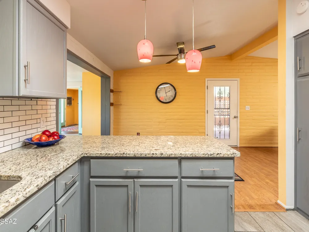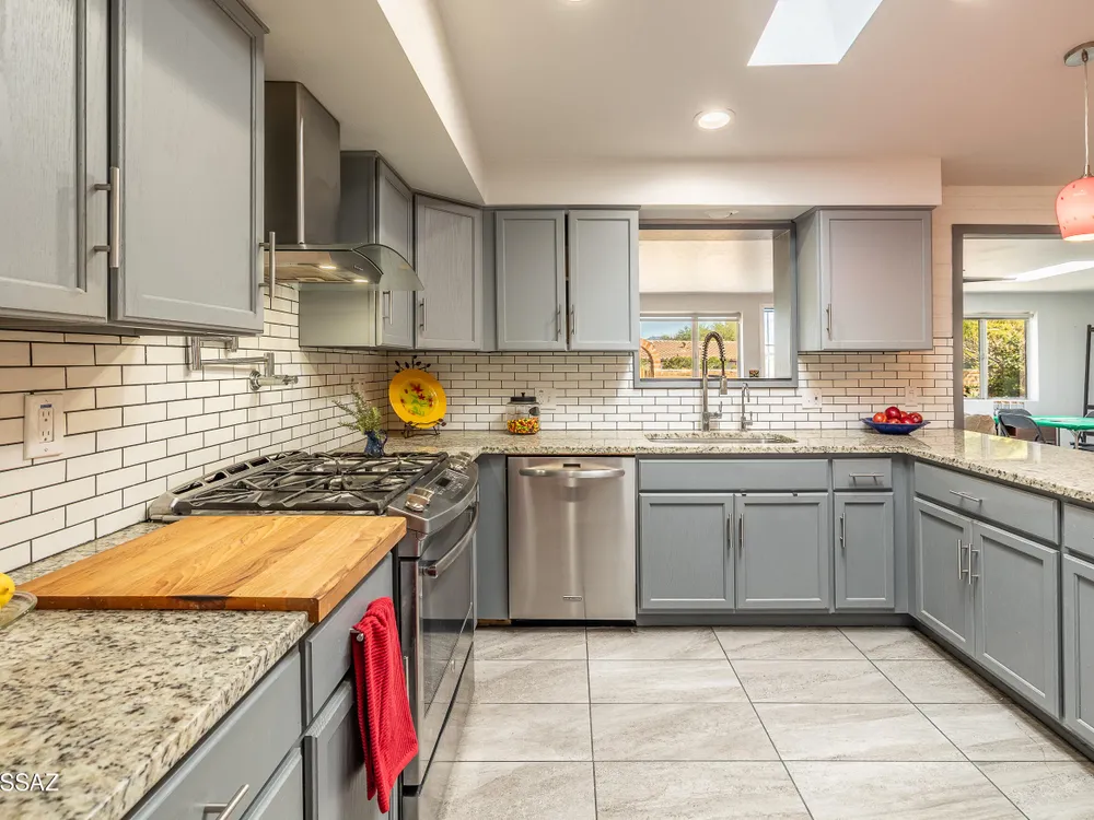 Your Desert Oasis with a Culinary Twist -Smart design, stunning views, and a backyard brimming with flavor! So many upgrades in this prime lot on a cul-de-sac with mountain views! Featuring chef's kitchen with pot-filler, commercial high arch pull-down faucet over an extra deep and long workstation sink. The gas range features a baker's convection oven and loads of counter space. Both bathrooms have been upgraded for a spa like feel. With an Arizona room with lounging and gaming areas, a studio/hobby room, a workshop, an office or 3rd Bedroom, and even a potting shed with extra storage..what more could you ask for? You'll kick yourself if you miss out on this amazing home in this great neighborhood.