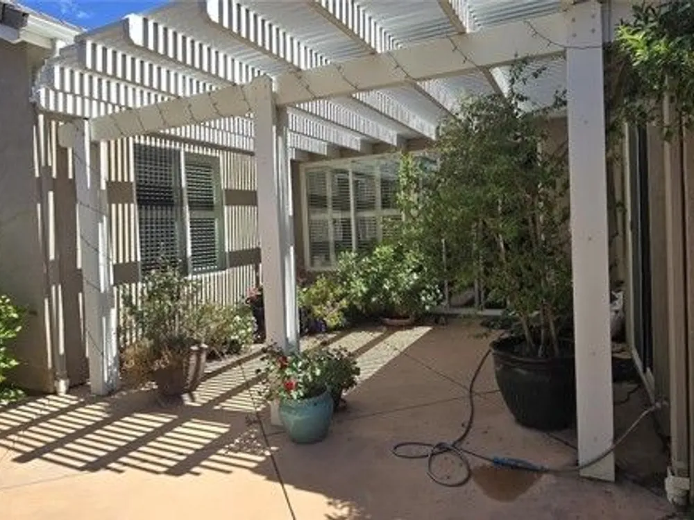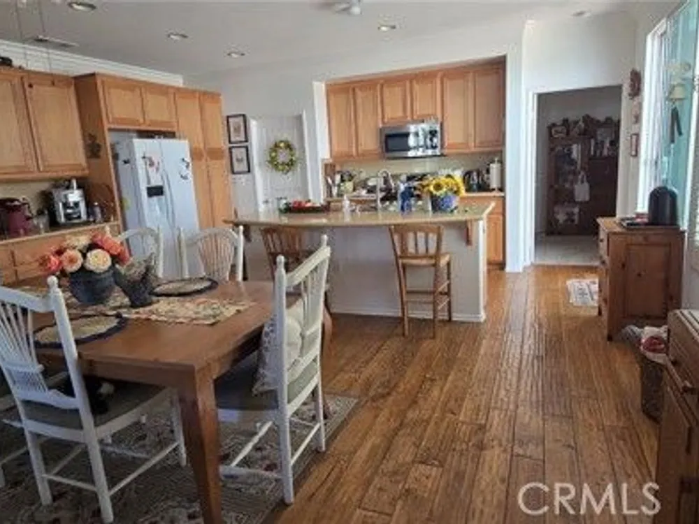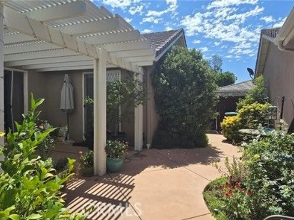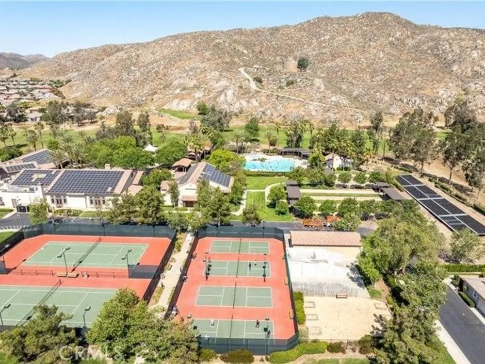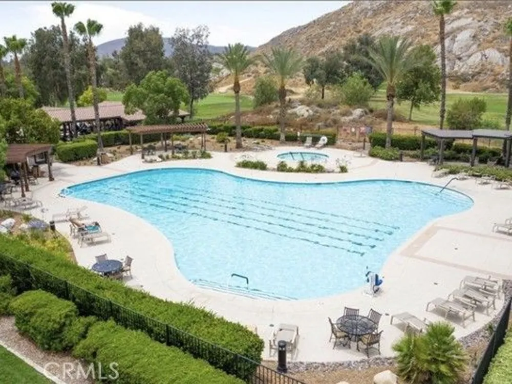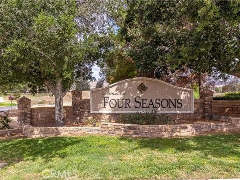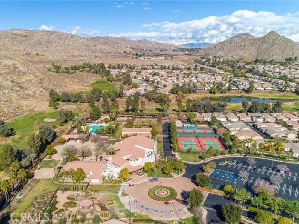 Welcome to the fabulous 55+ Four Seasons Hemet — a guard-gated golf course community offering resort-style living! Whether or not you golf, the beautifully landscaped fairways and mature trees create a serene and picturesque environment. This light and bright 3-bedroom, 2-bath home features 1,547 sq. ft. of thoughtfully designed living space. Enjoy stunning wood floors, plantation shutters, crown molding, surround sound, five ceiling fans, and a separate laundry room. The two-patio layout is ideal for indoor/outdoor living, and the private, landscaped backyard with patio cover is perfect for BBQs and entertaining. Clear termite and roof reports — this home is truly move-in ready! Residents enjoy access to the impressive 20,000 sq. ft. Lodge featuring a restaurant, ballroom, fitness and exercise rooms, beauty salon, movie theater, billiards, computer center, library, and game/craft rooms. Outdoor amenities include a half-size Olympic pool, spa, pickleball, bocce ball, shuffleboard, tennis courts, biking/walking paths, and more. Conveniently located near Temecula Wine Country, Diamond Valley Lake, and just a short drive to Palm Springs, San Diego, and Los Angeles. Don’t miss this opportunity to live the Four Seasons lifestyle!
