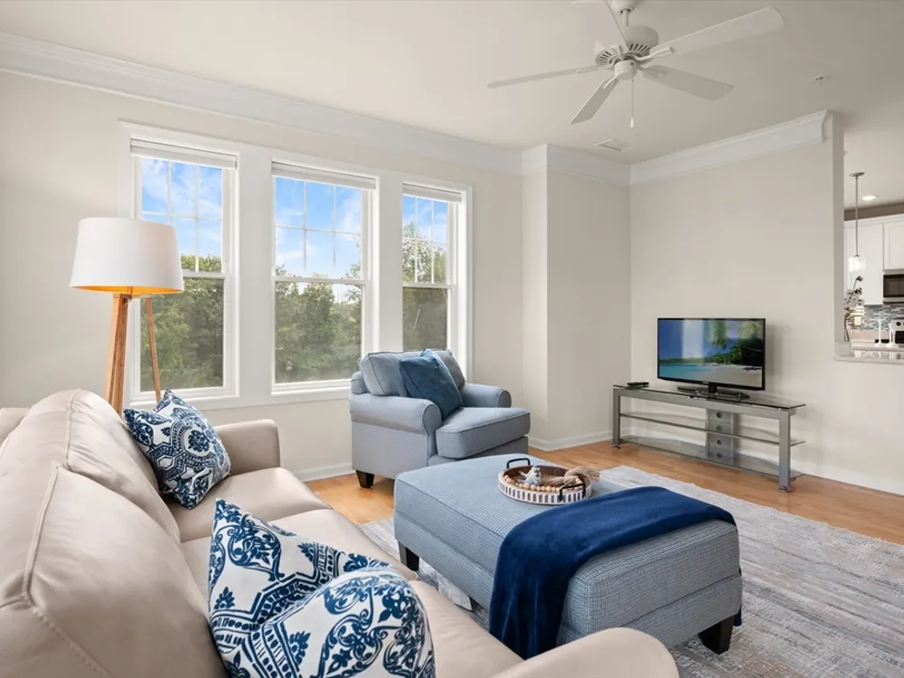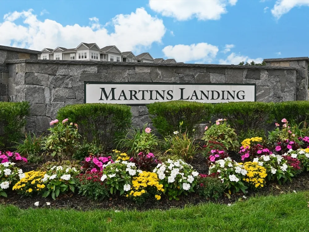 GORGEOUS EAST FACING CORNER UNIT! This beautiful resale is better than new! MORE WINDOWS and 2 car garage parking makes this unit more valuable! The main bedroom has a walk-in closet and large bathroom double sinks and step in shower stall. Second bedroom can accommodate an office plus room for a guest bed. THE ATTRACTION: OPEN CONCEPT KITCHEN, LIVING AND DINING AREA! The corner unit provides multiple windows plus a door to a private covered deck for your enjoyment. This floor plan has beautiful hardwood floors and wainscoting (which is a beautiful upgrade) The kitchen offers both an island and a breakfast bar, a pantry for the extras plus tons of cabinets. CLEAN and in move in condition! Martins Landing is an active 55+ adult community that has walking trails, a clubhouse, exercise room and is professionally managed. Private showings are available anytime! Quick close is possible!
