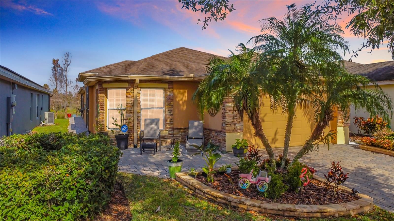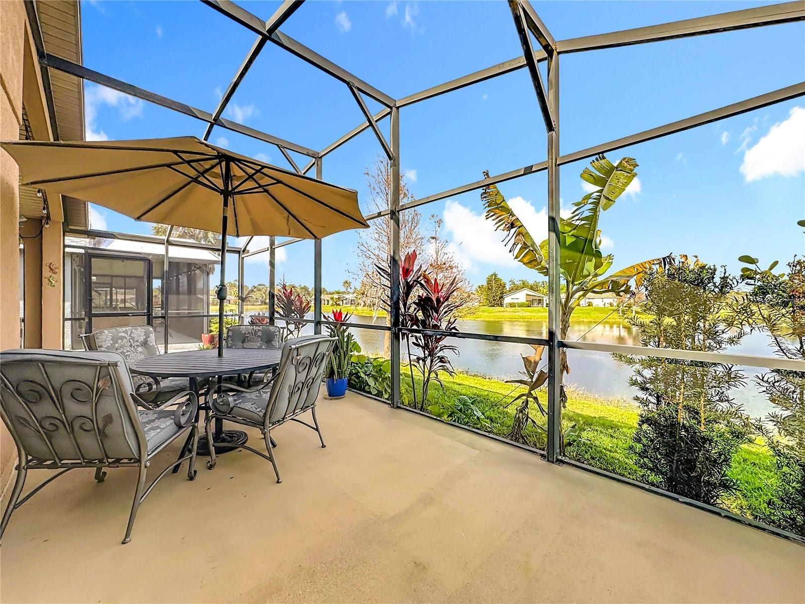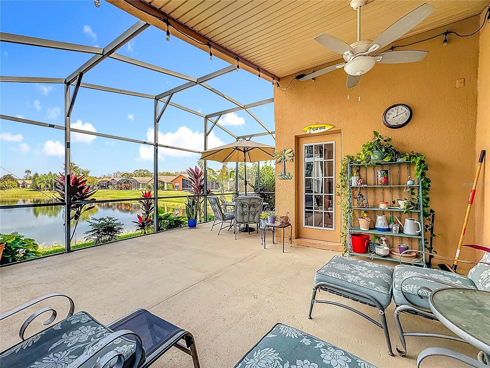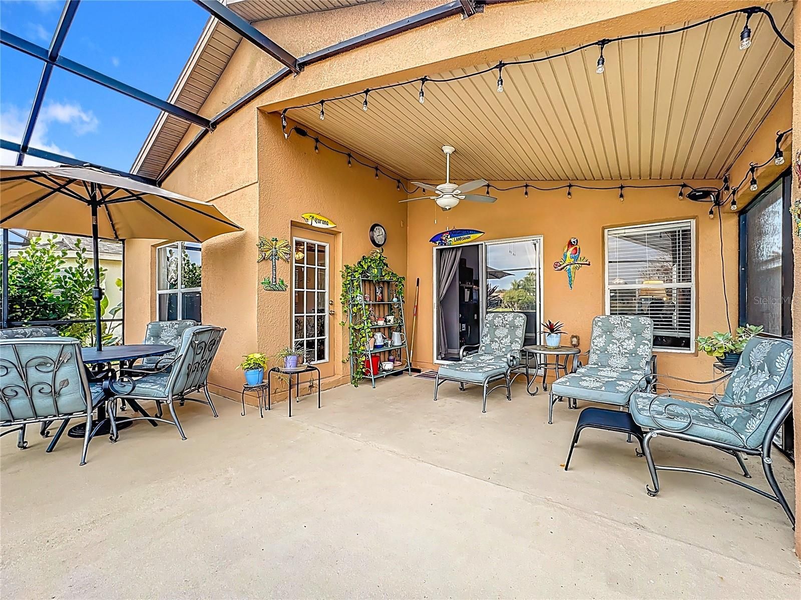Open concept FURNISHED stone front Bordeaux model has vaulted ceilings with a sweeping waterfront view which gives the ambiance you are looking for in a Florida home. The Great Room & adjoining Dining Room allow you to entertain on the over 500 Sq.Ft. covered & open screened lanai. A Primary Suite with views to the water is a king-sized room with adjoining bathroom that has a shower with two seats, dual closets, large vanity & private access to lanai. The second bedroom & adjacent bath with shower & tub is perfect for guests. The den is a multipurpose room that can function as an extra bedroom, office or media room. This home also has a custom front 15.5 x 13.5 stone patio making entertaining anywhere in this home easy & fun! The large kitchen & dinette area is perfect for 2 chefs & has stainless steel appliances with plenty of counter space. An inside laundry with access to the garage that fits a full-sized car & golf cart as well as a workshop features epoxy flooring, pulldown stairs & beverage refrigerator. The home features a 2023 HVAC, 2015 HWH & 2016 Roof. Solivita is an active adult 55+ community located in Poinciana, Florida. It is approximately 50 minutes from Disney World & Orlando International Airport. Solivita has a total of 5,470 homes. Enjoy your active years in this paradise. Solivita's amenities include a softball diamond & field - 36 holes of championship golf that can be played by joining the Stonegate Golf Club or paying as you go - 2 State of the Art Amenity Centers with updated exercise equipment, yoga studio & meeting rooms - 3 restaurants - 14 heated pools - 17 pickleball courts - 9 tennis courts - 4 bocce ball courts - 4 shuffleboard courts - 3 horseshoe pits - a billiards room - miles of bike paths - 2 dog parks (Small & Large Dogs) - Corn Hole - Tot Lot playground – community garden - over 250 resident clubs. The HOA: - maintains the LANDSCAPING & IRRIGATION systems in the common areas as well as at individual homesites - maintains the roads throughout the community - PROVIDES SECURITY with gate guards and mobile patrols including the Polk County Sheriff - allows AUTOMATED GATE ACCESS for residents via license plate readers - provides residents with Fiber Optic Internet & TV service. Poinciana Lakes Plaza is a new shopping center directly across from the Solivita Main Gate. It features Sprouts Grocery, TJ MAXX, Ross, Burlington, Rack Room Shoes, 5 Below, Ulta, Outback, First Watch, 5 Guys, Panda Express, Bojangles, Jersey Mike's Subs, 5 Guys, Papa John's Pizza, Burrito Bar, Cold Stone Creamery, Urgent Care, Dentist, Hand & Stone Massage, America's Best Eyeglasses, Crunch Fitness, Hair Cuttery, Petco, TD Bank, Verizon Mobile, PLUS MORE TO COME. A 2022 STAR Sirius 5 4-seater GOLF CART with a lithium battery is available for sale under separate contract. This home offers move in ready convenience, just pack your clothes & come to Solivita!