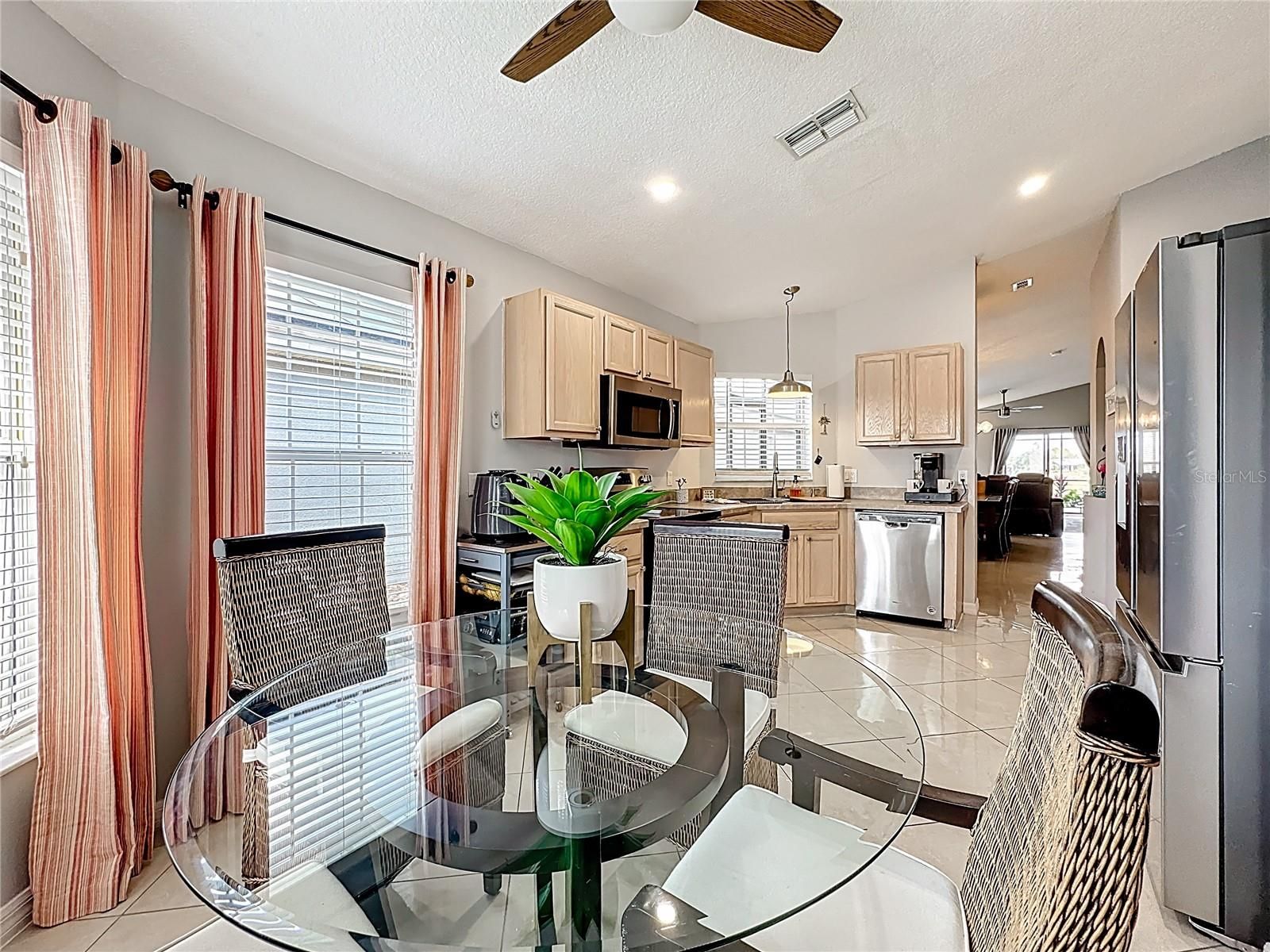 - Ceiling Fan(s), High Ceilings, Living/Dining Room, Open Floorplan, Solid-Wood Cabinets, Split Bedrooms, Thermostat, Vaulted Ceiling(s), Walk-In Closet(s), Window Treatments