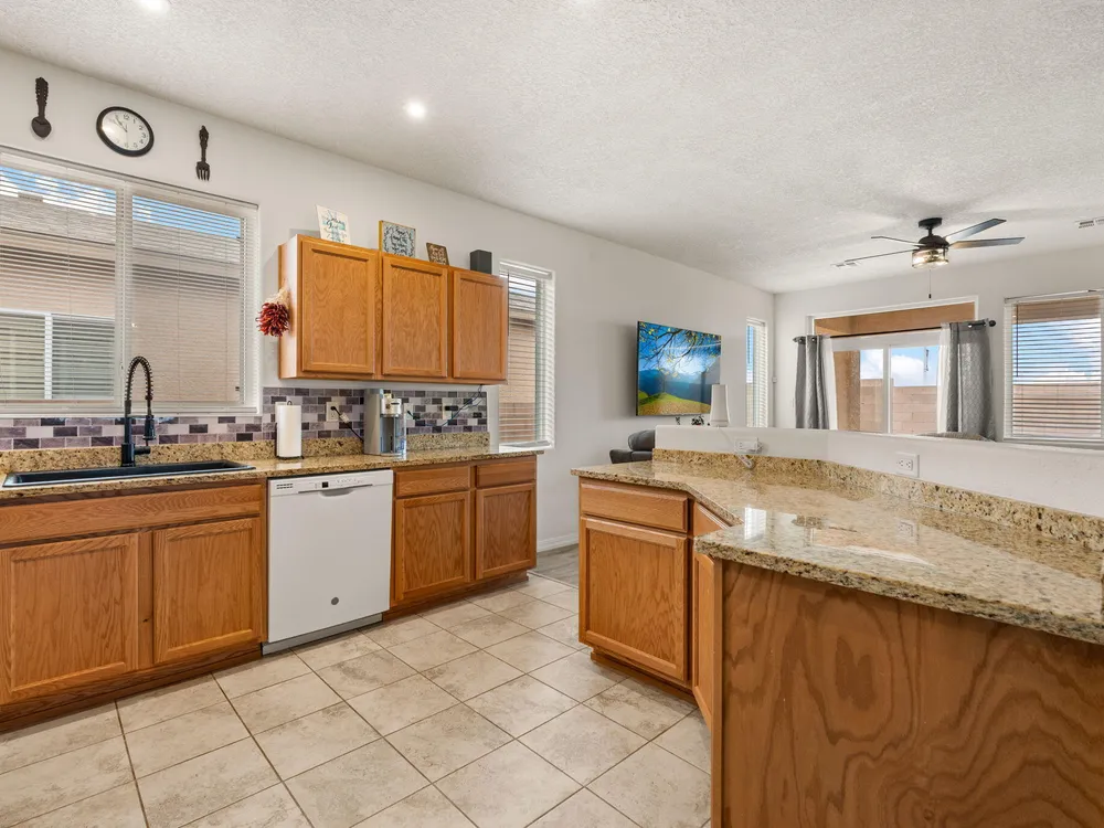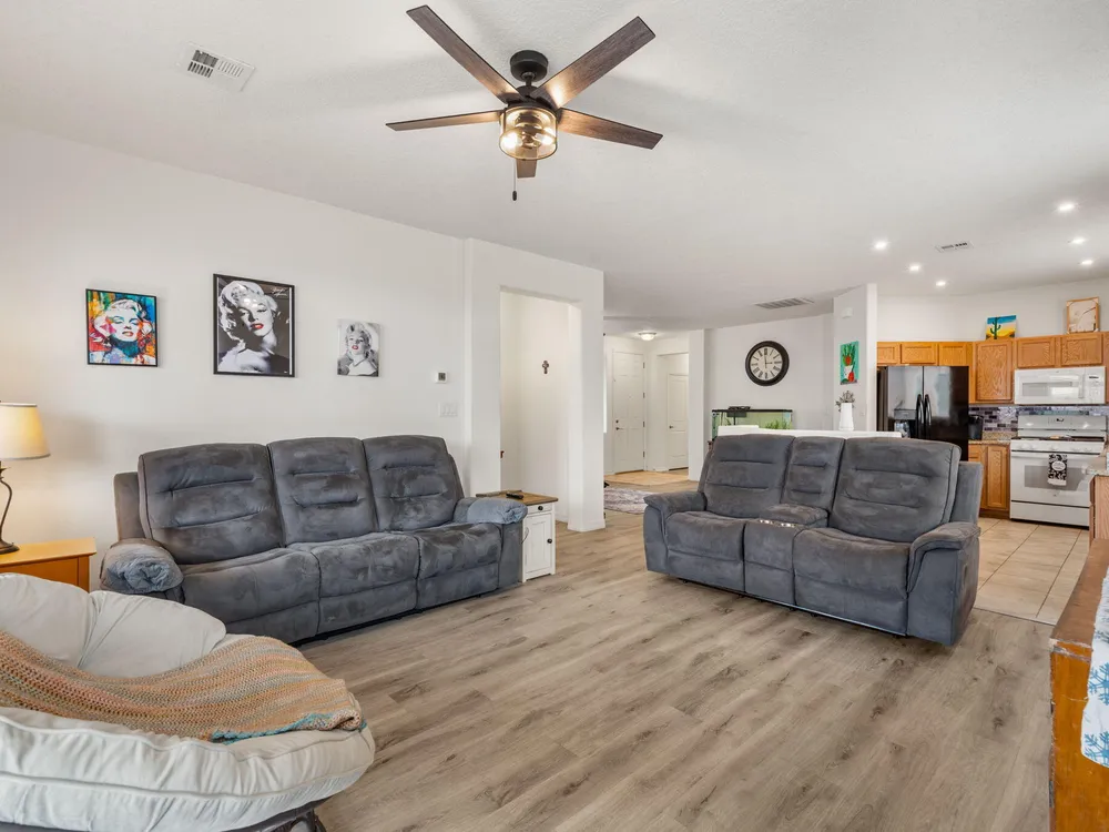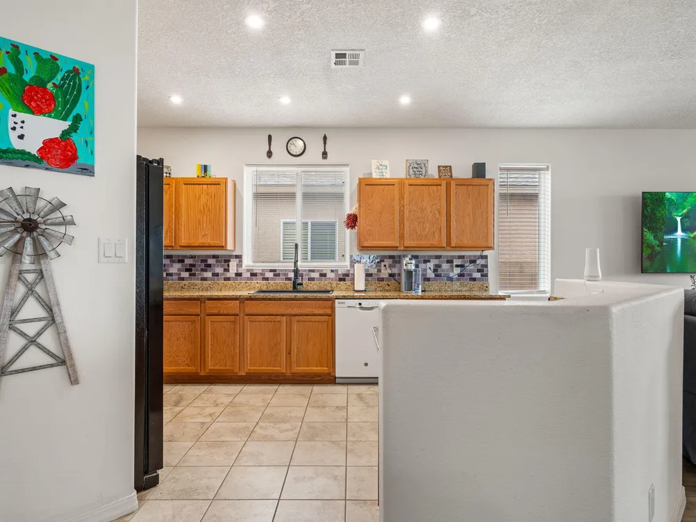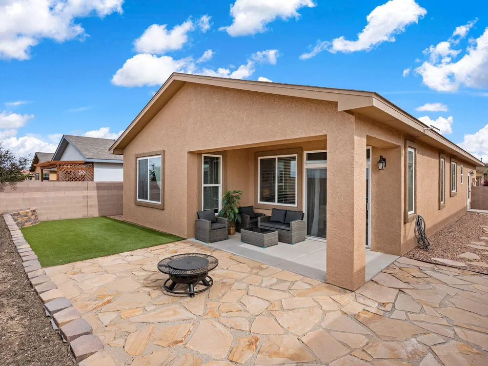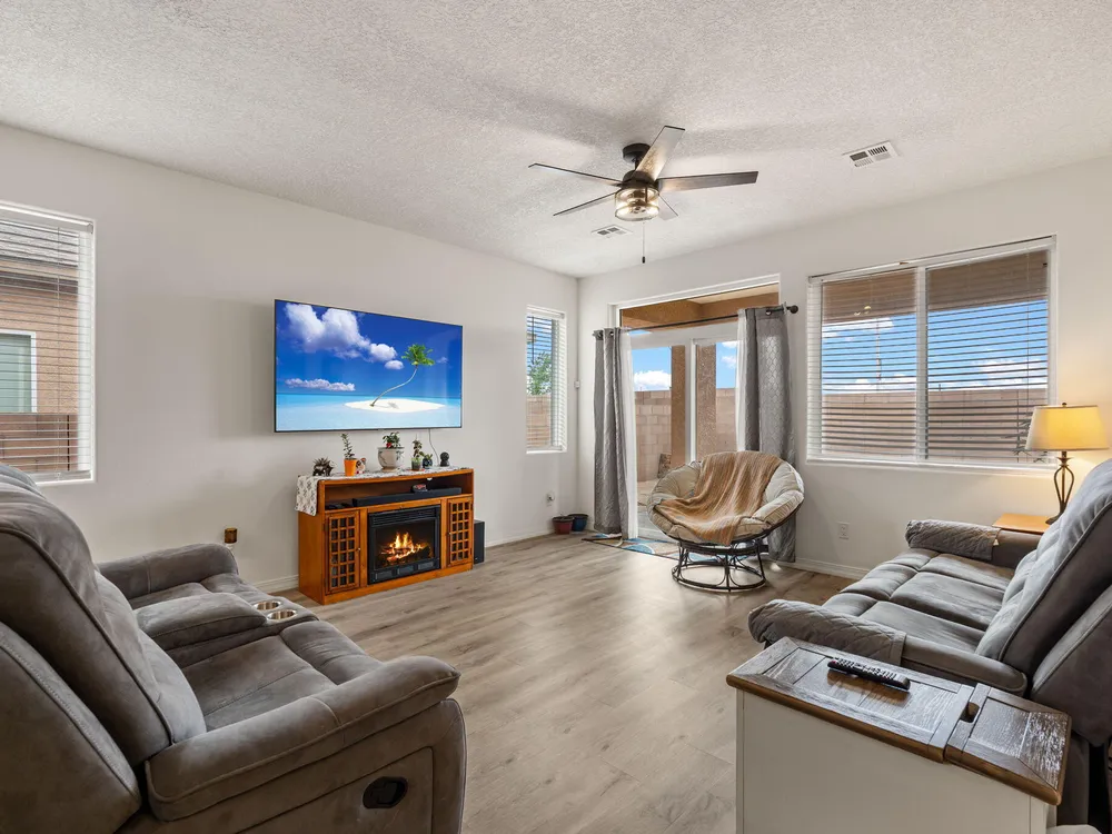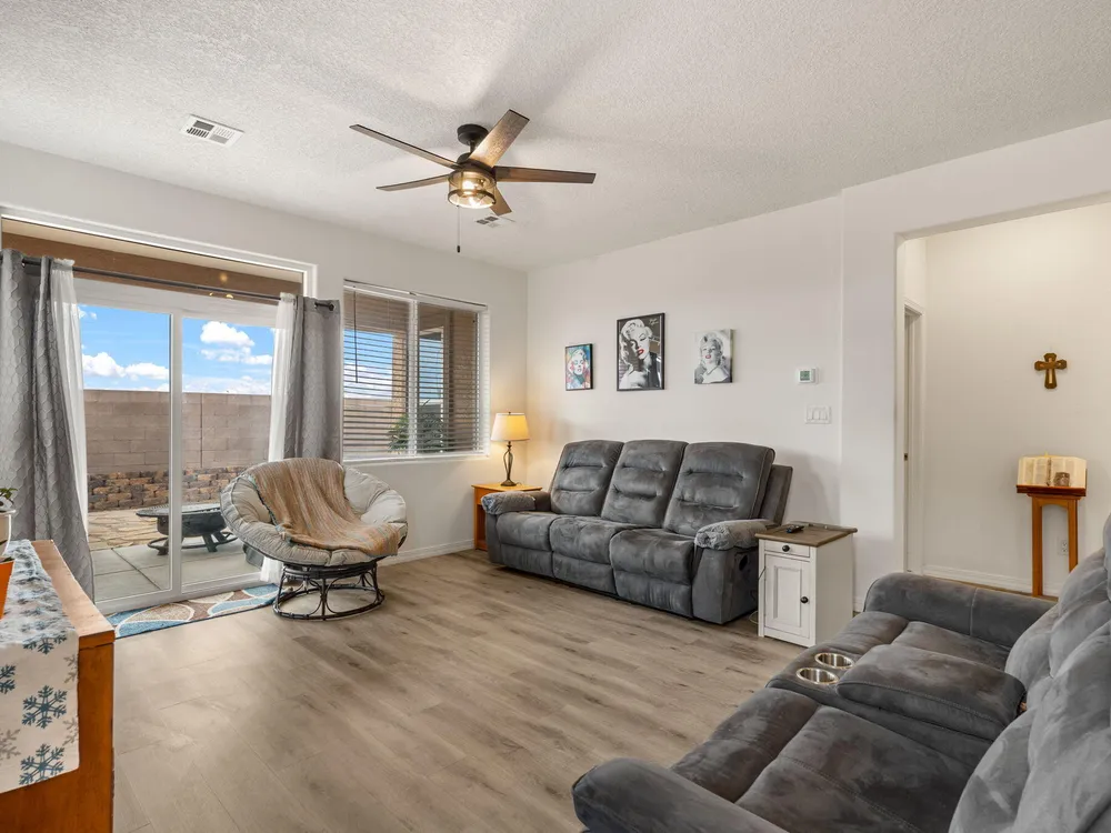 Tucked into a welcoming Los Lunas neighborhood, this stylish 2-bedroom, 2-bath home offers easy living with a 2-car garage, beautifully landscaped front and backyard, a covered patio, and a fully walled yard for added privacy. Inside, enjoy a warm blend of tile, carpet, luxury vinyl flooring, ceiling fans, and refrigerated air to keep you comfortable year-round. The kitchen is fully equipped with all appliances and features a tasteful tile backsplash that adds a touch of charm, while a separate laundry room enhances everyday functionality. The primary suite includes a walk-in closet and a private bath with a walk-in shower, creating a peaceful retreat. Thoughtfully designed with comfort and practicality in mind, this home truly checks all the boxes and is ready for you to enjoy.