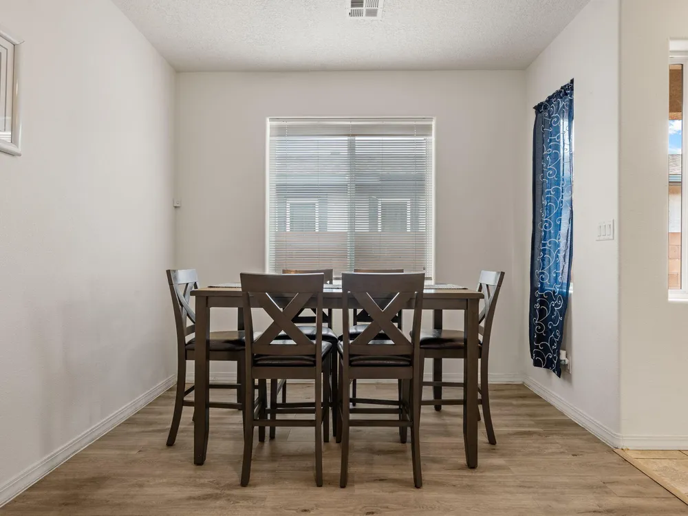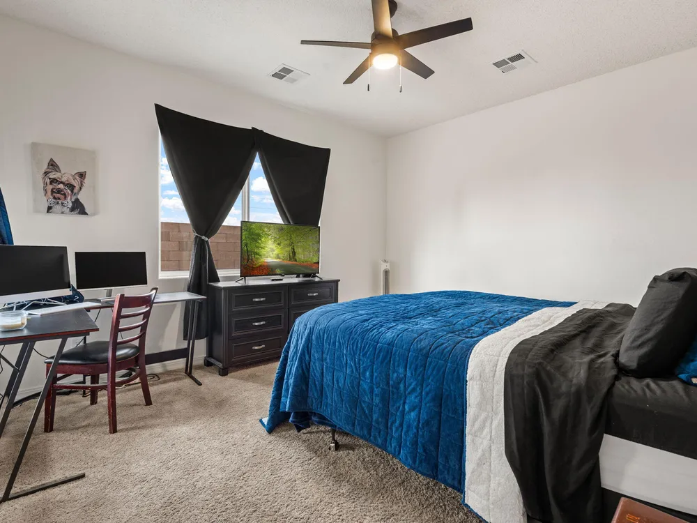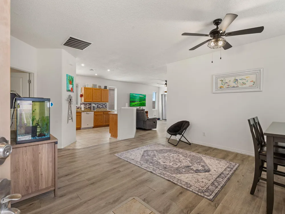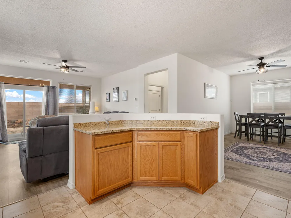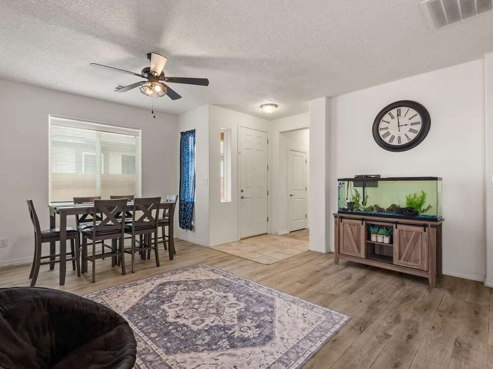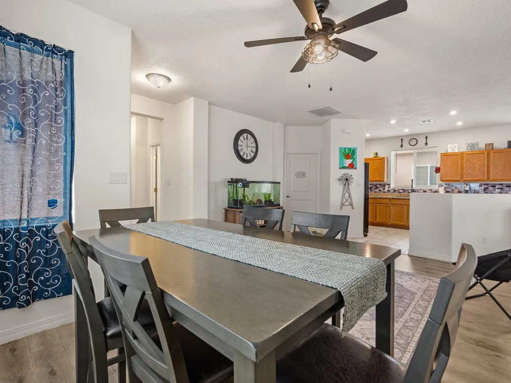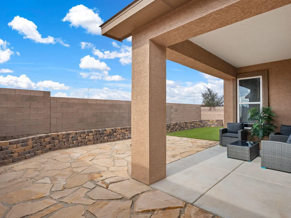 Tucked into a welcoming Los Lunas neighborhood, this stylish 2-bedroom, 2-bath home offers easy living with a 2-car garage, beautifully landscaped front and backyard, a covered patio, and a fully walled yard for added privacy. Inside, enjoy a warm blend of tile, carpet, luxury vinyl flooring, ceiling fans, and refrigerated air to keep you comfortable year-round. The kitchen is fully equipped with all appliances and features a tasteful tile backsplash that adds a touch of charm, while a separate laundry room enhances everyday functionality. The primary suite includes a walk-in closet and a private bath with a walk-in shower, creating a peaceful retreat. Thoughtfully designed with comfort and practicality in mind, this home truly checks all the boxes and is ready for you to enjoy.