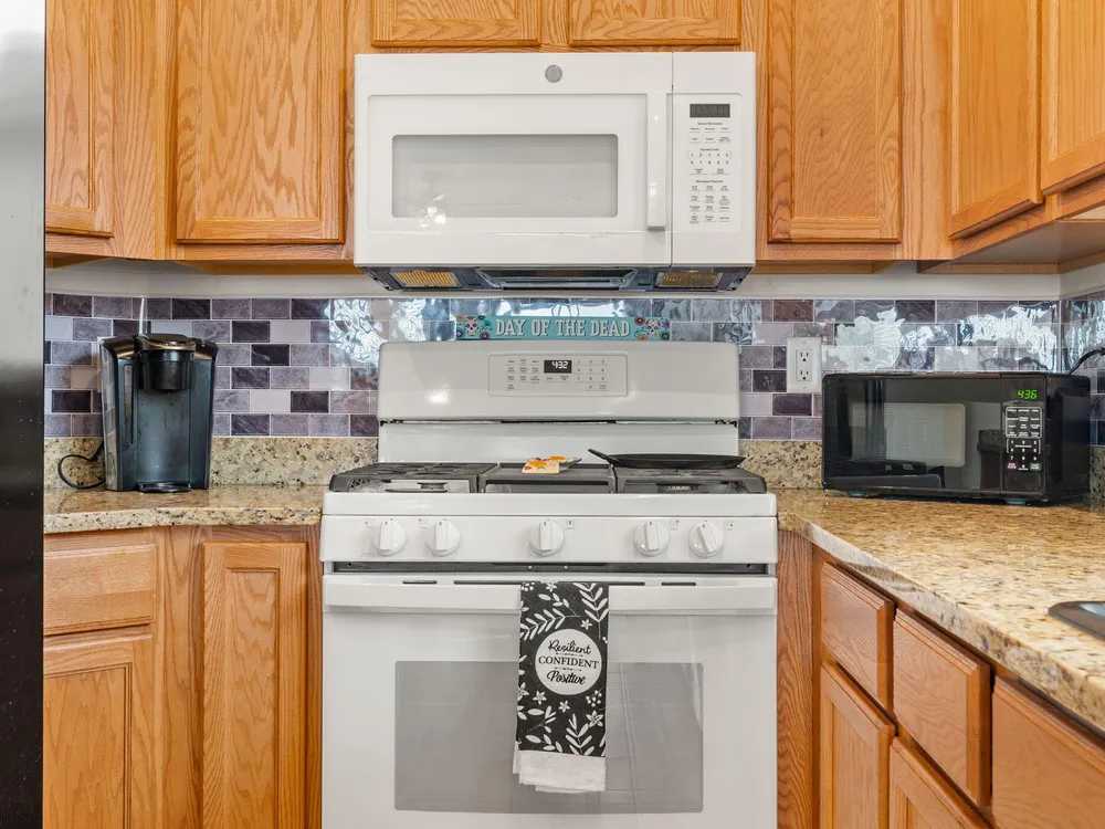 - Dishwasher, Free-Standing Gas Range, Microwave, Refrigerator