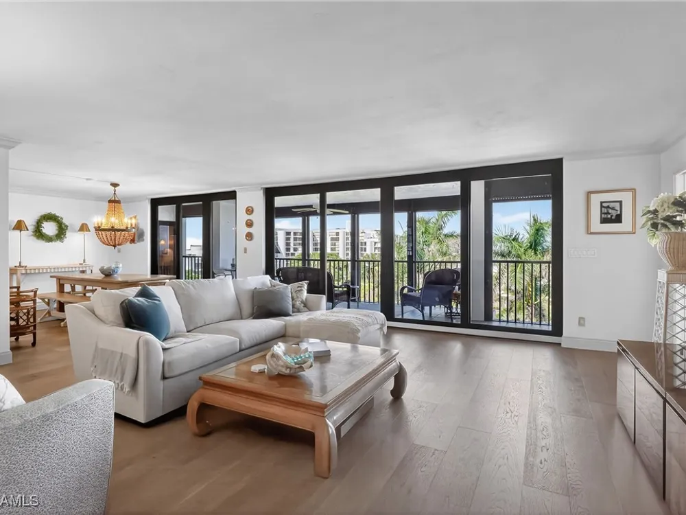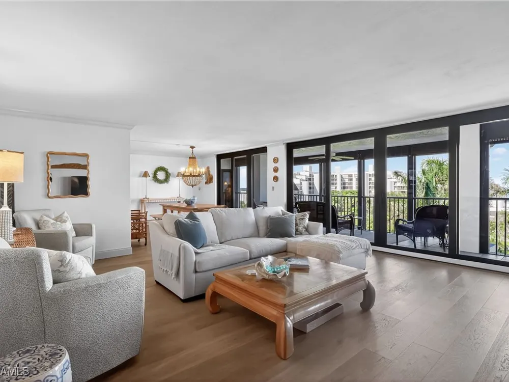 Discover the very best in Coastal Living. "ADMIRALTY POINT" an exceptional and private 10-acre gated enclave located at the tip of Gulf Shore Blvd. Surrounded by the Gulf, Doctors Pass, and Moorings Bay. This remarkable property offers 2,100 square feet of living space, complemented by a spacious screened balcony. Situated on the 6th floor, this turnkey 2-bedroom, plus den, 2-bath home boasts stunning Gulf views from every room. The open Great Room floor plan with gorgeous new wood floors includes a generous living area and dining area. The beautiful eat-in kitchen with stainless steel appliances, granite countertops and subway tile backsplash are sure to please the finest chef. The home is a split bedroom floorplan with the primary bedroom with ensuite bathroom on one side and the 2nd bedroom and den are on the other side with a beautiful bathroom adding to the charm of this home. Features such as impact windows and sliding doors, electric hurricane shutters, a carport, and a storage room enhance the property's comfort and appeal. Admiralty Point offers world-class resort-style amenities and 24-hour gatehouse security. Residents have the pleasure to enjoy 2 pools in this community. Watching the sunrise at the bayside pool or unwinding at the brand-new Gulf-side pool. Additional amenities include private beach access, two spas, a children's pool, a state-of-the-art fitness center, two HAR-TRU tennis courts, BBQ grills, dining pavilions, kayak and paddleboard launch, car wash, boat slip lease, guest parking, and Garrison protective panels being installed at all buildings and so much more. Located just a short distance from Venetian Village, with wonderful shopping and waterfront dining. This home is perfect for relaxation, morning walks, bike riding, dolphin and manatee watching, and enjoying the very best of coastal living.