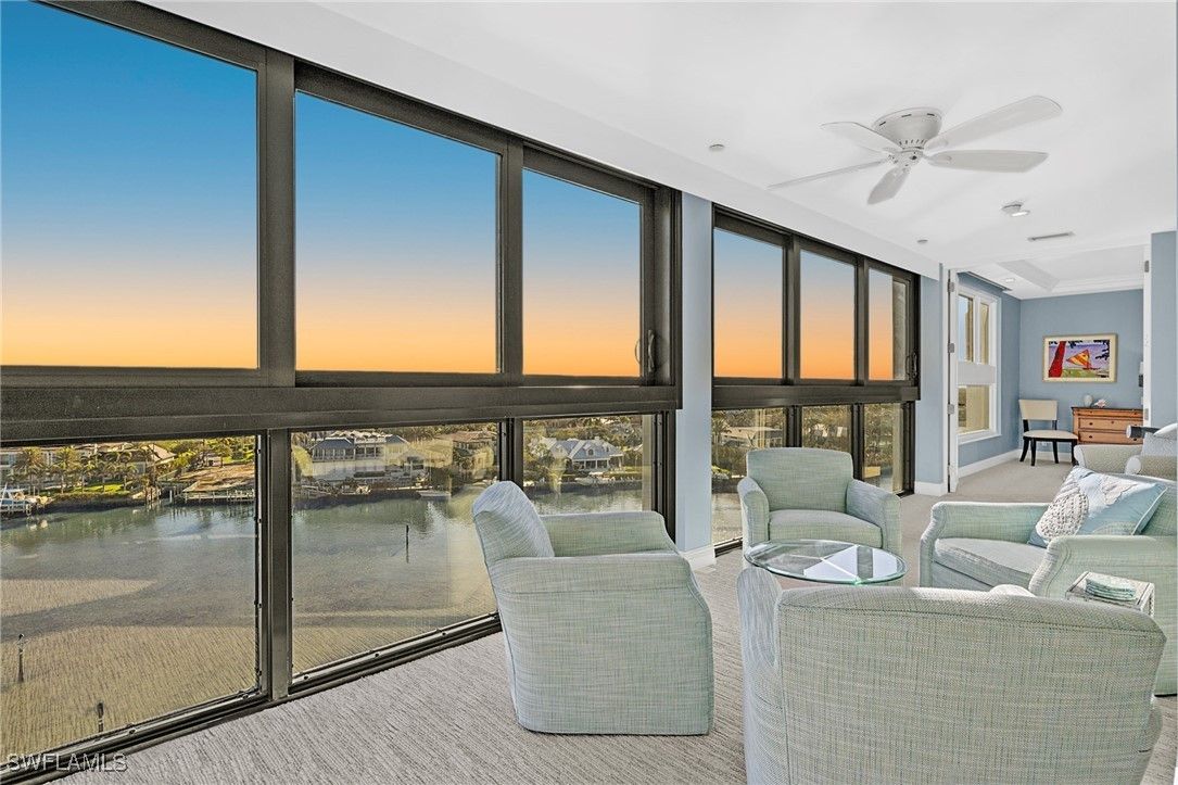 Welcome home to the highly desirable community of Admiralty Point. Boasting a plethora of amenities, Gulf & Bay Views, boating & private beach access, this is widely regarded as one of the premier locations in all of Naples. This coveted and fully renovated Penthouse Unit includes an immaculate wall of windows, showcasing some of the most breathtaking views Moorings Bay has to offer. With a completely reimagined interior, this Penthouse incorporates light Beach tones, with a masterful blend of stone choices, spanning from the Den area, all the way to the Primary Bedroom Suite and accompanying Master Bathroom. There is perhaps no better way to spend your mornings than to enjoy watching the dolphins & manatees amidst direct Bay views in your sun-soaked family room, w/ a light sea breeze floating throughout the air. This particular Penthouse Unit comes complete w/ both a garage and a deeded climate-controlled storage unit. As a whole, Admiralty Point comes fully stocked with 24 boat slips, a $4.3M brand new amenity renovation that includes a new Resort Style Beachside Pool, a new Clubhouse, grills, a spa and Sun deck. Admiralty Point amenities also include a Bayside Olympic length pool w/ an accompanying children’s pool, spa, a Clubhouse w/ modern finishes, grill area, a state-of-the-art fitness center, both shuffleboard and bocce courts, a kayak launch, Car Wash, Har-Tru tennis courts, and 24/7 Security and staffed gatehouse, all situated wonderfully on the water. Located in the heart of Naples, Admiralty Point is just minutes from Doctor’s Pass, the exemplary dining, shopping and nightlife of 5th Avenue, The Mercato & Venetian Village.