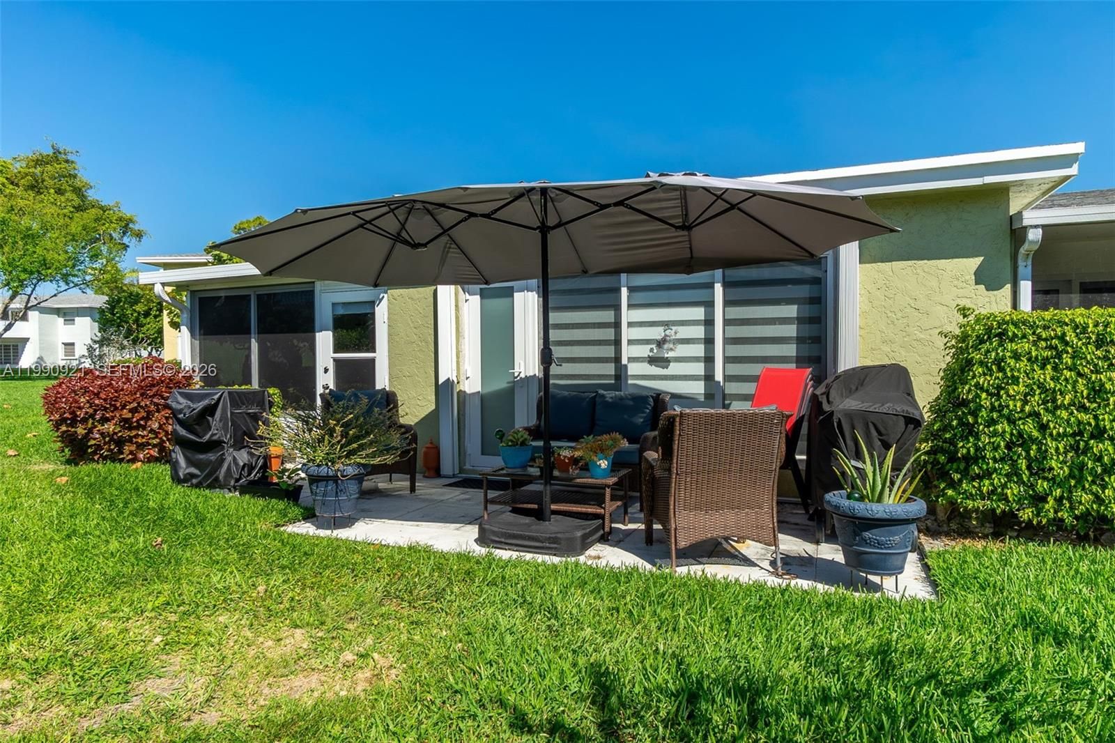 Welcome to this fully renovated, move in ready villa in the highly desirable Pines of Delray, a well established 55+ community known for its convenience, charm, and active lifestyle. From the moment you step inside this villa, you’re greeted by a bright, open layout filled with natural light and thoughtfully designed modern finishes throughout. The home features new vinyl flooring, recessed lighting, and a clean, contemporary aesthetic that feels both elegant and comfortable. The stunning chef’s kitchen is truly the heart of the home, showcasing quartz countertops, sleek cabinetry, stainless steel appliances, and an oversized island perfect for entertaining or everyday living. Both bathrooms have been beautifully updated, offering a fresh feel. This home also delivers where it matters most peace of mind with a brand new roof (2025) new HVAC, new electrical panel, and full storm protection including impact windows, impact doors, and accordion shutters. The spacious primary suite opens to a newly enclosed PVC patio, creating a versatile extra space ideal for a home office, reading lounge, or private retreat. Step outside and enjoy a quiet outdoor area perfect for relaxing or hosting, all within a beautifully maintained community setting. Ideally located just minutes from shopping, dining, I-95, and only a short drive to the beach and vibrant downtown Delray, this property offers the perfect balance of tranquility and accessibility.