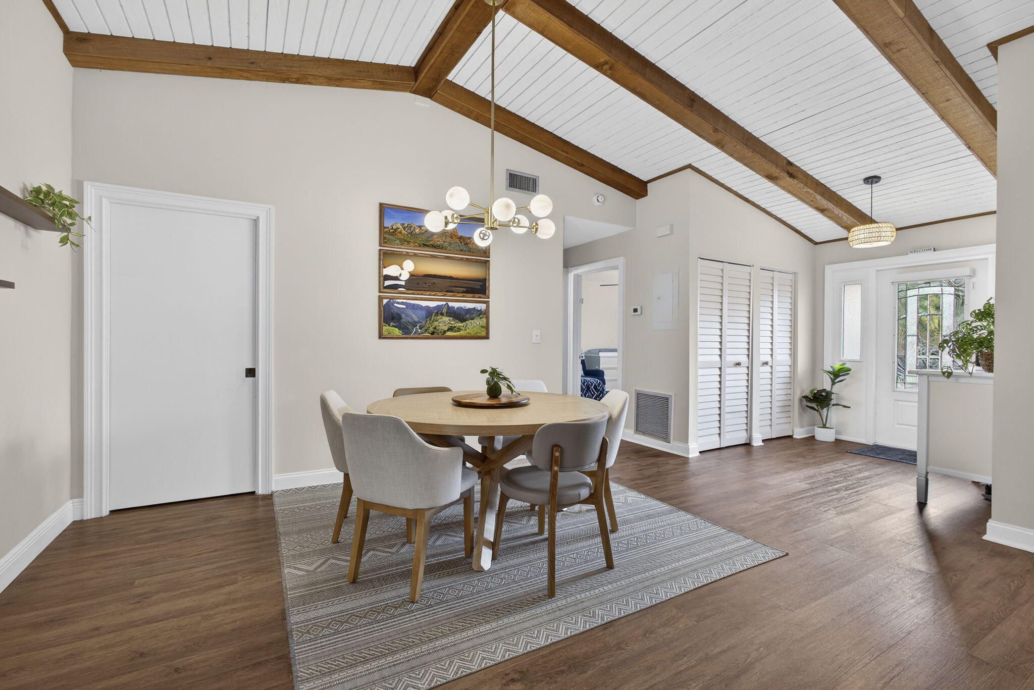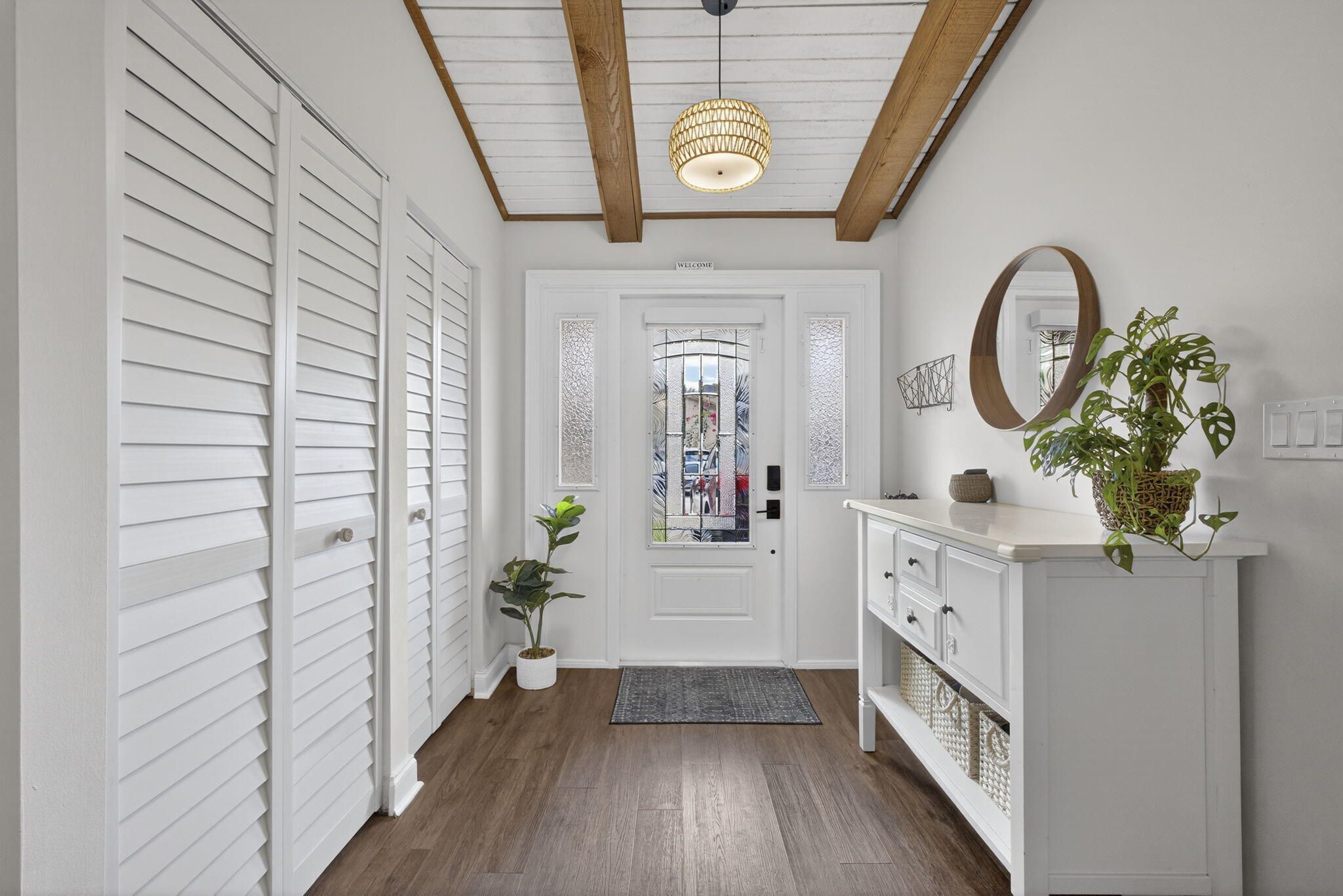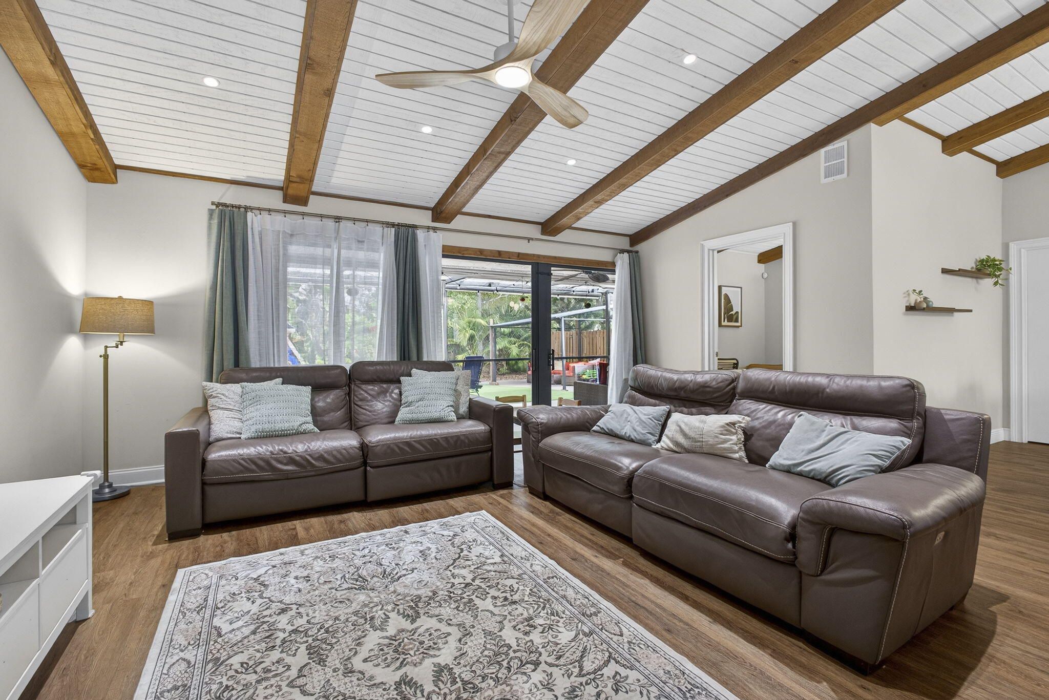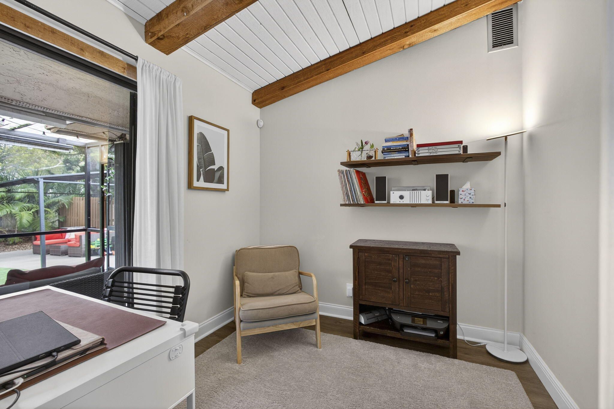 Welcome home to a beautifully maintained 2/2 one-story villa offering thoughtful upgrades and an ample backyard. This spacious villa provides an ideal blend of indoor comfort and outdoor living—perfect for full-time living or a seasonal retreat.The home features a flexible bonus room ideal as a home office or den, a two-car driveway, and a large fully fenced backyard perfect for gardening, play, and entertaining. Notable upgrades and features include: roof replaced (2017); HVAC system upgraded (2020); popcorn ceilings removed (2021); vaulted ceilings and wood beams painted (2021); primary bath shower remodeled (2021); impact-rated front door; accordion shutters; luxury vinyl plank flooring throughout; quartzite kitchen countertops; new microwave (2024); recessed lighting and fixtures (2025), and covered patio. The community offers a newer pool with guest parking, and the HOA fee includes water, exterior insurance, roof maintenance, and pest control. Ideally located with easy access to shopping, dining, cultural attractions, beaches, and nature preserves.