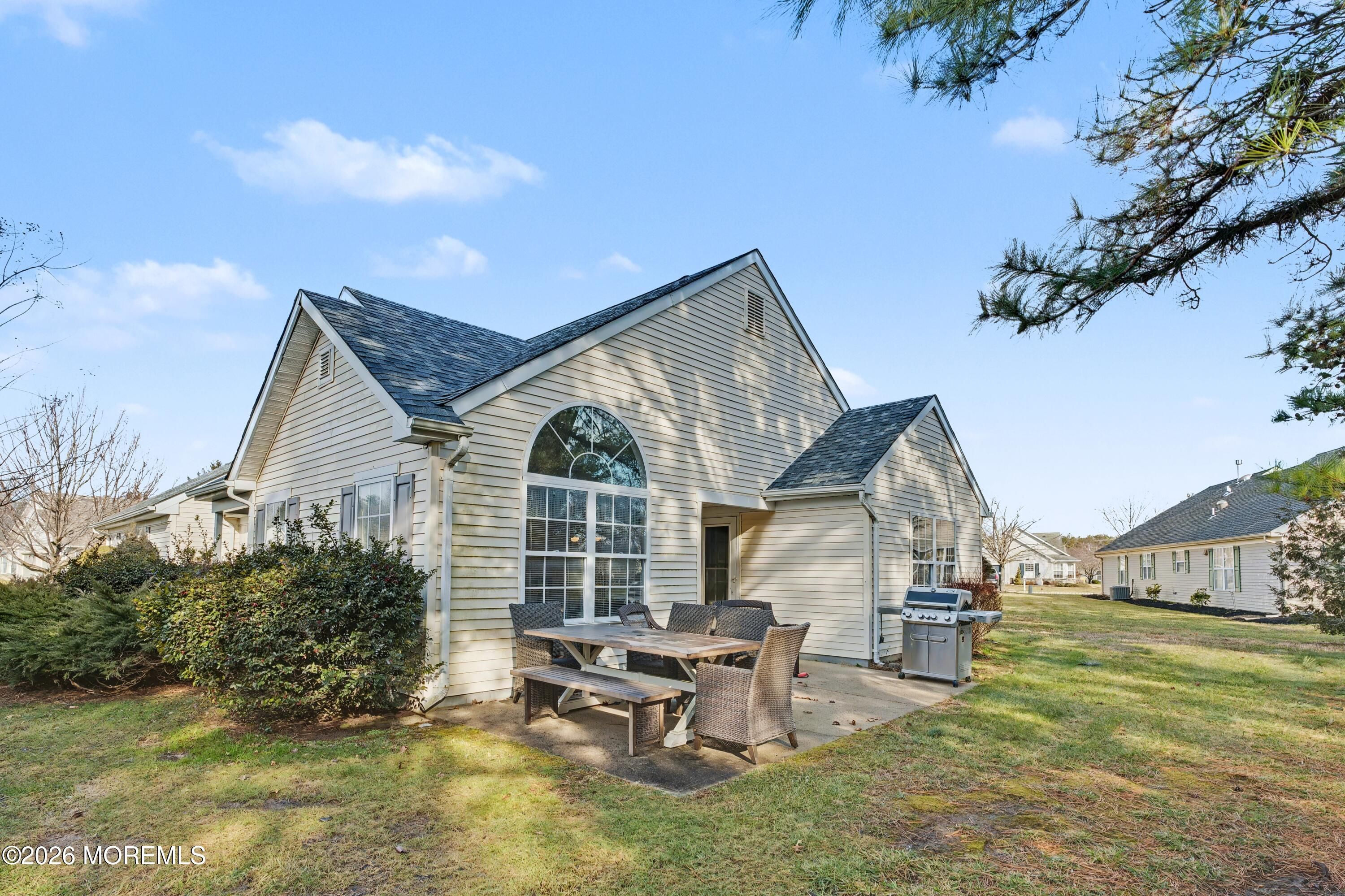 Discover easy living in this 1,667 sq. ft. Devon model nestled within the desirable Lake Ridge community. Offering two bedrooms, two full baths, and a serene private wooded backdrop, this home combines comfort and style. The light-filled, open-concept living and dining areas feature cathedral ceilings, creating a spacious and welcoming environment. A charming den off the kitchen with patio access is perfect for entertaining or unwinding. Enjoy a resort-style lifestyle with single-floor living, a 24-hour gated entrance, clubhouse, indoor and outdoor pools, tennis, bocce, shuffleboard, fitness classes, and beautifully landscaped surroundings.