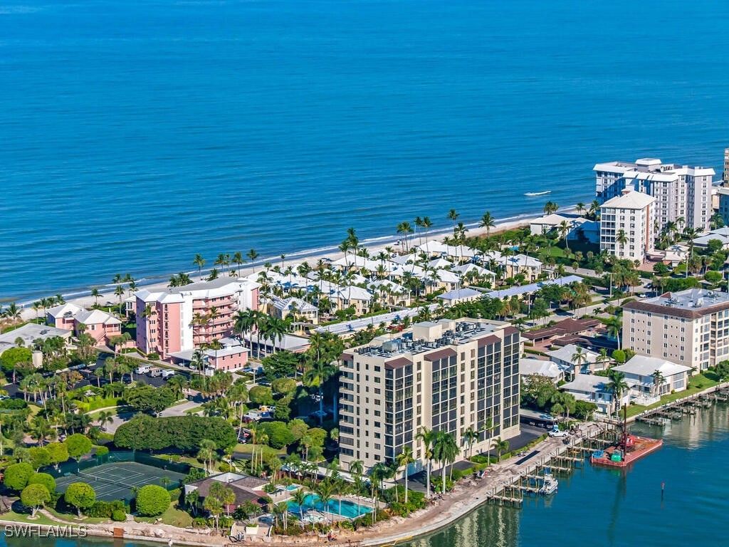 BEAUTIFULLY RENOVATED GULF-VIEW CONDOMINIUM! Step into costal luxury with this stunning 2-bedroom, 2-bath 1600 sq ft. condominium completely and thoughfully RENOVATED FROM TOP TO BOTTOM. This spacious residence offers an open, airy layout designed for both relaxation and entertaining, with a built in bar area, wine cooler and as well as a separate entertainment area and built-in desk. Enjoy breathtaking VIEWS OF THE GULF OF MEXICO from your living area and private glassed in lanai, perfect for morning coffee or sunset evenings. The generously sized bedrooms provide comfort and privacy, with the primary suite offering its own serence Gulf backdrop and large walk-in closet with built-ins. This residence has a spacious Laundry room with WASHER AND DRYER. The Shores is a boutique well-maintained community, steps to the pool and beach! FYI THERE WILL BE A SEA WALL THAT WILL BE COMPLETED OVER THE NEXT SEVERAL MONTHS TO PROTECT ALL 1ST FLOOR UNITS!!!!! Easy access to dining and shopping at Venetian Village, 5th Ave and 3rd Street, plus optional membership to the Moorings Beach park or the Moorings Golf and Country Club. MOVE-IN READY AND ABSOLUTELY BEAUTIFUL - YOUR GULFSIDE OASIS AWAITS!