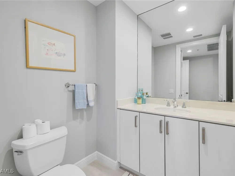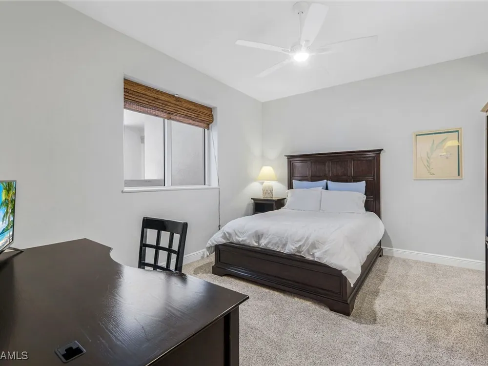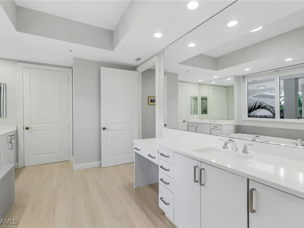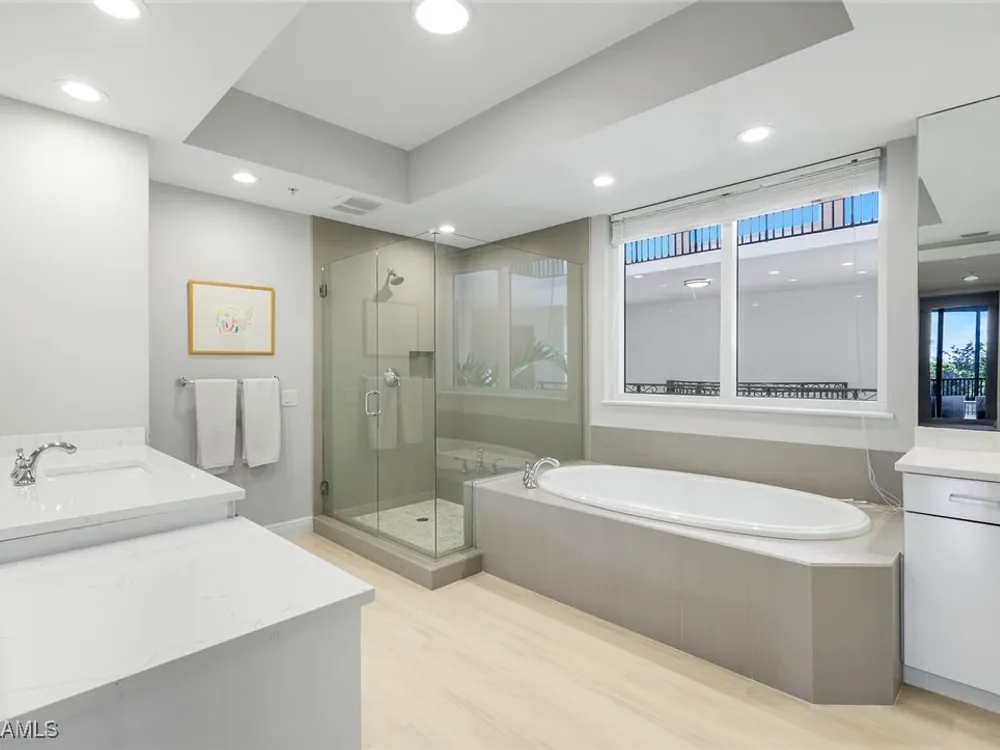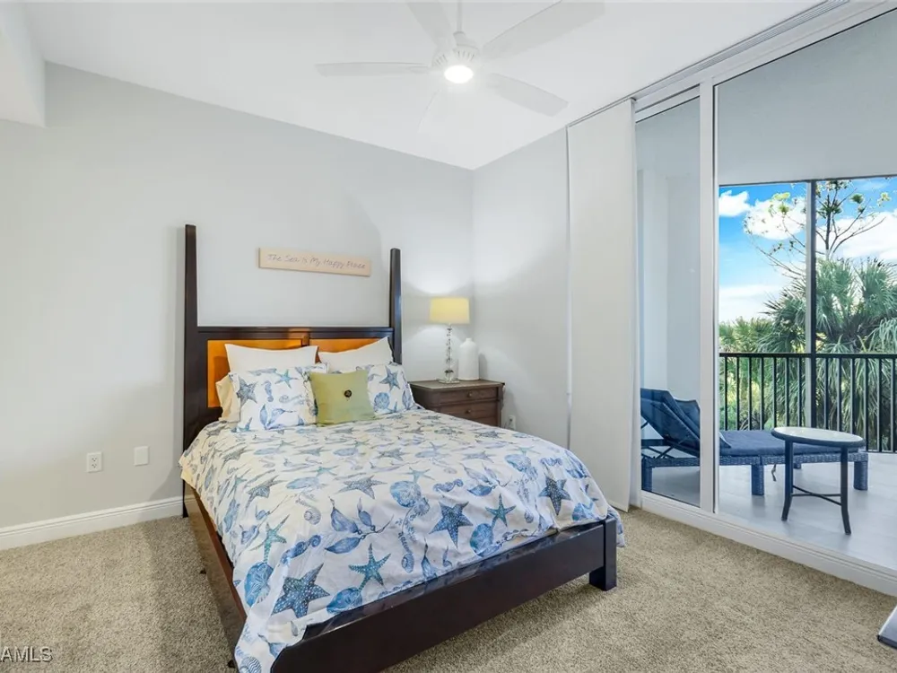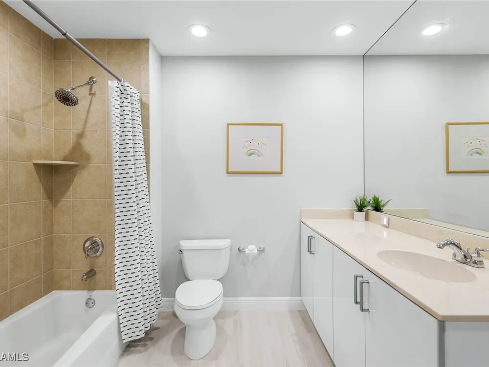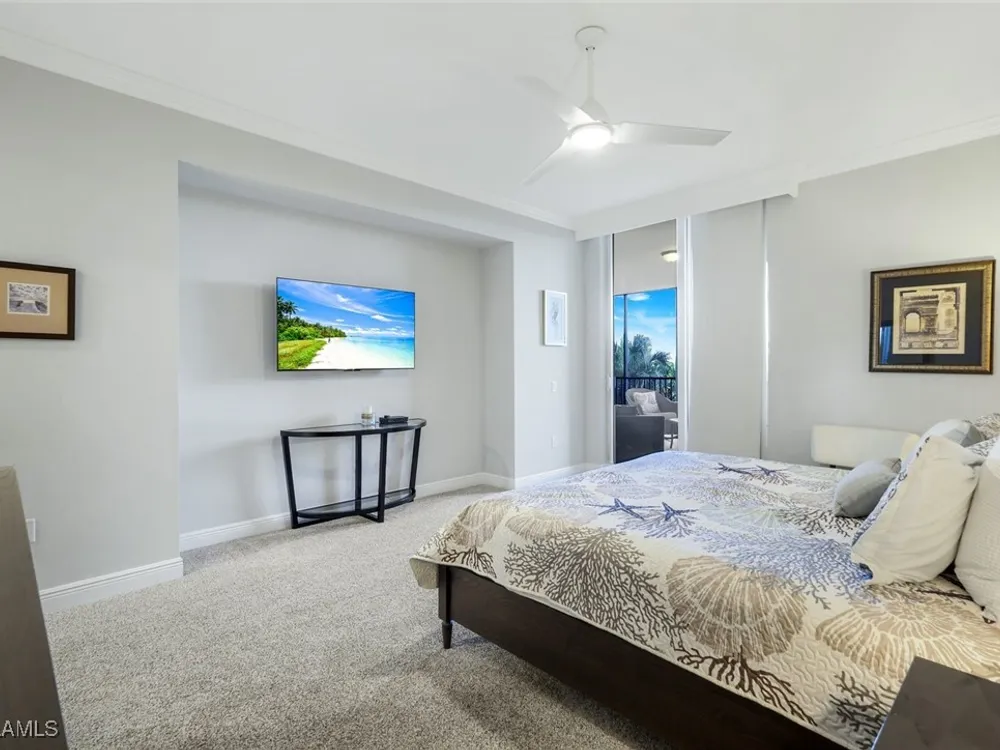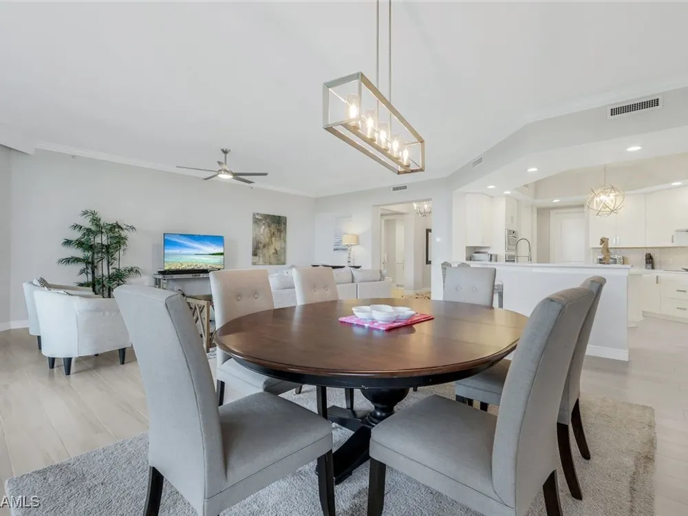 Refined elegance and effortless indoor-outdoor living meet in this updated 3-bed, 2.5-bath residence in the exclusive Castella at The Colony in Pelican Landing. Spanning almost 2,400 sq ft with an additional sprawling screened lanai, this condo blends quiet luxury with resort-style sophistication. From the moment you enter the foyer, you're welcomed by a light-filled great room with new flooring in the main living areas, bathrooms, and lanai. Every detail has been thoughtfully curated, from the designer light fixtures and Minka ceiling fans with remotes, to the recessed LED lighting, 5.5” baseboards, and elegant crown molding throughout. Featuring newer countertops and a stylish backsplash, the updated kitchen pairs modern functionality with timeless design. The primary suite offers private lanai access and an updated ensuite bath with spa-like finishes and refreshed countertops. Convenience abounds in the spacious laundry room with ample storage. A private western-facing lanai with newer flooring frames vibrant sunsets. Additional features include 2 assigned parking spaces. Castella’s 5-star resort-style amenities include a lagoon-style pool and spa, private clubhouse, grilling pavilion, and more. As part of The Colony at Pelican Landing, you’ll also enjoy access to a private beach island, tennis and pickleball courts, fitness center, canoe/kayak park, sailing center, and 36 holes of championship golf (optional membership). Come home to a place where every detail reflects luxury, and every sunset feels like a private show.
