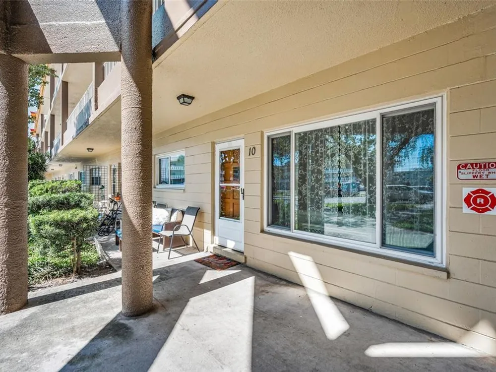Welcome to your Florida retreat in the highly sought-after 55+ community of On Top of the World in Clearwater! This spacious 2-bedroom, 2-bathroom ground floor condo offers comfort, convenience, and resort-style amenities. Step inside and you’ll find a roomy living area that flows into the dining space and an inviting kitchen with plenty of cabinet storage. The kitchen features stainless steel appliances, updated countertops, tile backsplash, and a double sink. Both bedrooms are generously sized with ample closet space and ceiling fans. The primary suite features an en-suite bath and a brand-new all-in-one washer dryer. The enclosed Florida room adds extra flexibility - perfect as a sitting area, office, or hobby space. The front porch creates the perfect spot to enjoy your morning coffee or greet neighbors as they pass by. Out back, the enclosed Florida room opens to a patio overlooking a landscaped green space, giving you a peaceful retreat for dining al fresco or simply unwinding in the Florida sunshine. This well-maintained building offers easy access to all the community amenities, including two pools, state-of-the-art fitness centers, golf courses, tennis and pickleball courts, shuffleboard, woodworking and hobby studios, and an active clubhouse with planned events. Residents also enjoy walking trails, serene lake views, and the peace of mind of a gated, pet-friendly community. Located in the heart of Clearwater, you’ll have quick access to shopping, dining, medical centers, airports, and the Gulf beaches. With its unbeatable location and vibrant lifestyle, this condo is the perfect place to call home year-round or as a seasonal getaway. Schedule your showing today and see why On Top of the World remains one of Florida’s premier active adult communities!