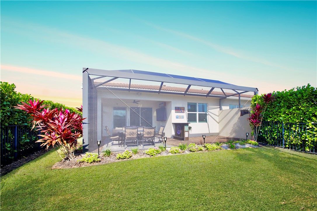 Upgraded Lakefront Villa in PGA Community! Pristine 2Bed 2Bath Home with Office & 2Car Garage on a quiet Cul-De-Sac. Kitchen with Quartz Counters & Waterfall Edge Island/Breakfast Bar. Spacious Living/Dining area. Expanded Screened Lanai. Fenced yard. Inside Laundry. Tons of lighting, Plank Tile in Main Living & Baths, Impact Windows, Plantation Shutters, Surge Protection, UV filtration AC, Alarm & More. Split AC & Epoxy flrs in Garage. Luxury Resort Amenities 3 Golf Courses, Indoor & Outdoor Pools, Sauna, Hot Tub, Fitness, Tennis, Pickle Ball, Basketball, Billiards, Clubhouse & Guarded Entry.